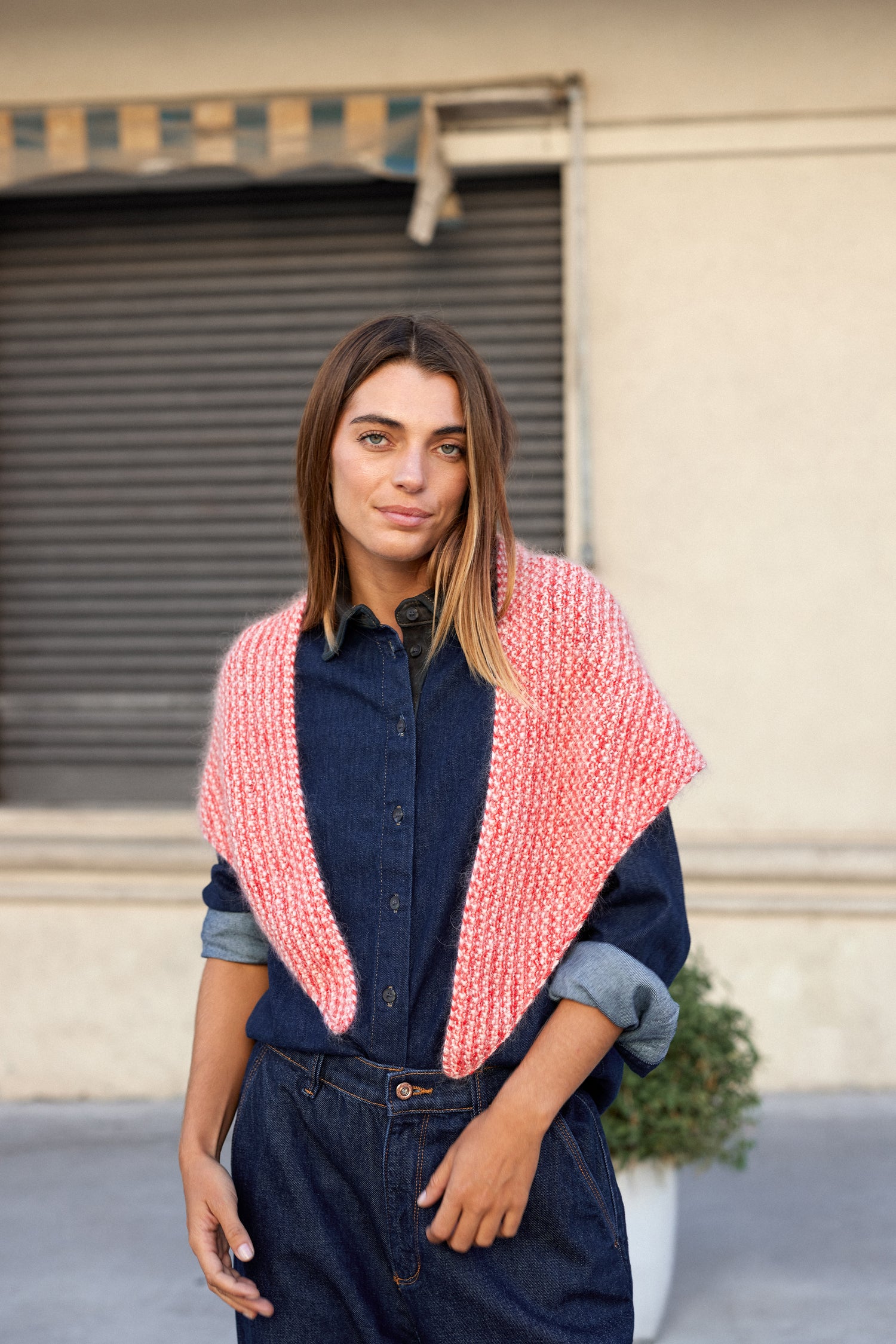 Combine fingering-weight Alegria with fuzzy mohair Cabrito to create a textured triangle shawl!