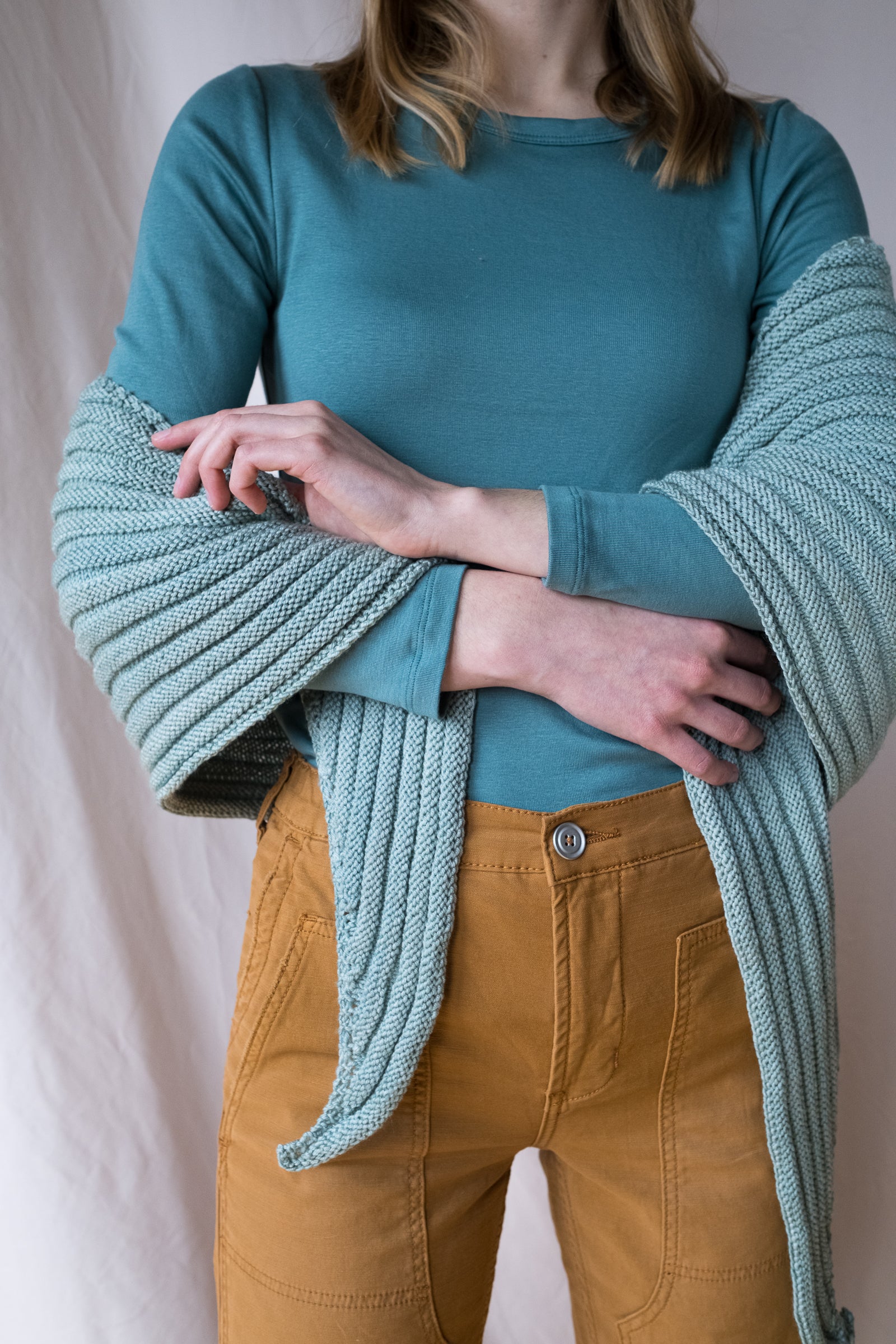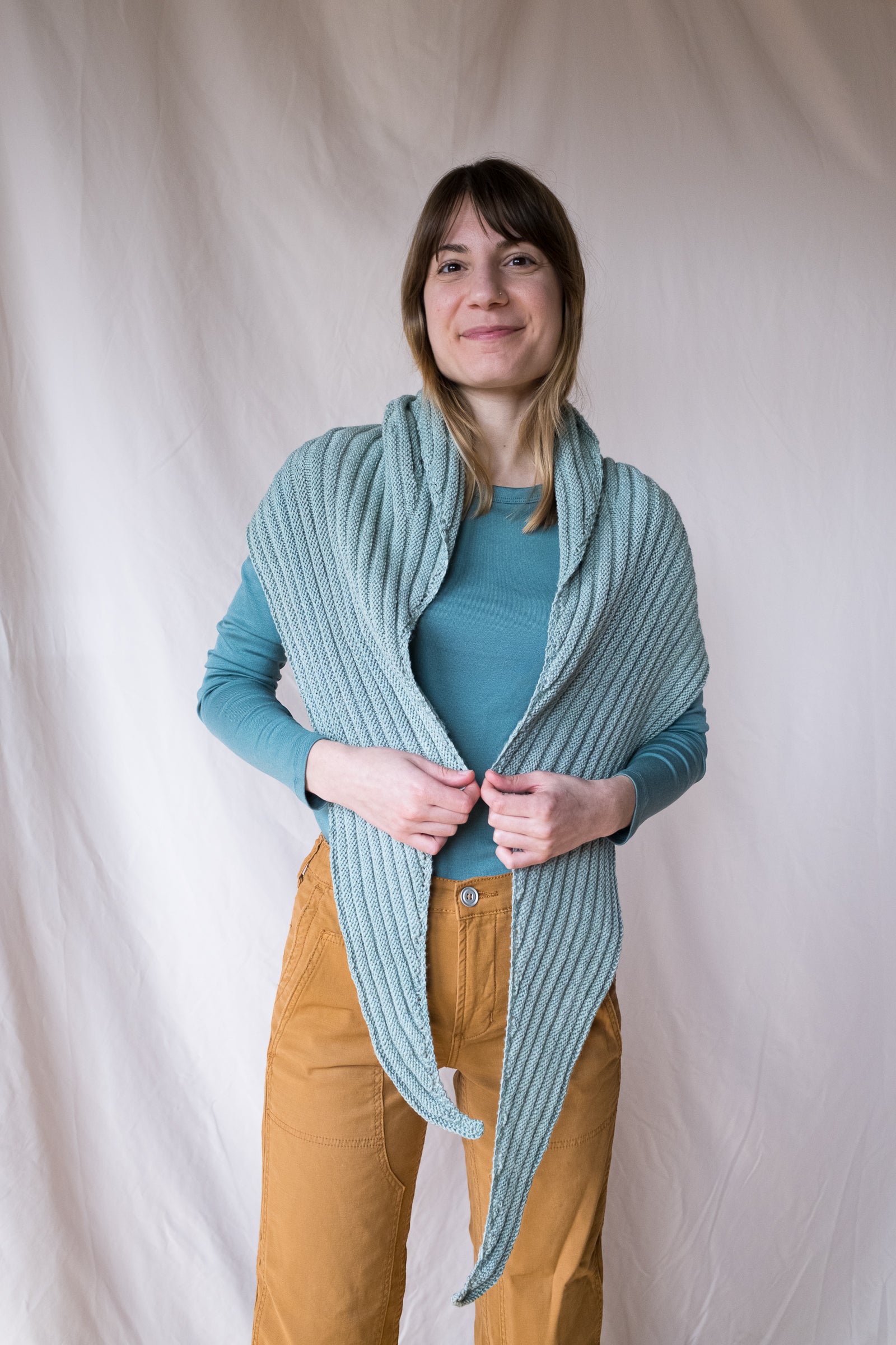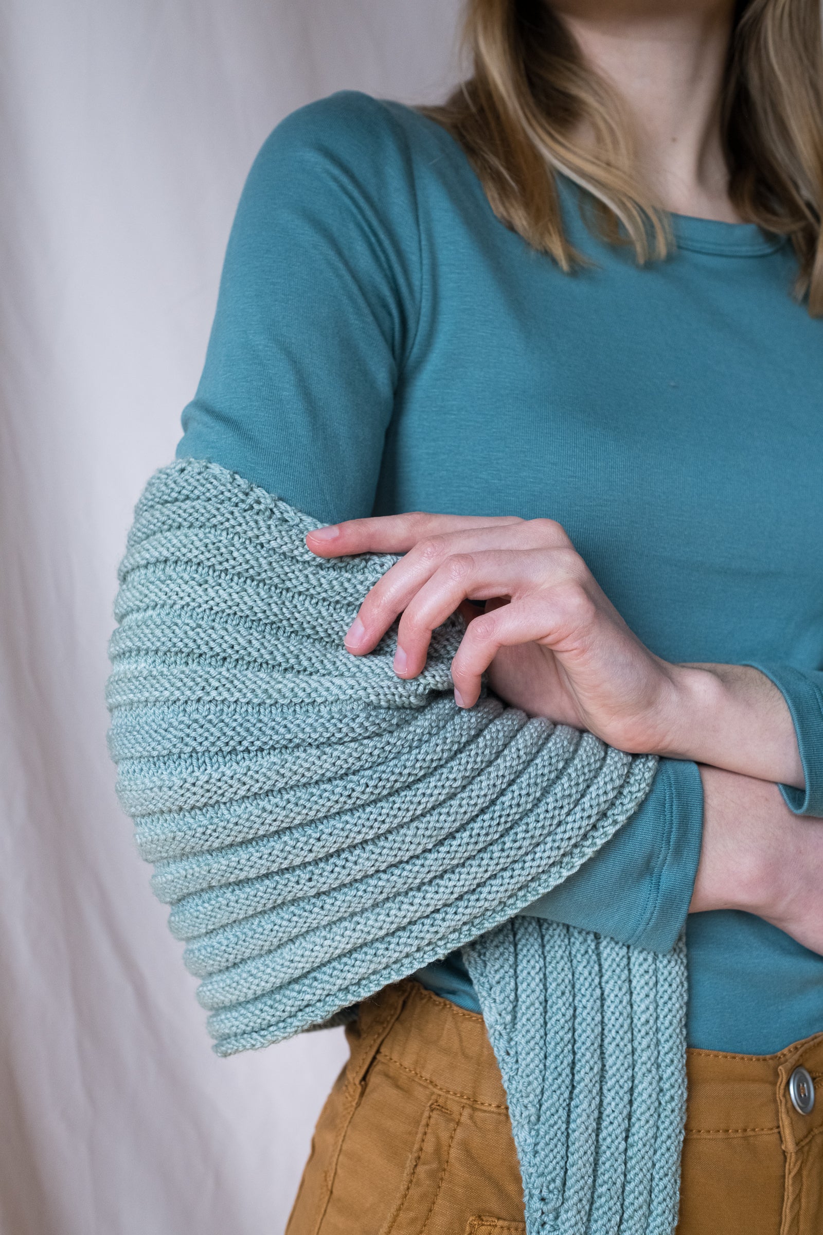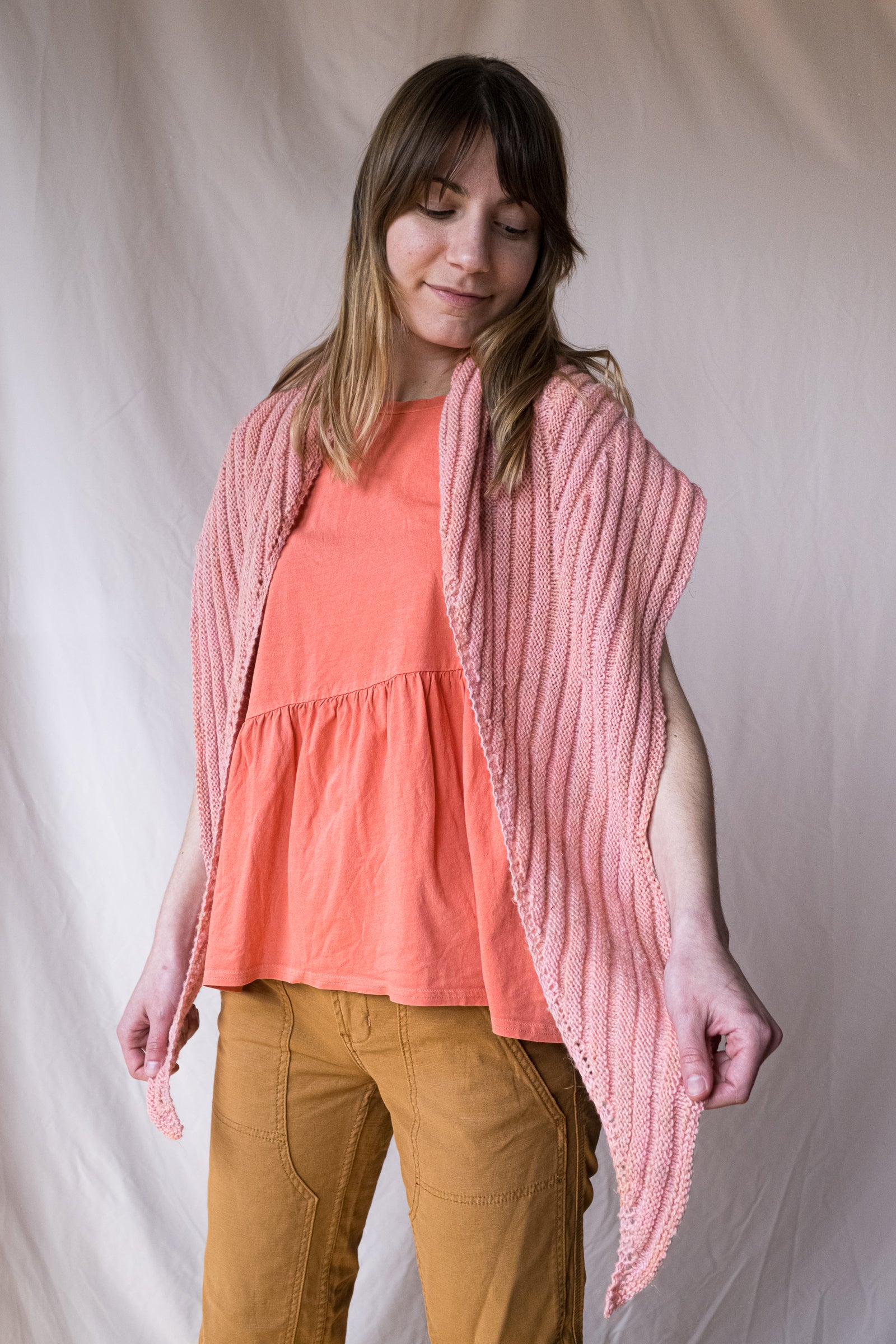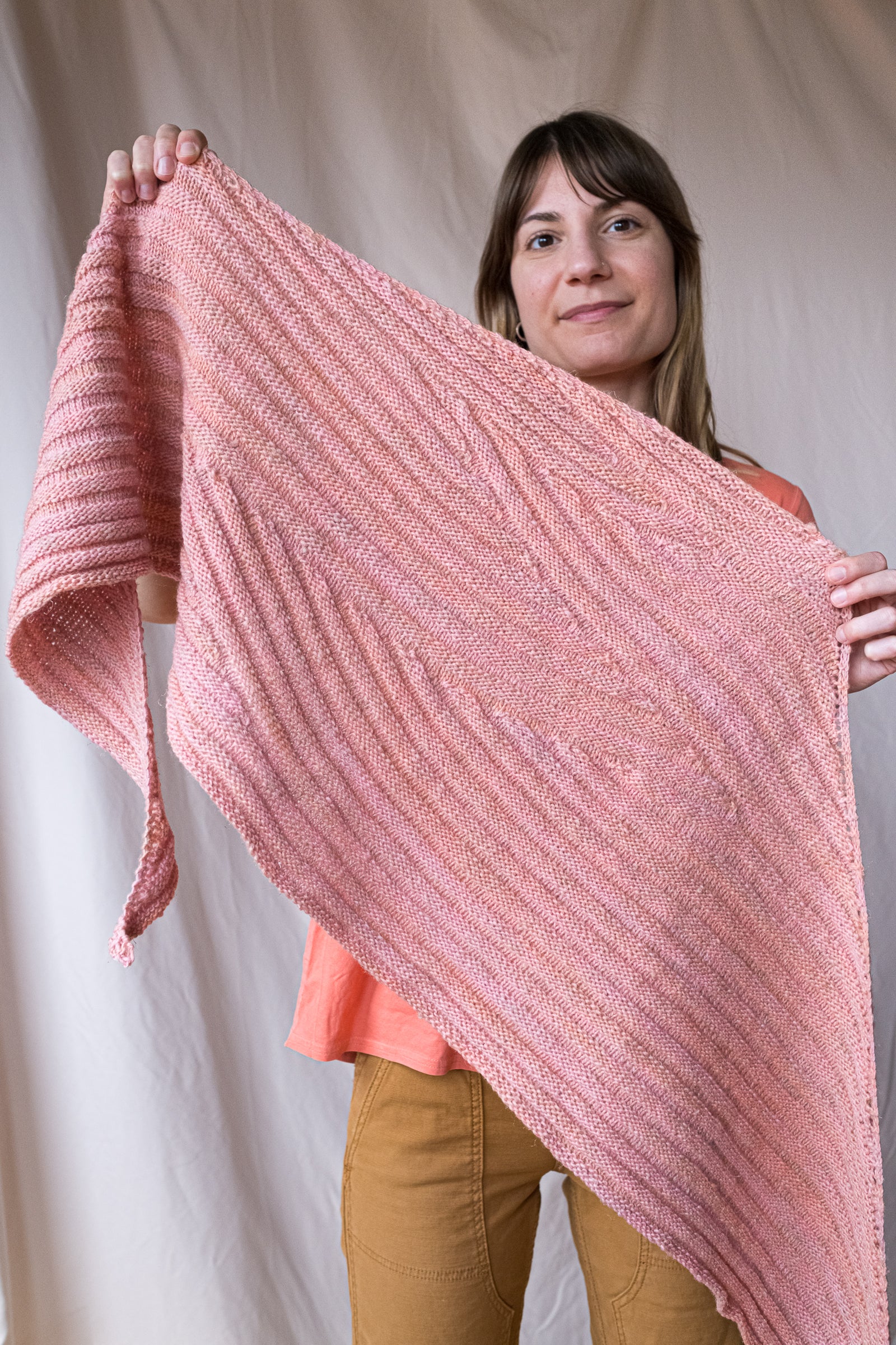 Short rows and welts produce asymmetrical shawls with deep texture, knit in both Milo and Feliz!