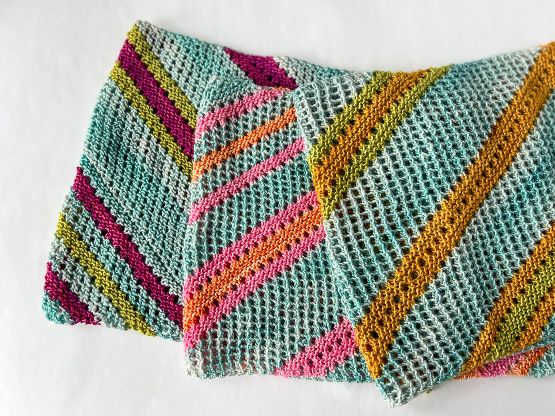Yarn Requirements: Shown in 404 Watered Silk (MC) with Fino Mini-Skein Kit #29 Greta (457 Brocade, 464 Dog-Rose, 466 Tassel, 444 Topsy-Turvy, 455 Elixir)