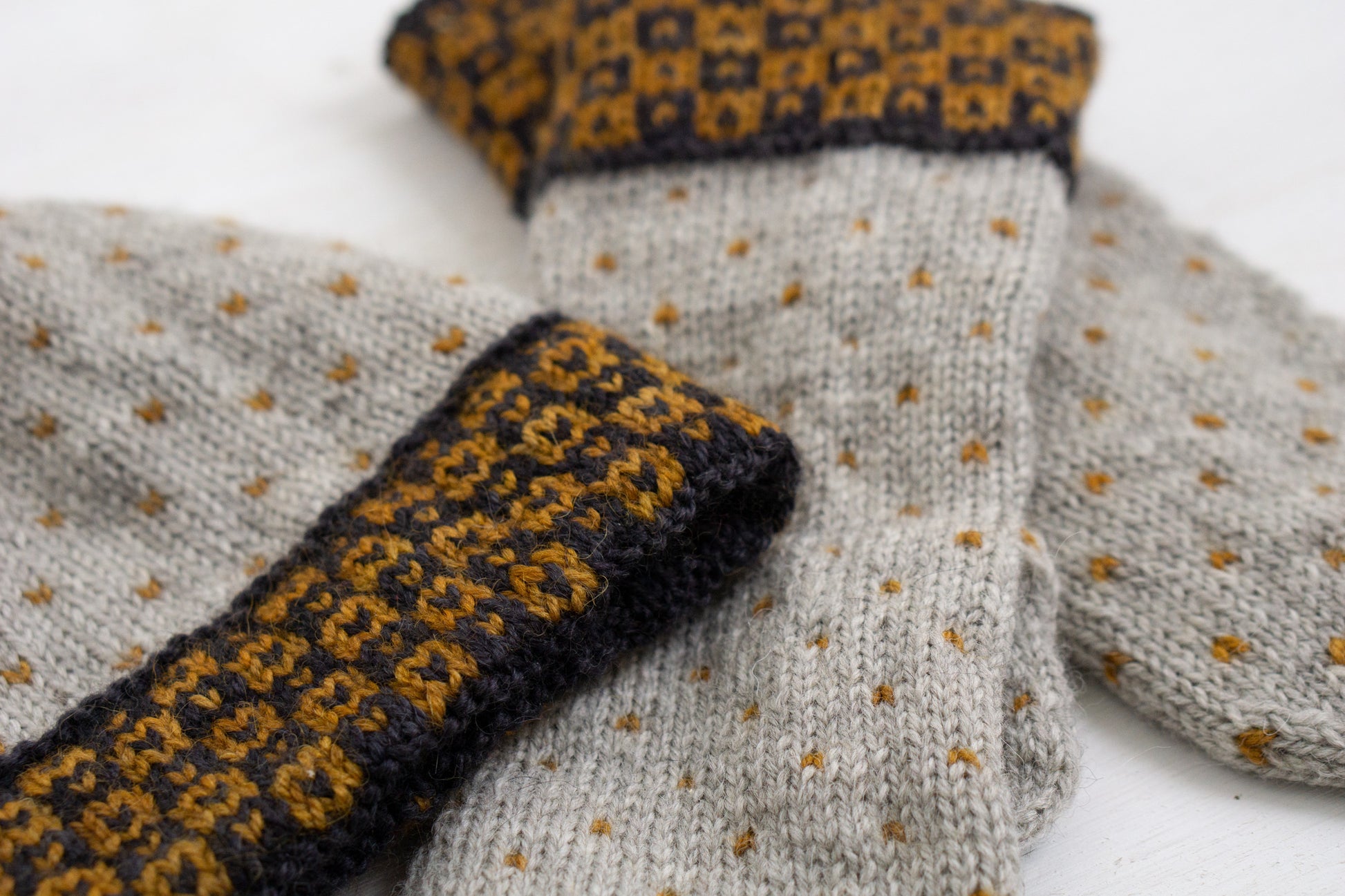 Yarn Requirements: Shown in Alpaca Heather, 1 sk H703 Grey (MC) + 1 sk each of H2540 Kohl and H2222 Honeycomb