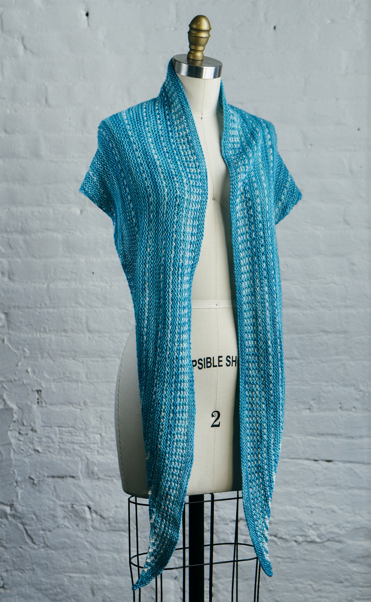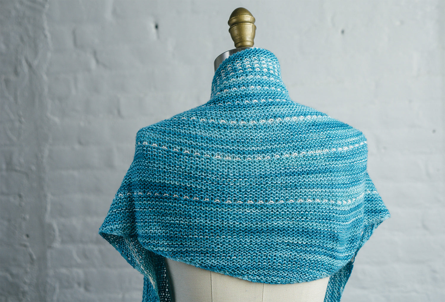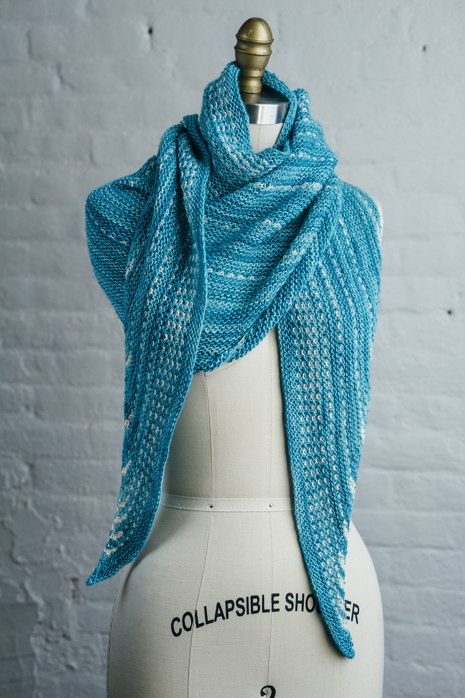 With small seeds of contrasting color, this beautiful Fino shawl is a perfect study in slip stitch.