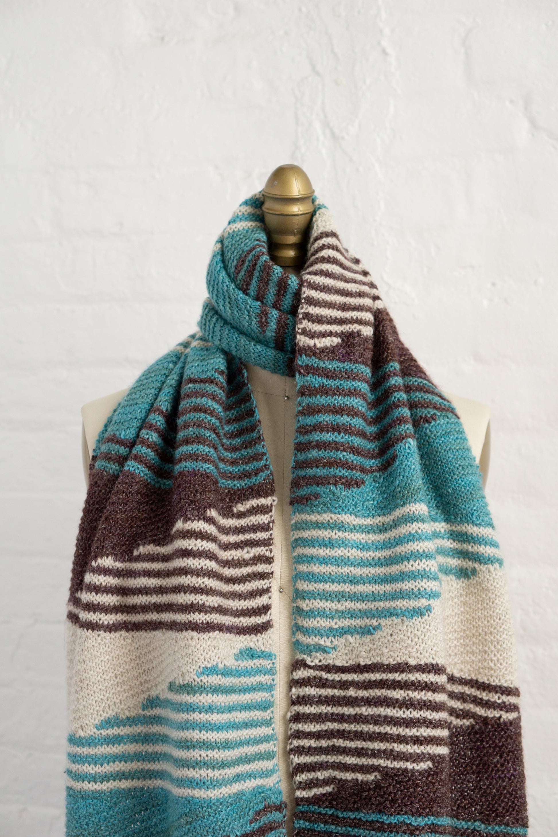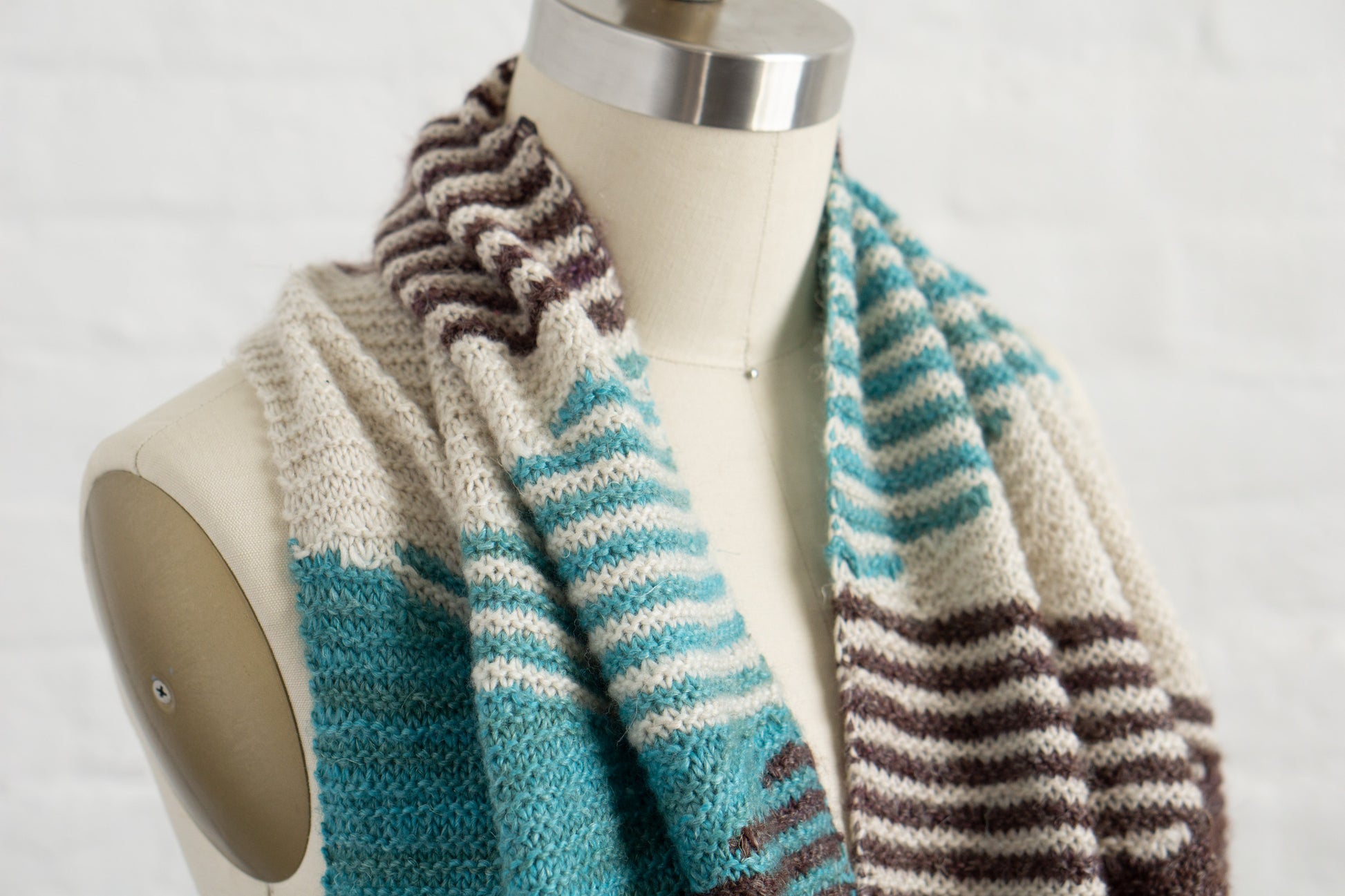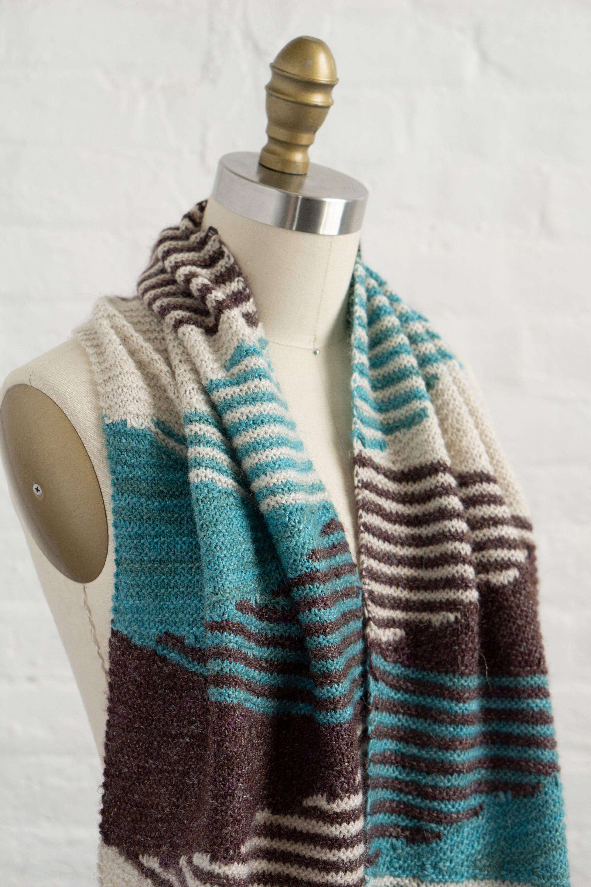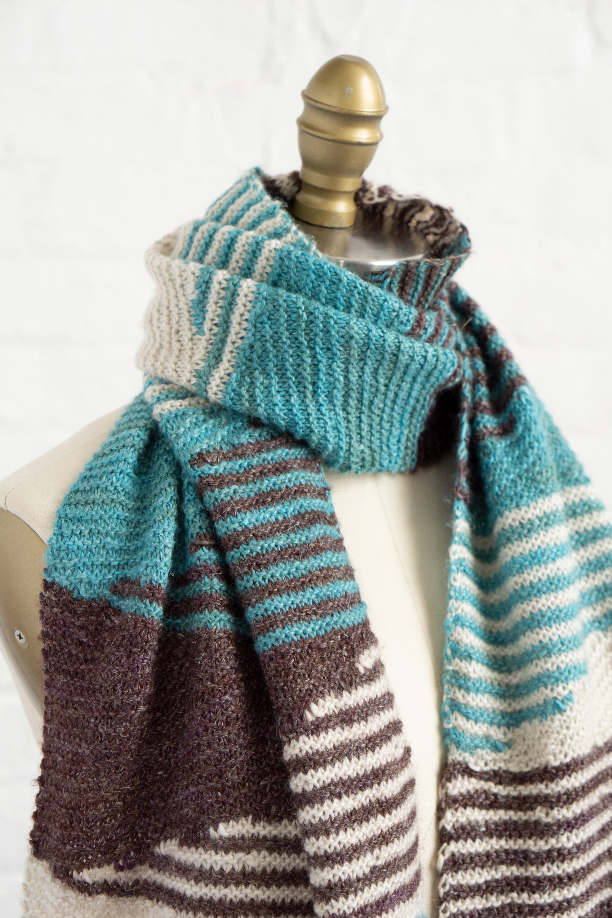 Yarn Requirements: Shown in Milo, 1 sk each of i21561 Argan, i2428 Nautilus, and i2800 Natural.