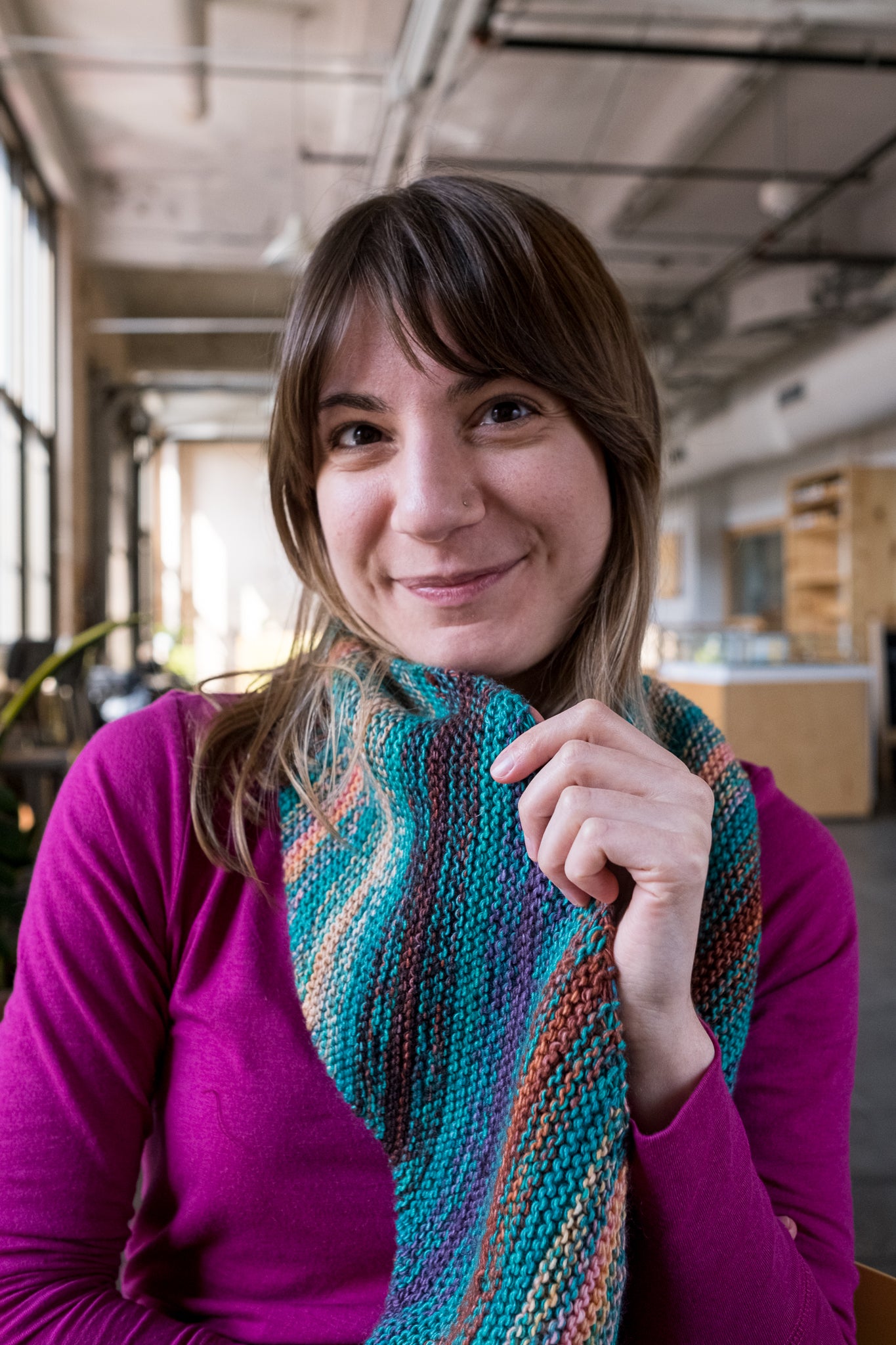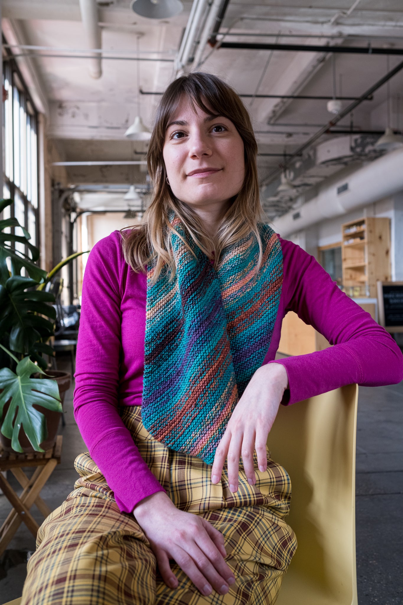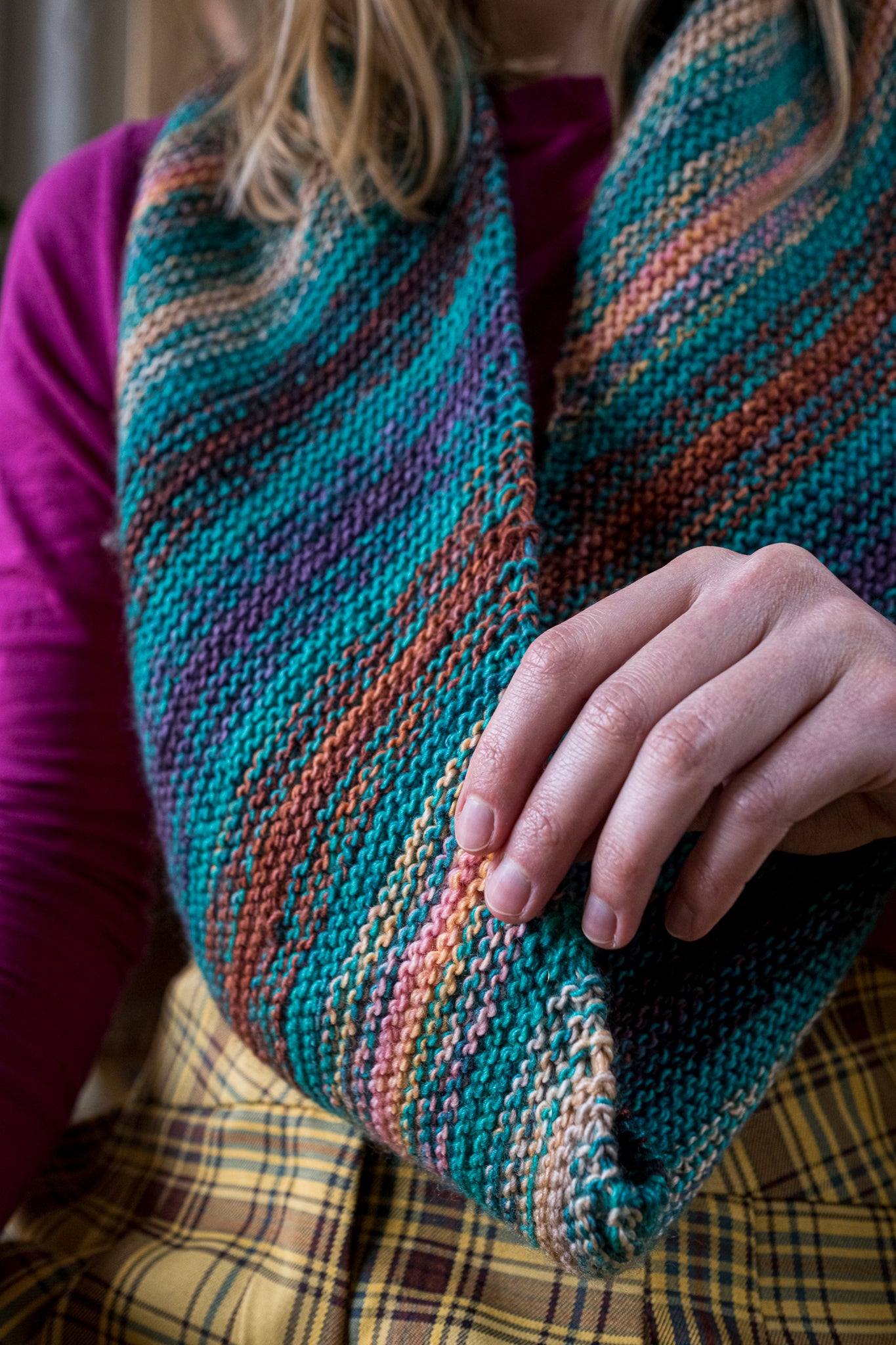 The Zelda Cowl takes marled stripes up a notch with a simple bias structure. The stripe sequence plays marled stripes against solid ones for a salt-and-pepper contrast.