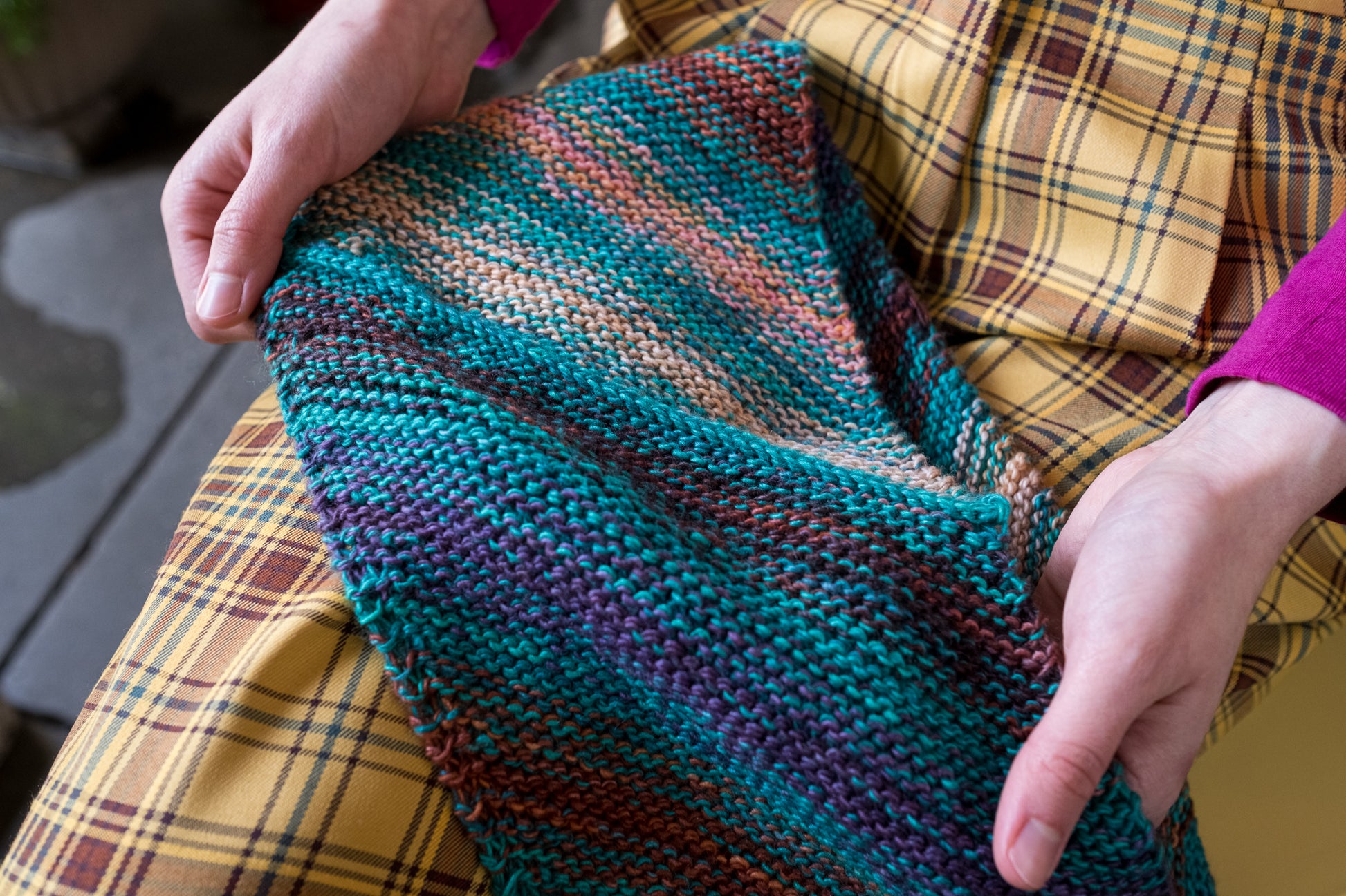 Gauge: 5½ stitches = 1” in Garter St with two strands of