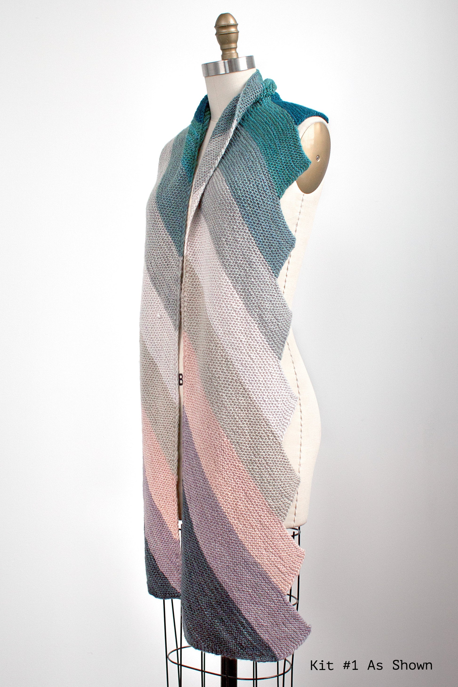 Yarn Requirements: Silk Blend, As Shown in 3059 Kohl (1 sk), 3025 Shale (1 sk), 3052 Cameo (1 sk), 3019 Dove (1 sk), 3218 Silver (1 sk), 3031 Nickel (1 sk), 3224 Ice Melt (1 sk), 3029 Steel (1 sk), 3036 Mallard (1 sk)