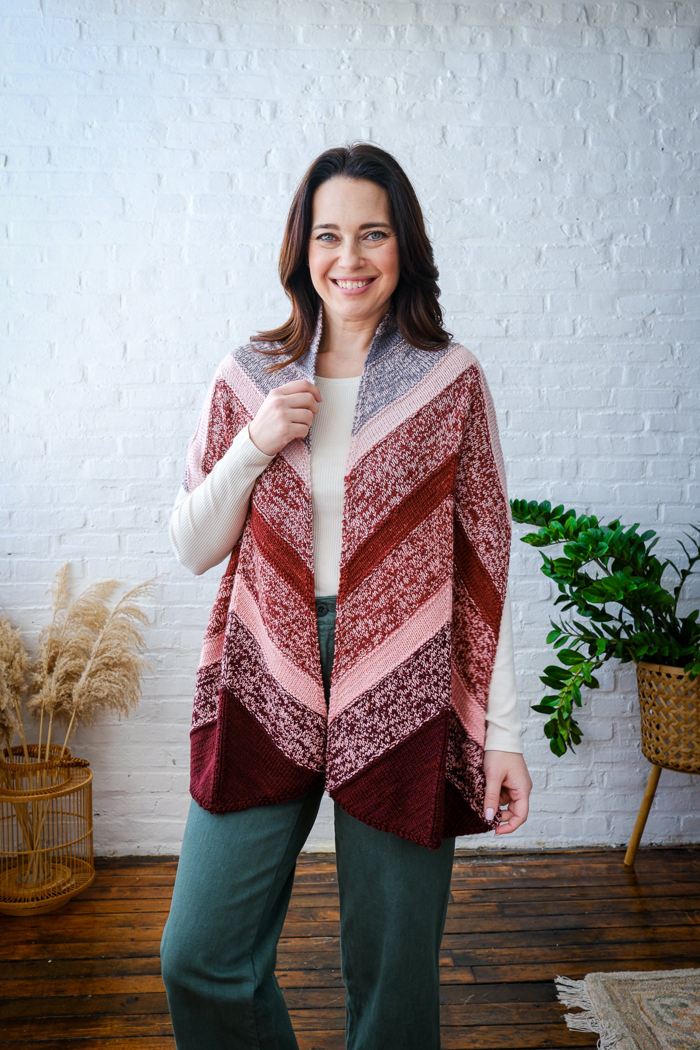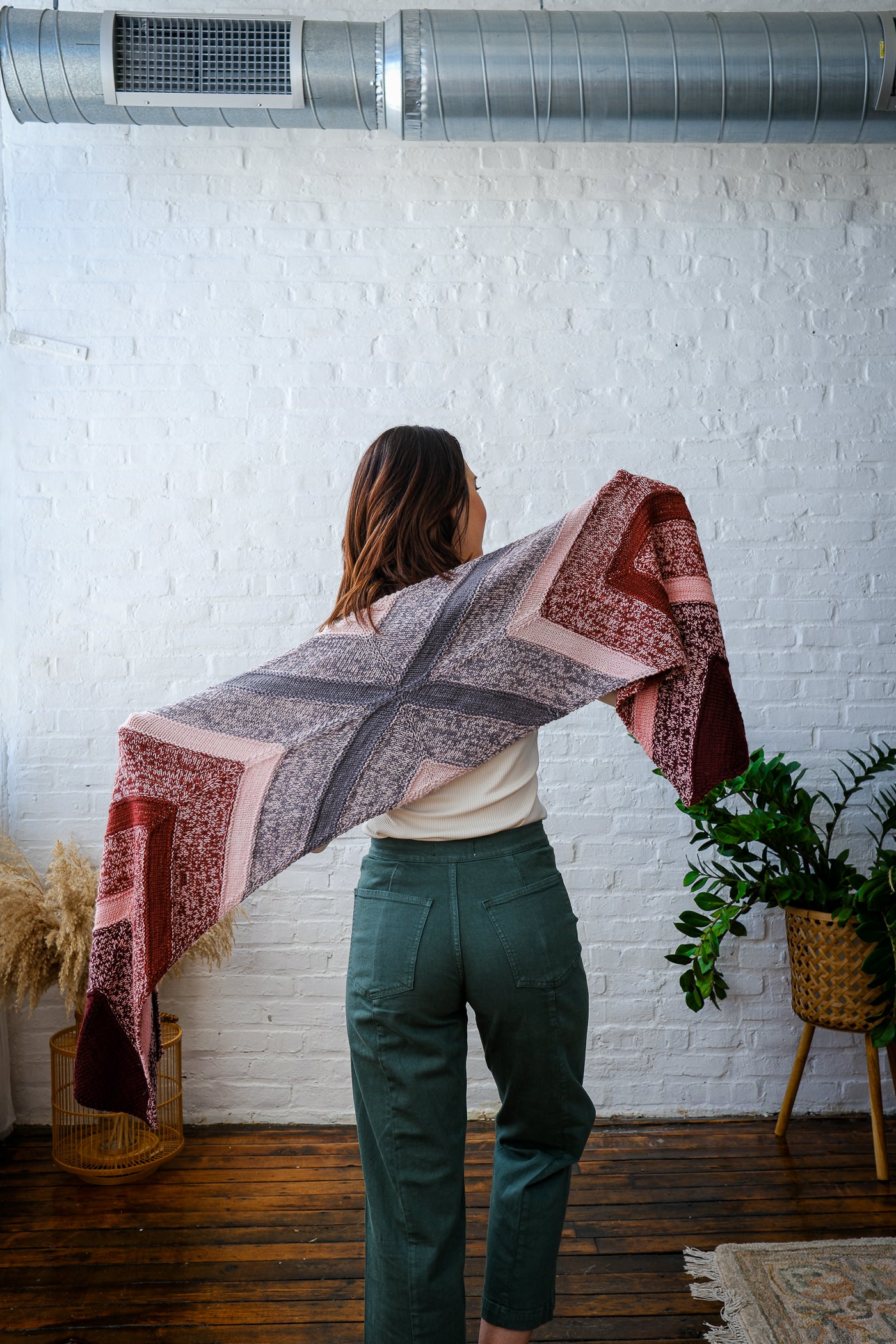 The colors Jocelyn chose flow from light to dark in a dynamic way: Alegria in Nickel and then Petal, flows to Cinnamon and then Peachblossom, and finally to Oxblood. Alegria comes in over 50 semi-sold colors, so choosing your own color palette is a joy!