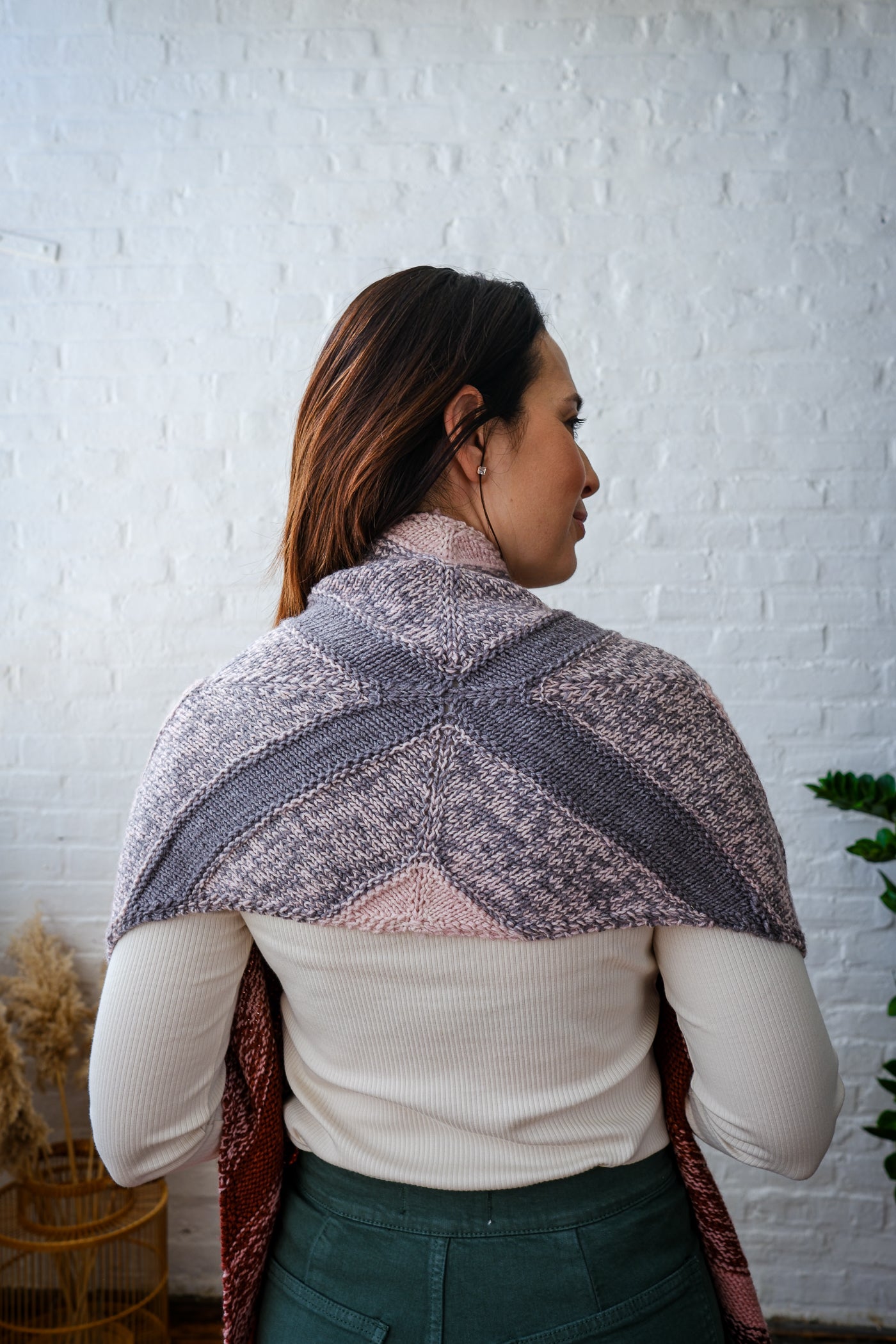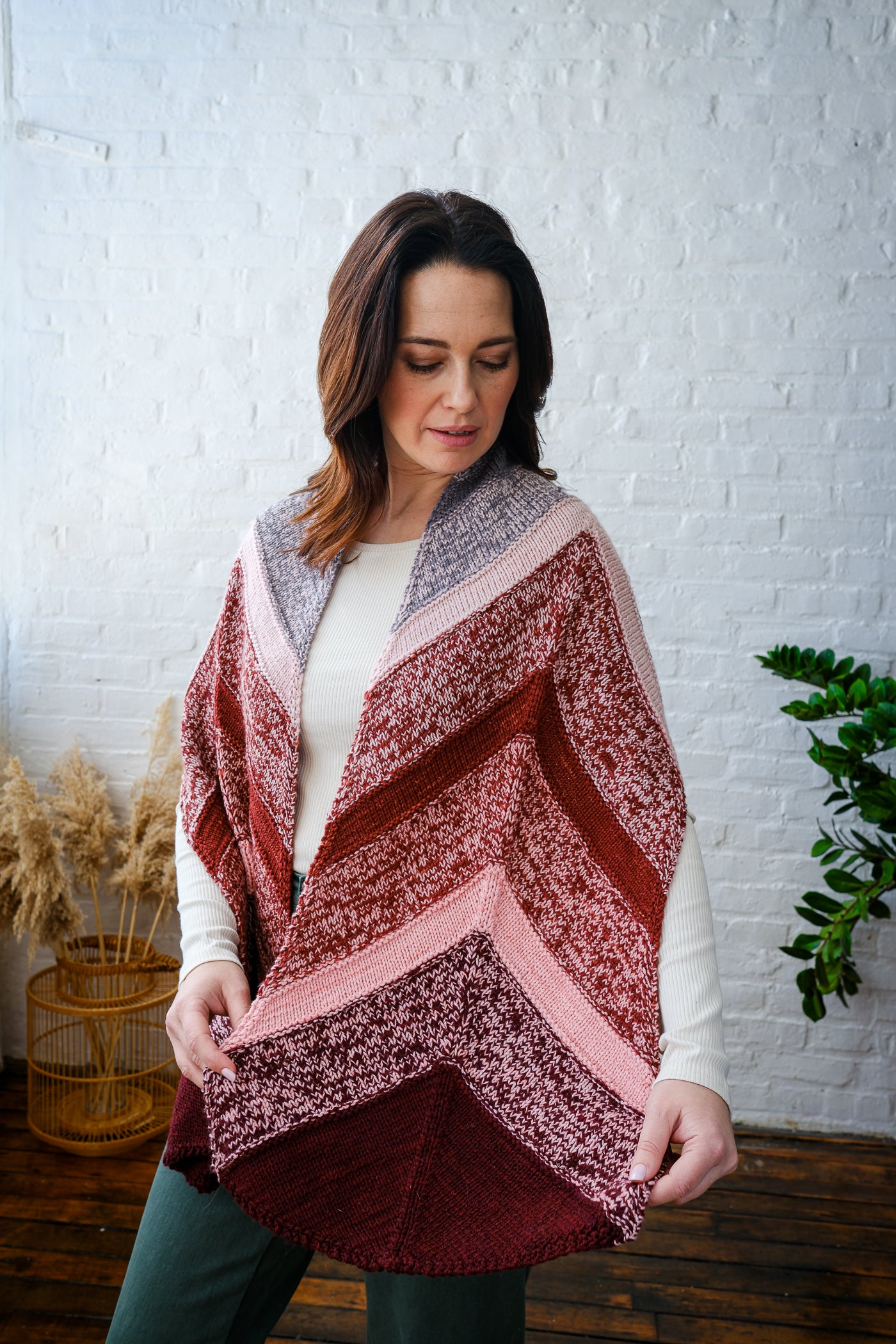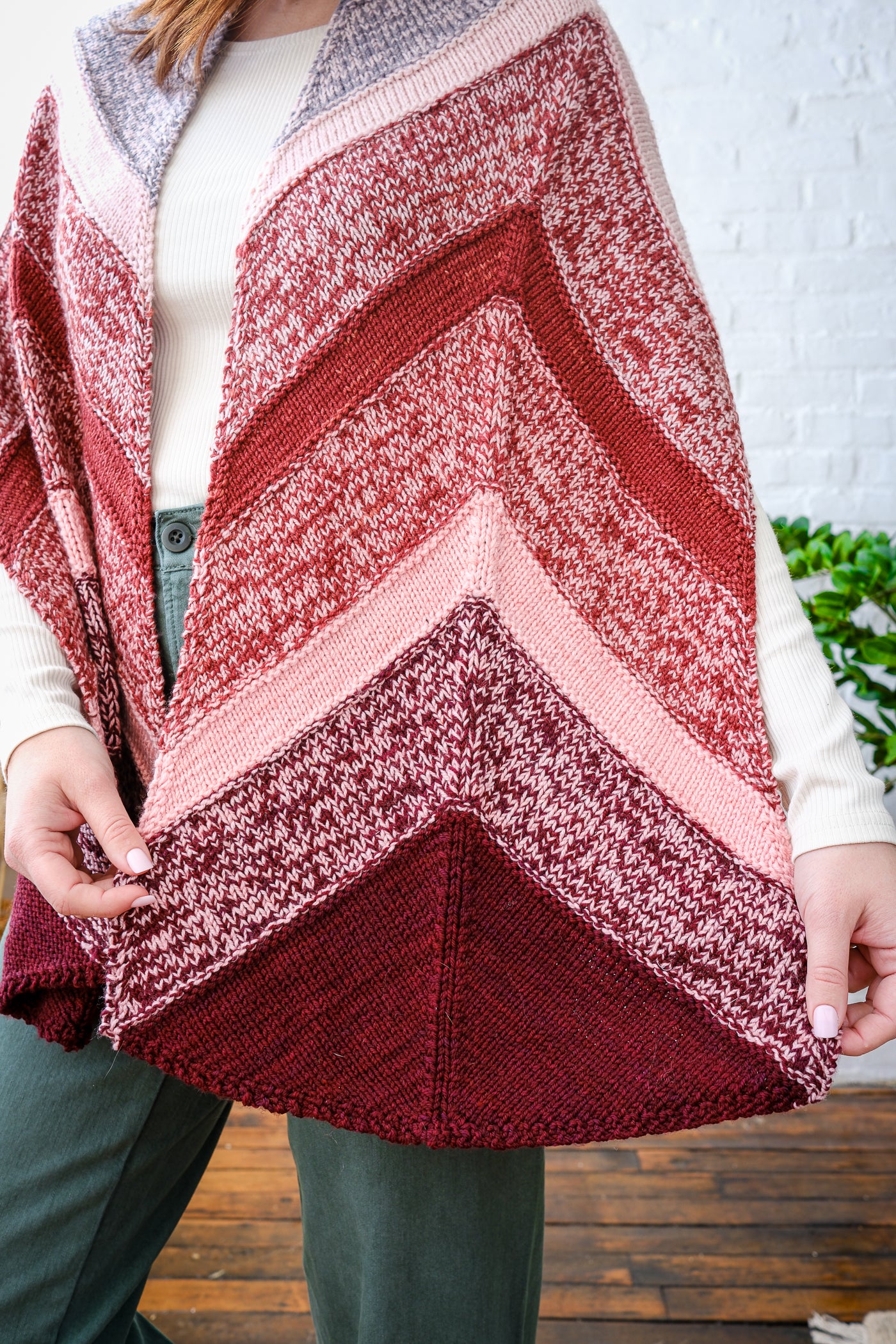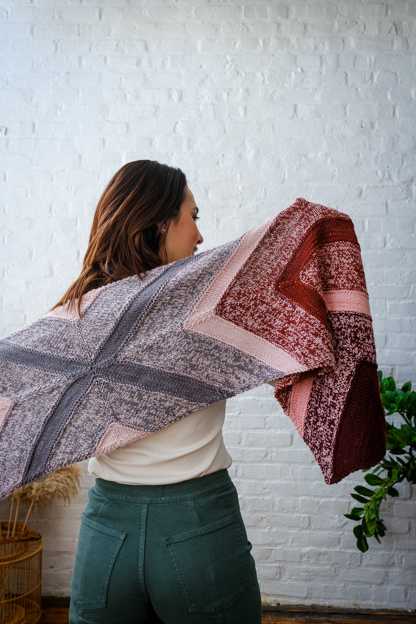 The Andorra Wrap uses Alegria, our fingering weight yarn, held double for a beautiful Spring wrap. The project ticks all the boxes for a Spring-y cast-on: lots of colors, an interesting construction, and a large gauge!