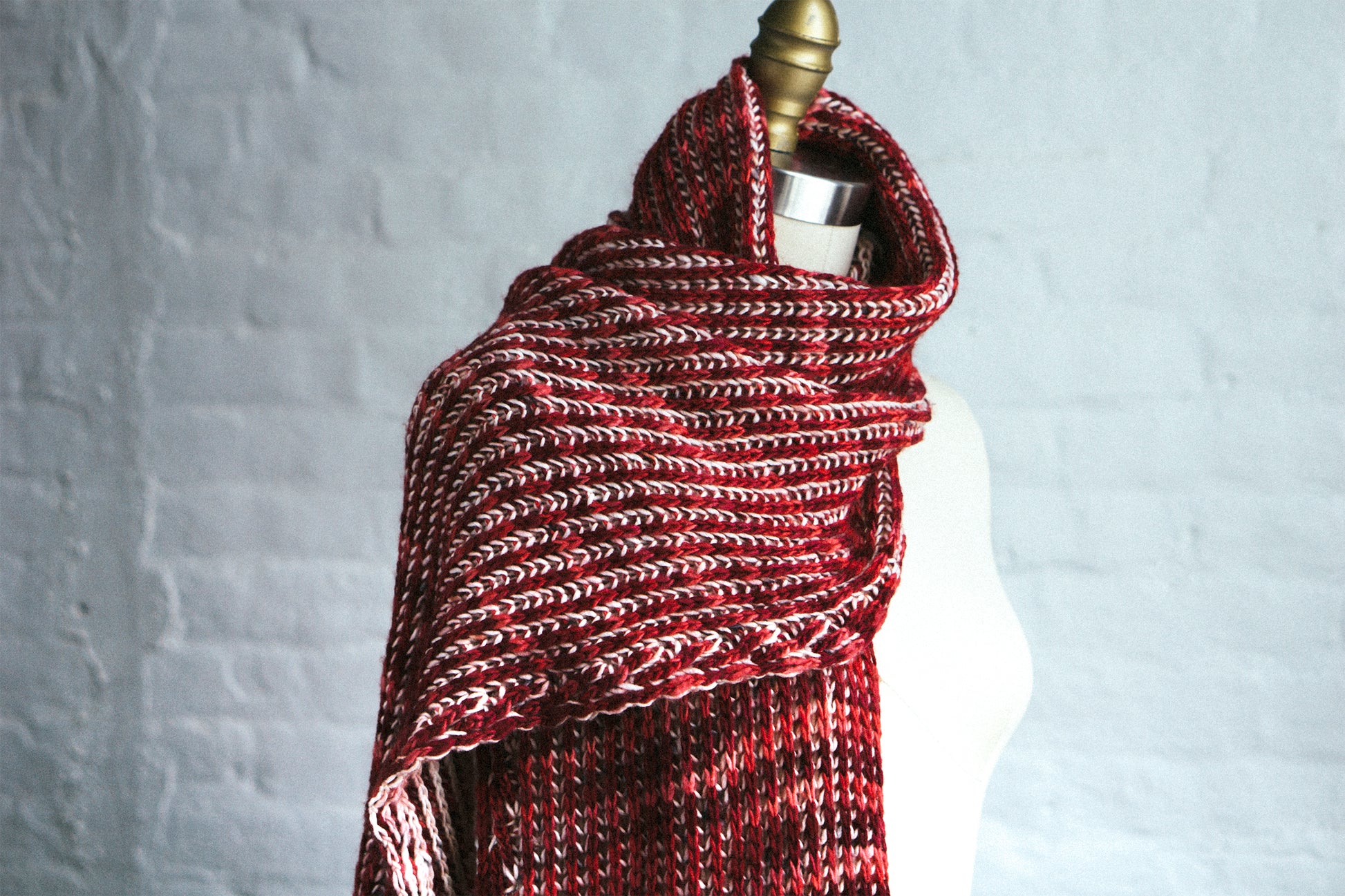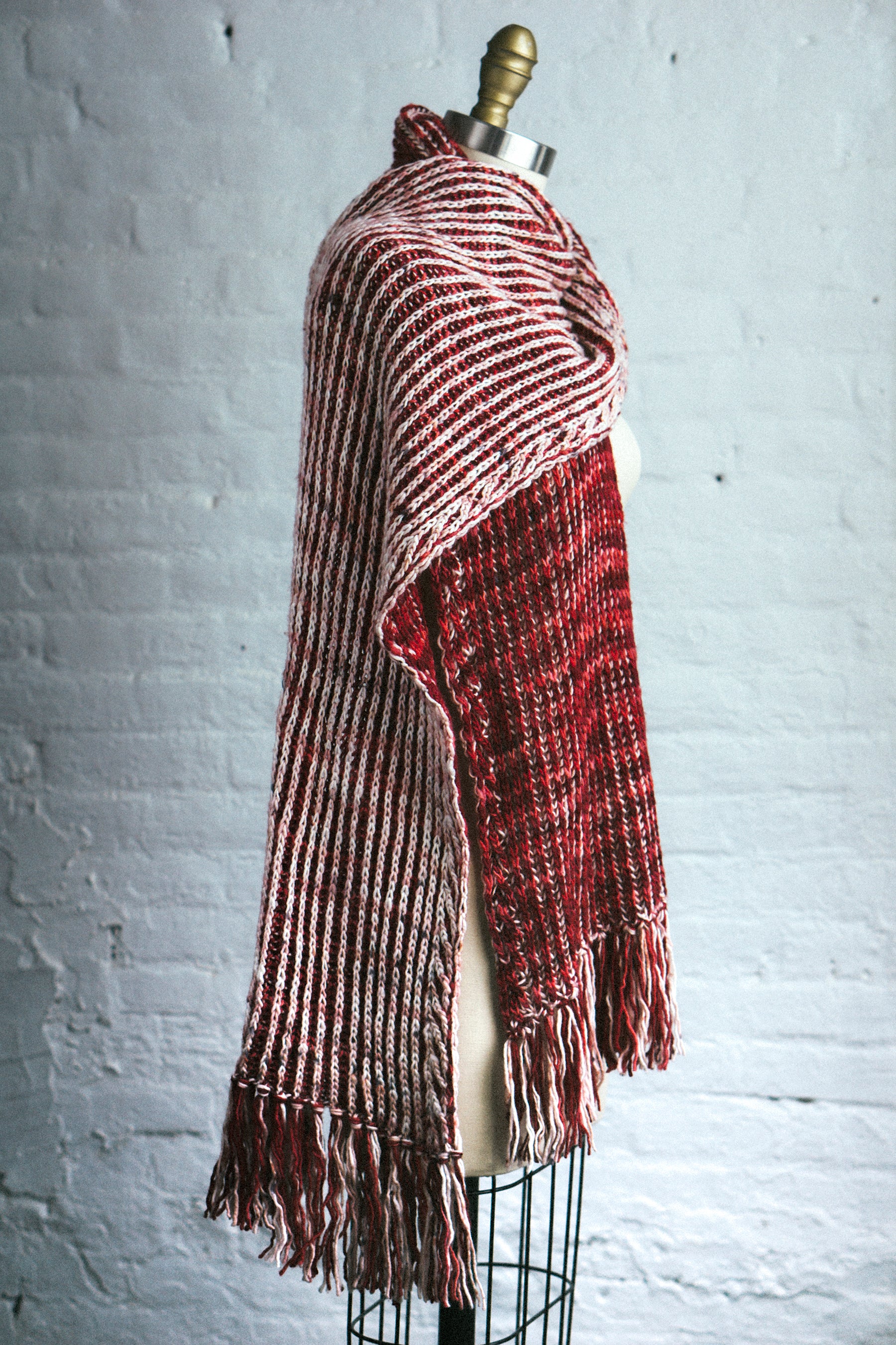 Gauge: 18½ sts and 32 rows (16 rows each face) = 4”/10cm in brioche pattern, blocked (see Notes).