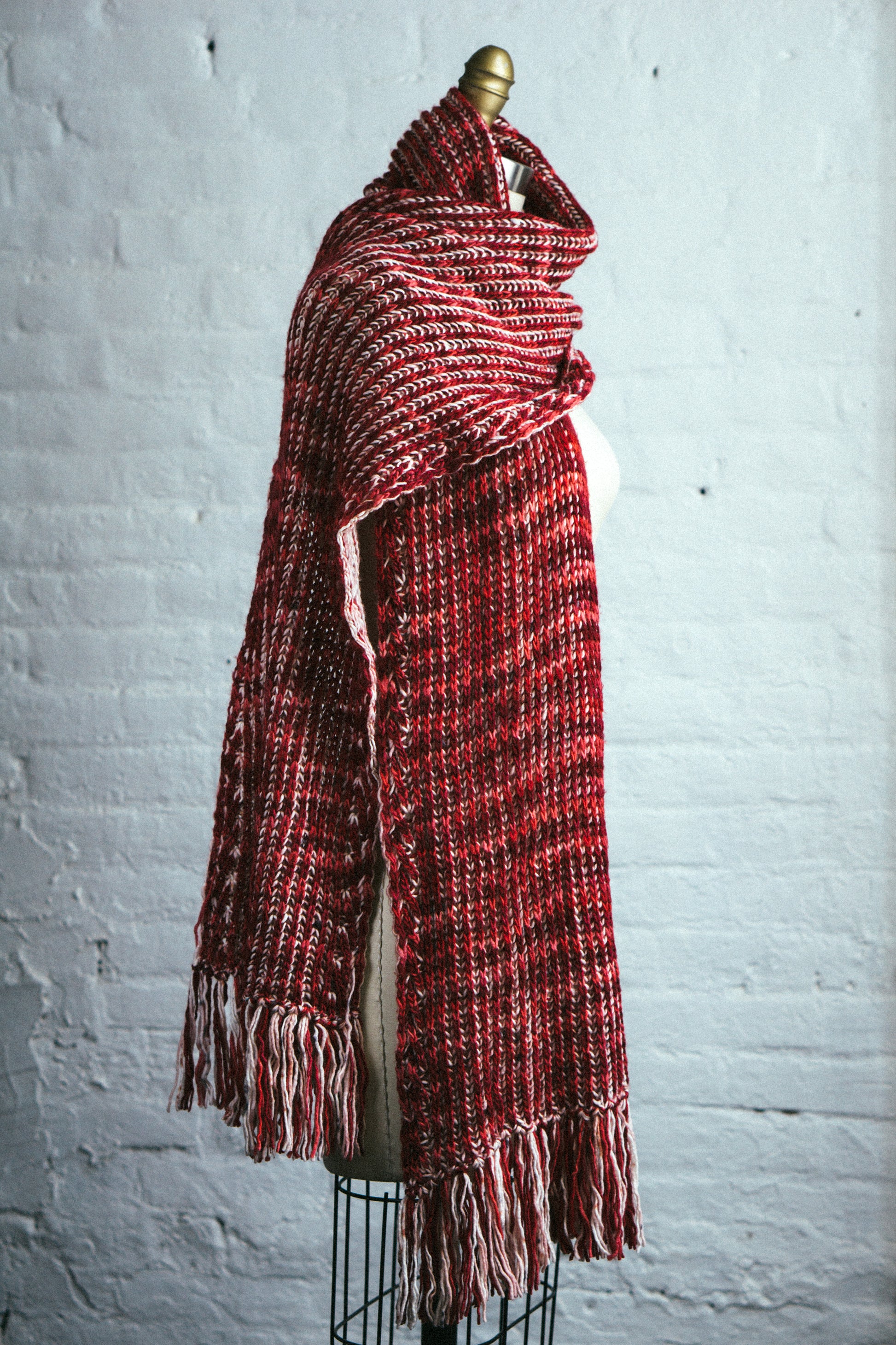 Finished Size: 13” wide and 68” long (excluding fringe)