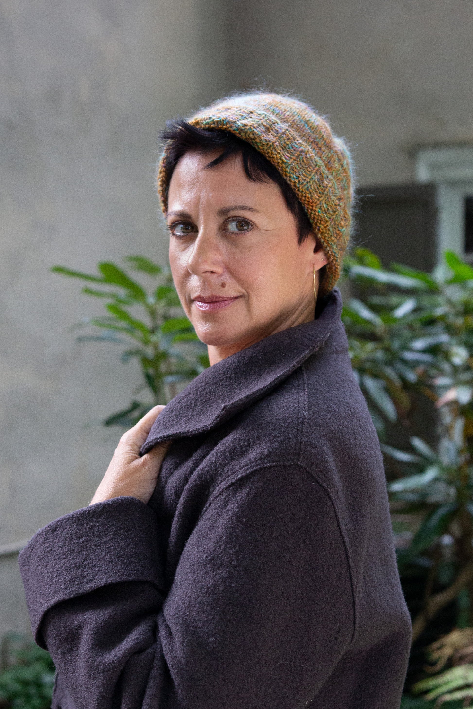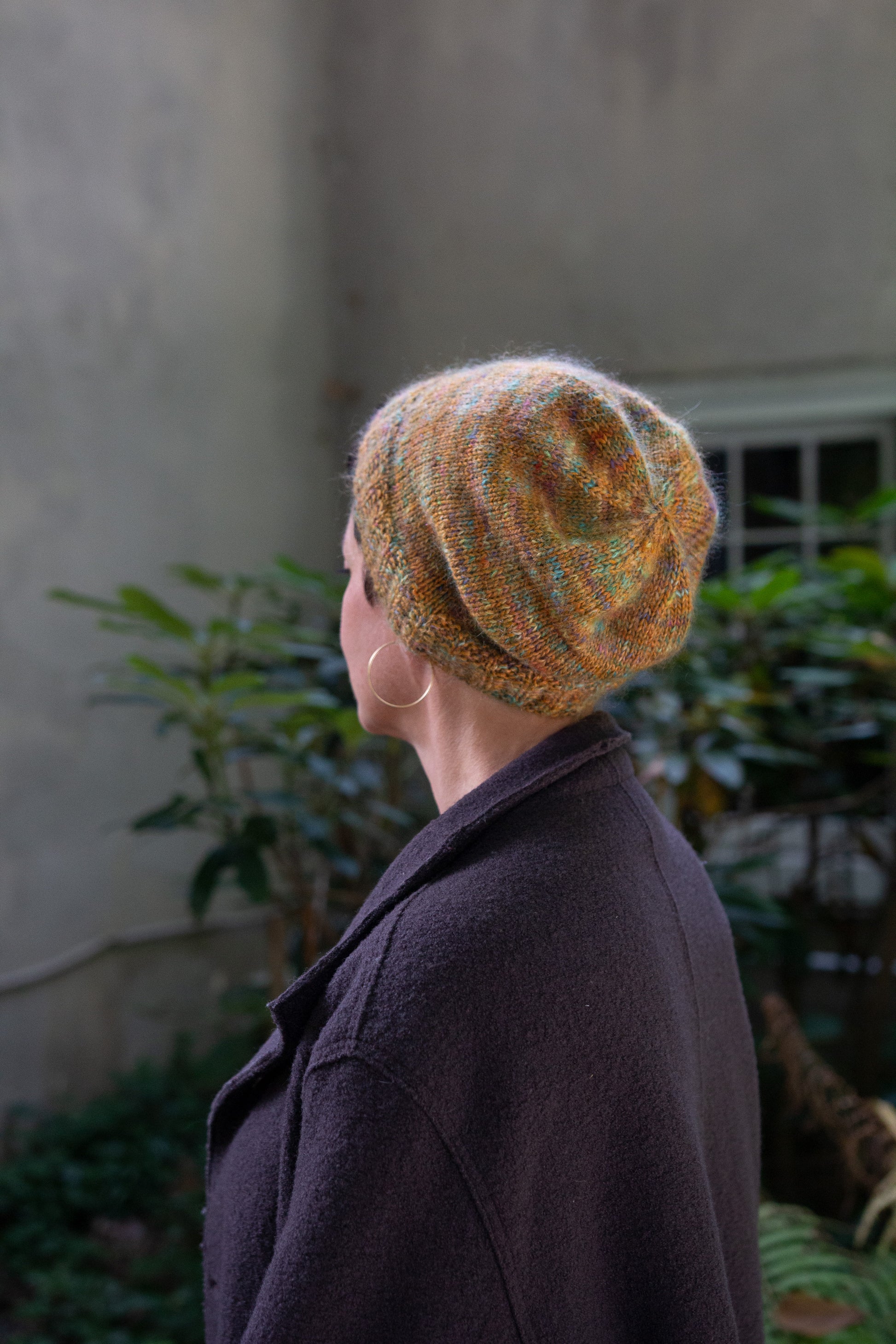 This quick-and-simple hat is made lovely by its details: the subtle, tweedy colorplay of the yarn combination; the unusual uneven rib; and of course, the soft haze of a fine strand of kid mohair. Treat yourself!