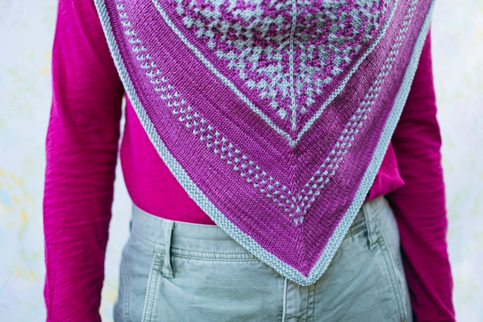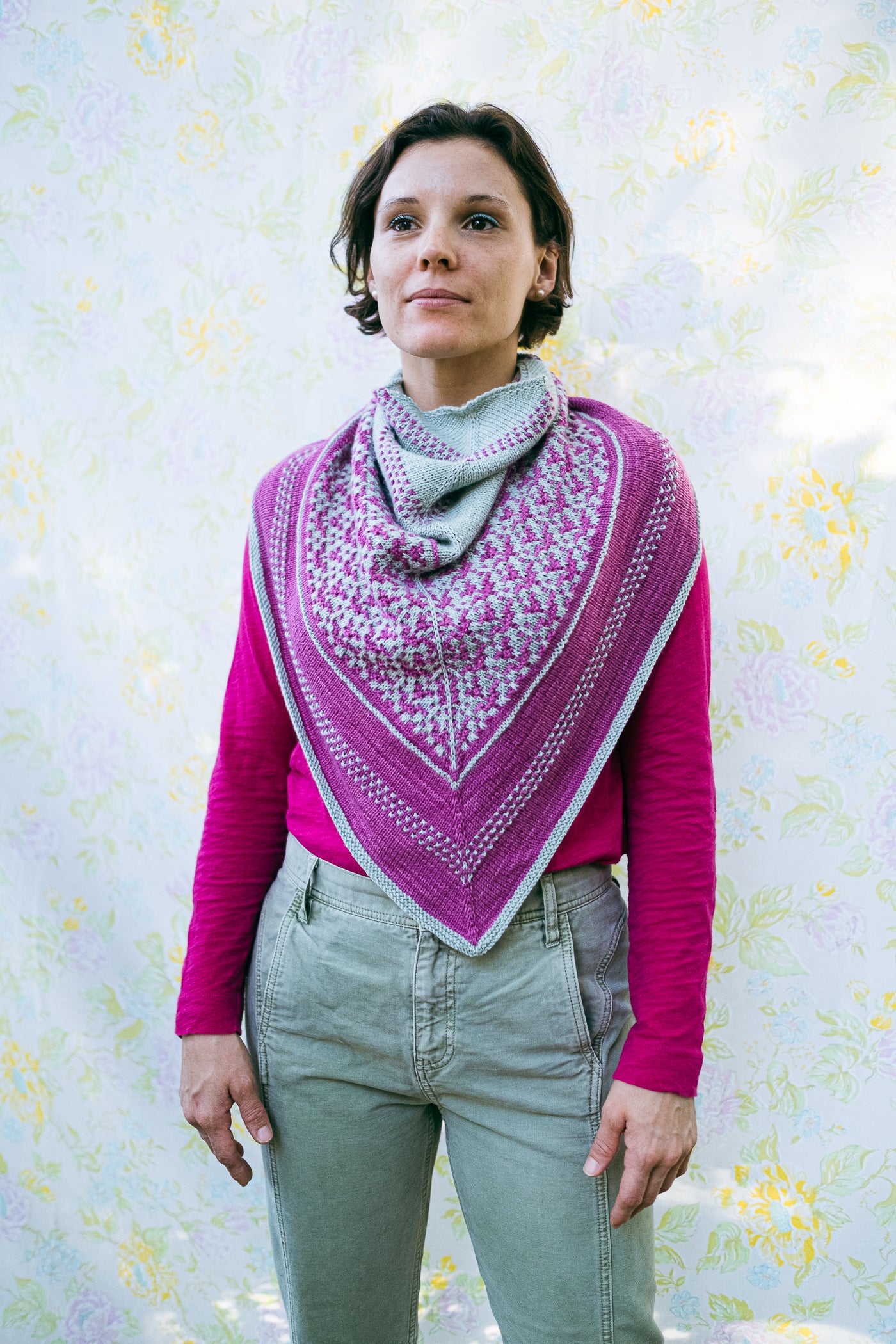 Snowdrops - tiny, white flowers that robustly peep their way up through the lawn (and the occasional snow cover) in mid-February - always bring a smile to our faces and the knowledge that Spring is on its way. These were the inspiration for the use of the "Sprig" mosaic pattern, which echoes the snowdrop's two linear leaves and petal cluster. The mosaic pattern is soft and springy in our fingering-weight Alegria.