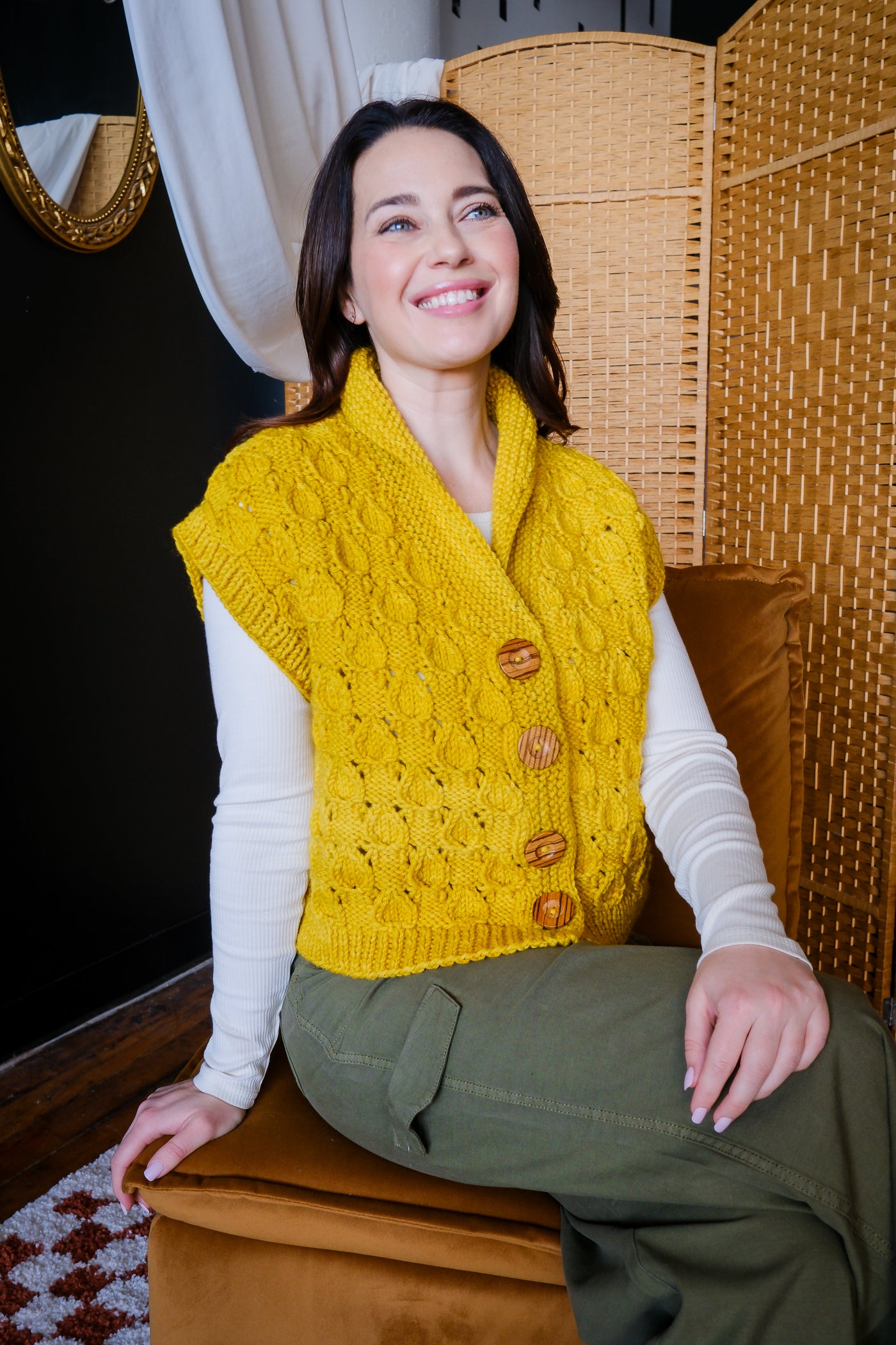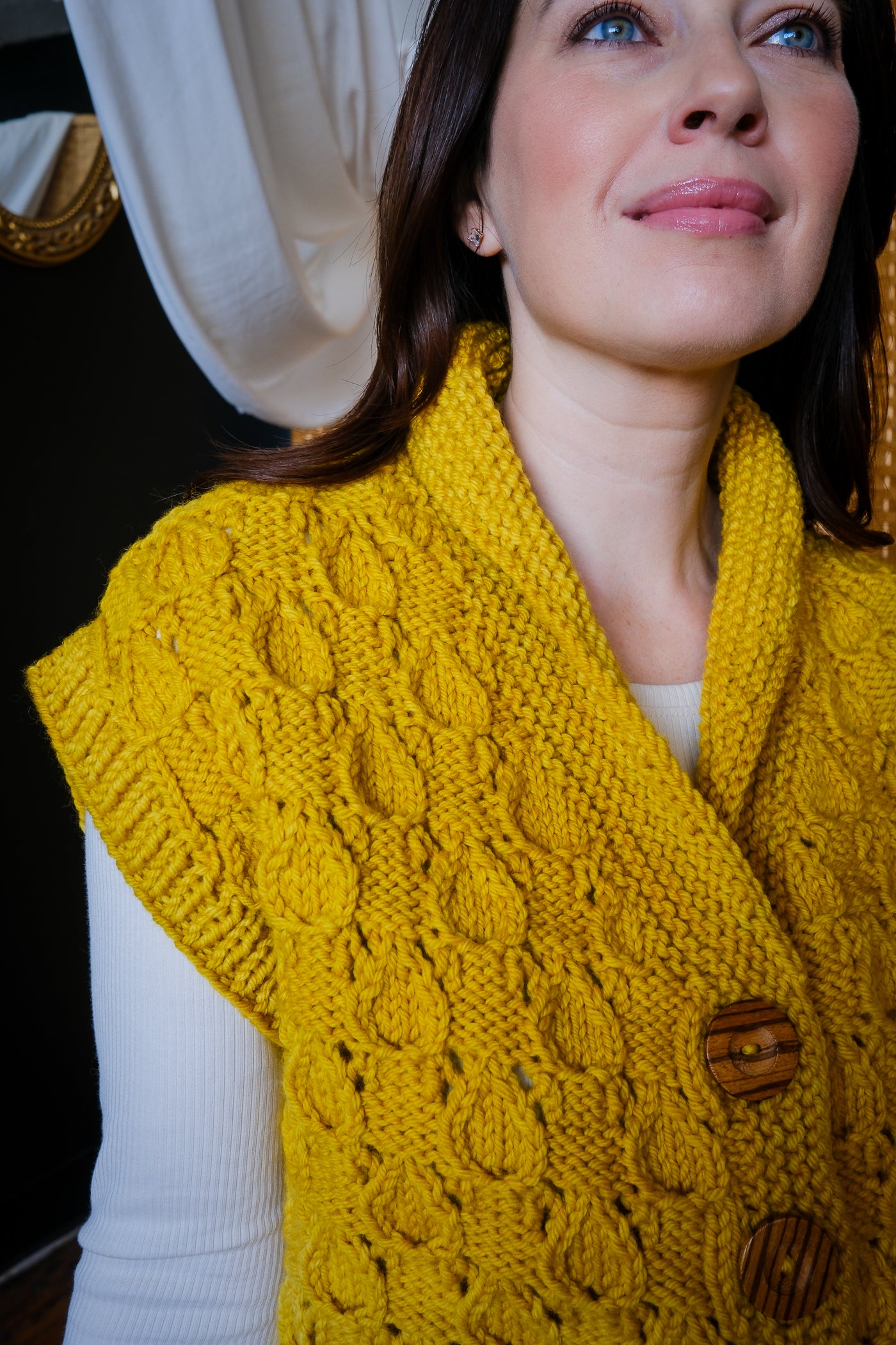 Yarn Requirements: Shown in Cardo, 6 (7, 7, 8) (9, 10, 10) sks D2040 Daffodil