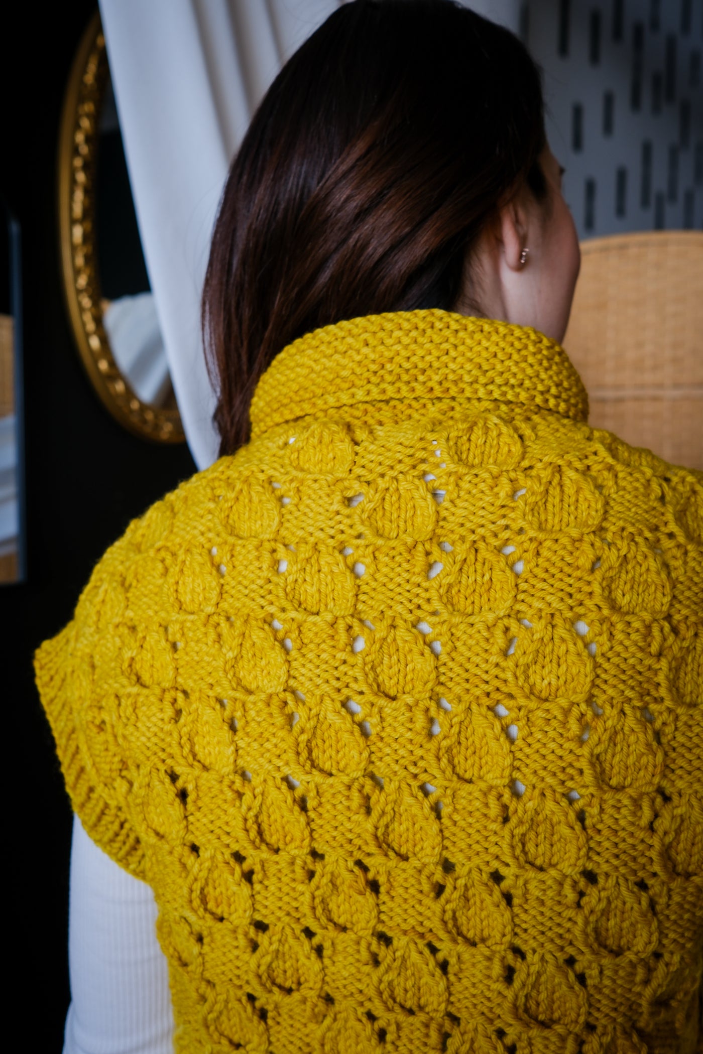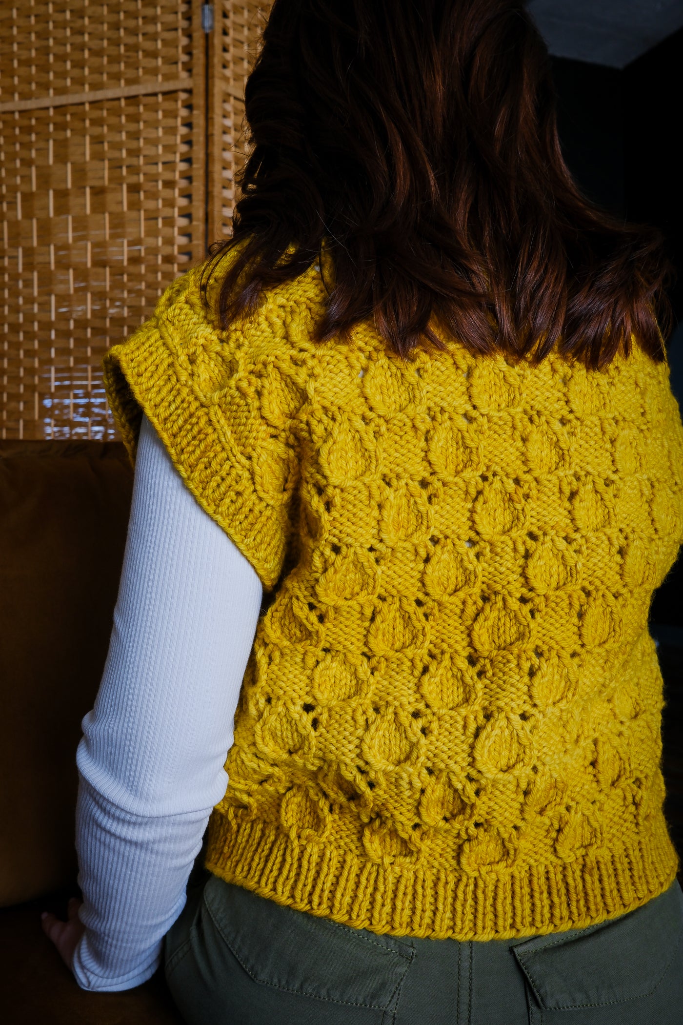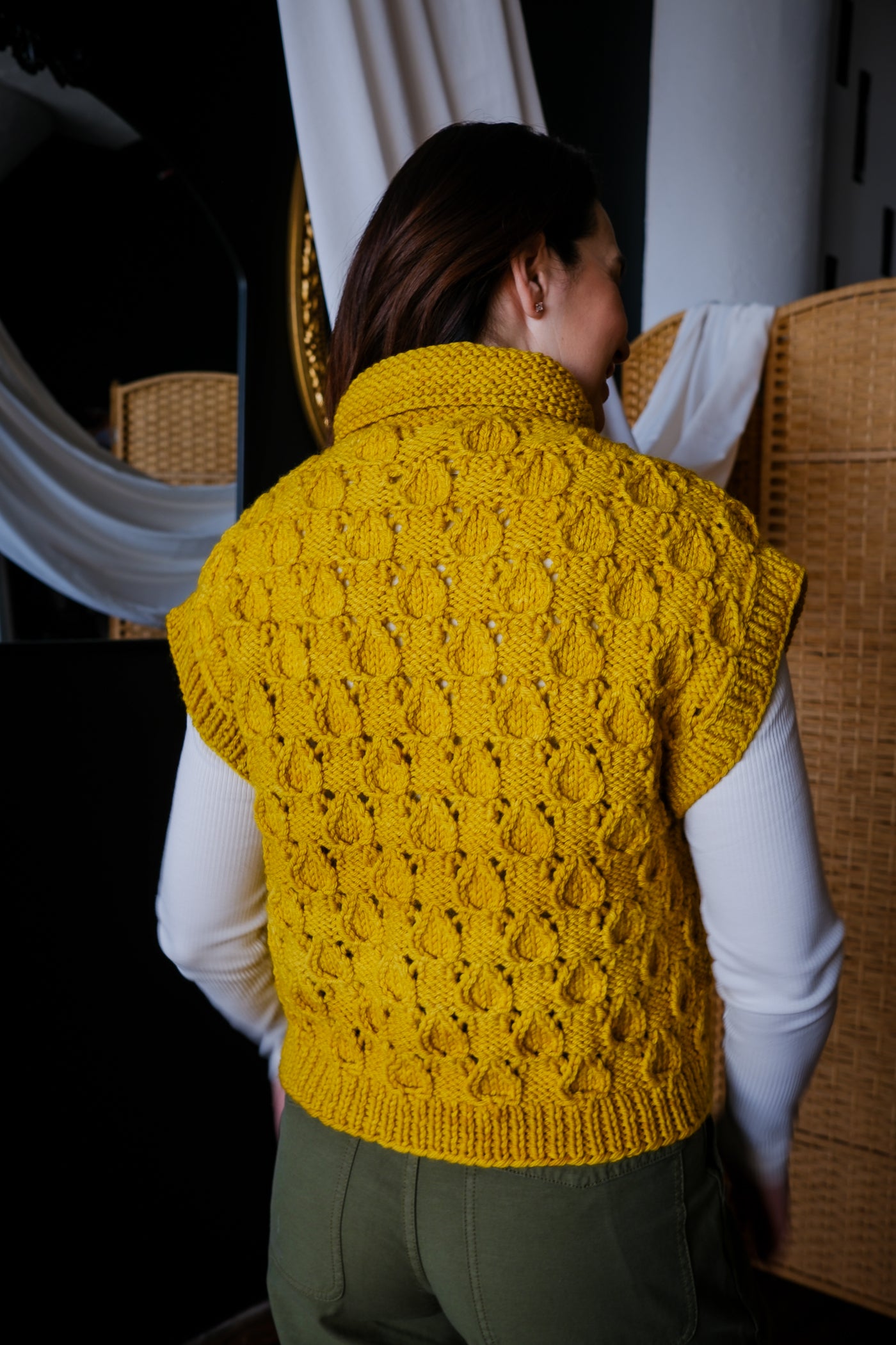 The large gauge turns simple lozenges into a bold and graphic design. Scoop up Cardo, our 100% Corriedale non-superwash yarn, and make this season's go-to garment in a tic!