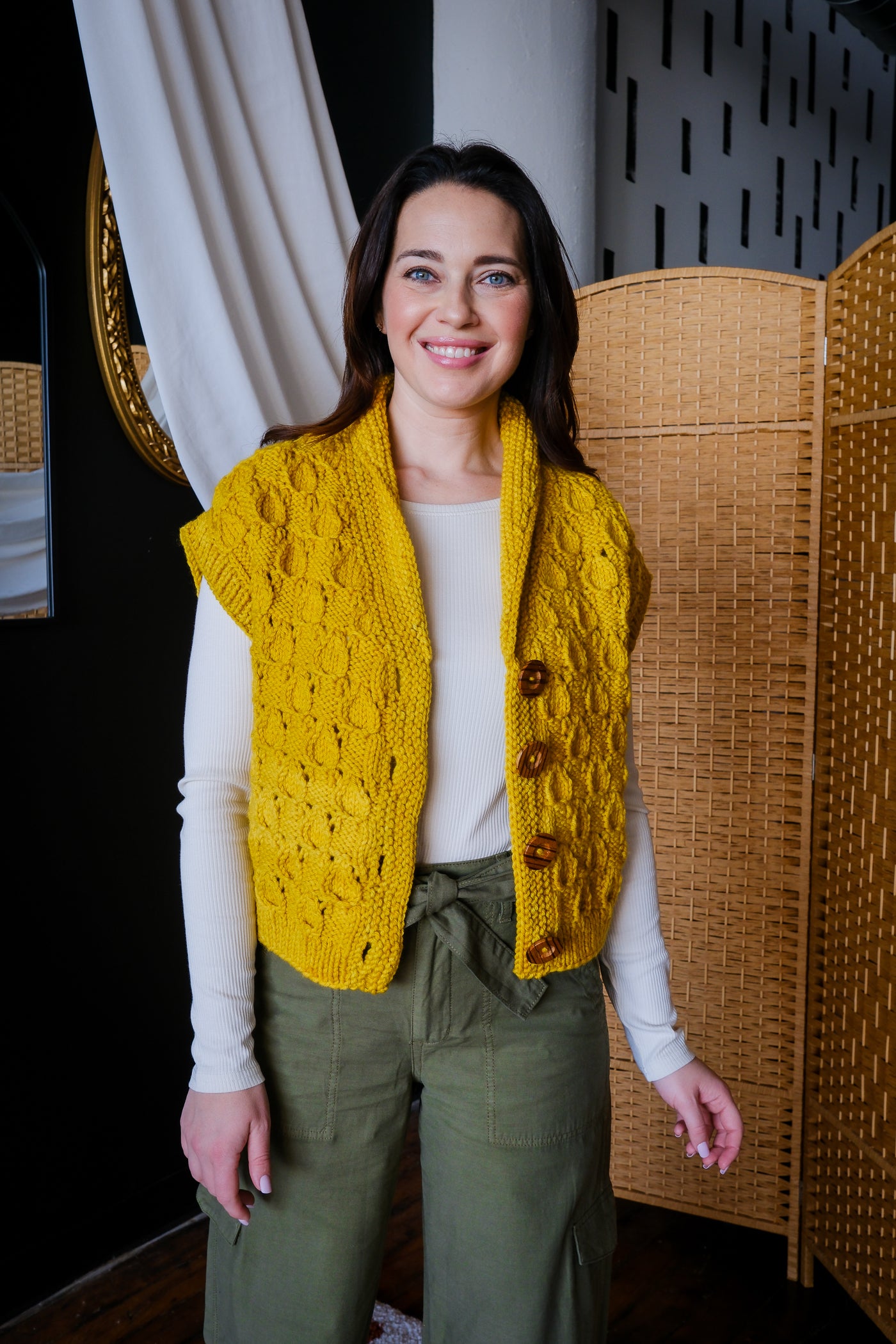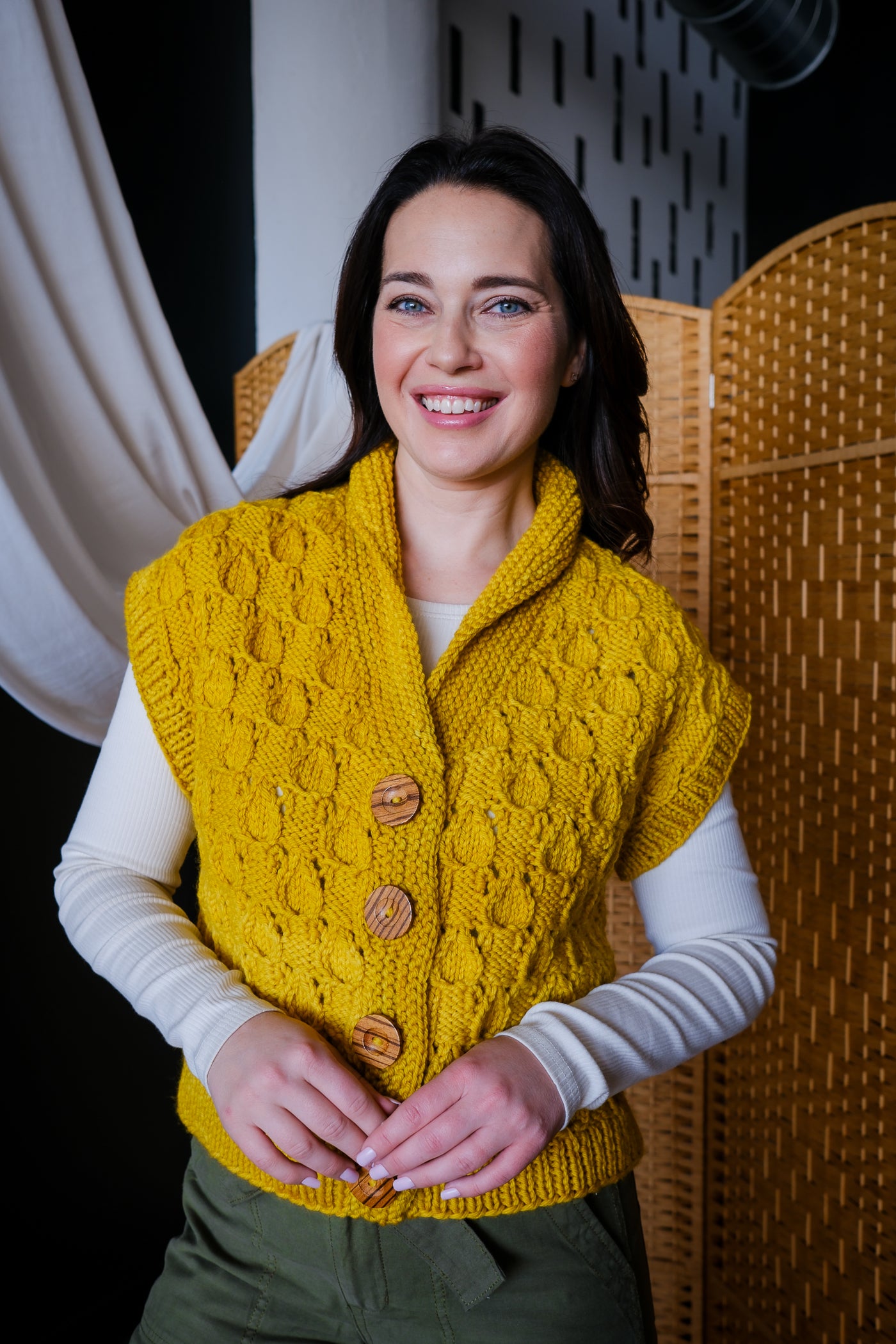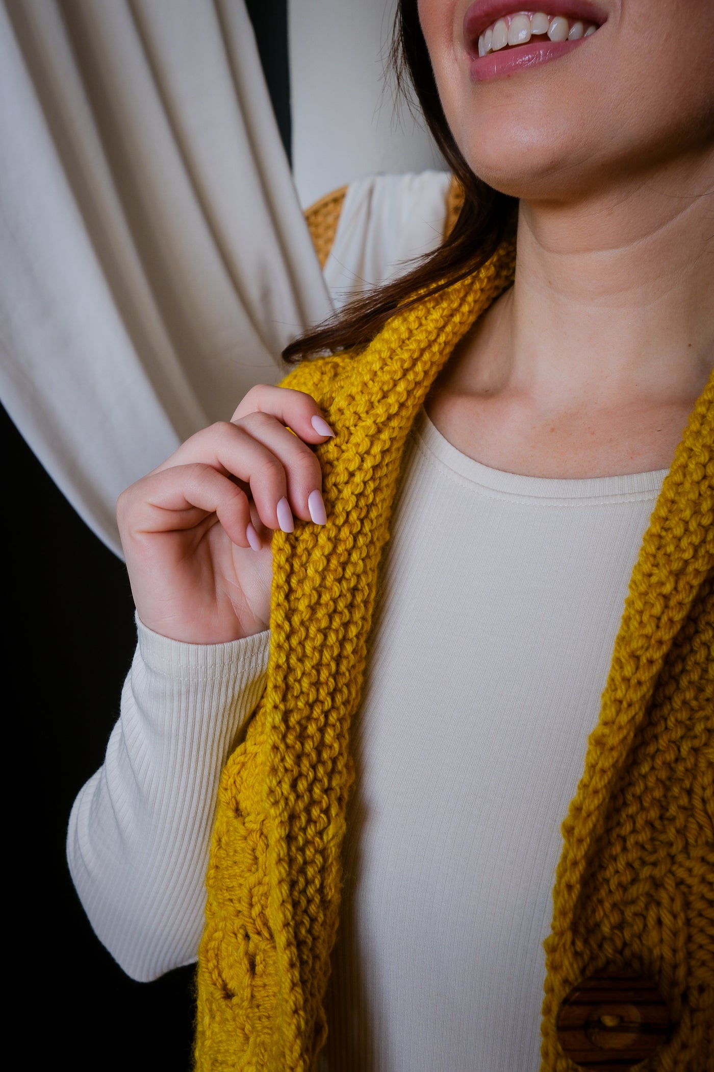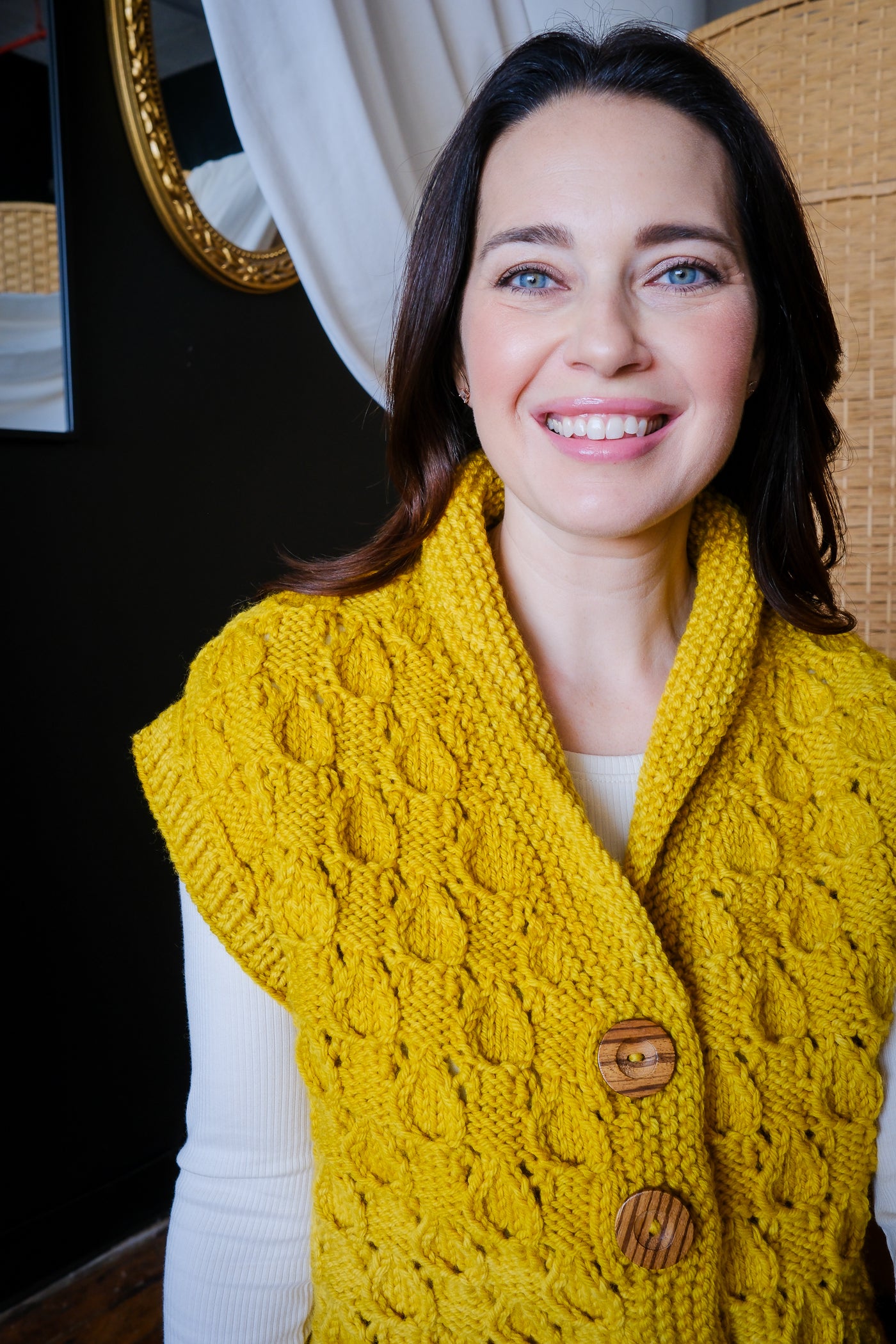 The large gauge turns simple lozenges into a bold and graphic design. Scoop up Cardo, our 100% Corriedale non-superwash yarn, and make this season's go-to garment in a tic!
