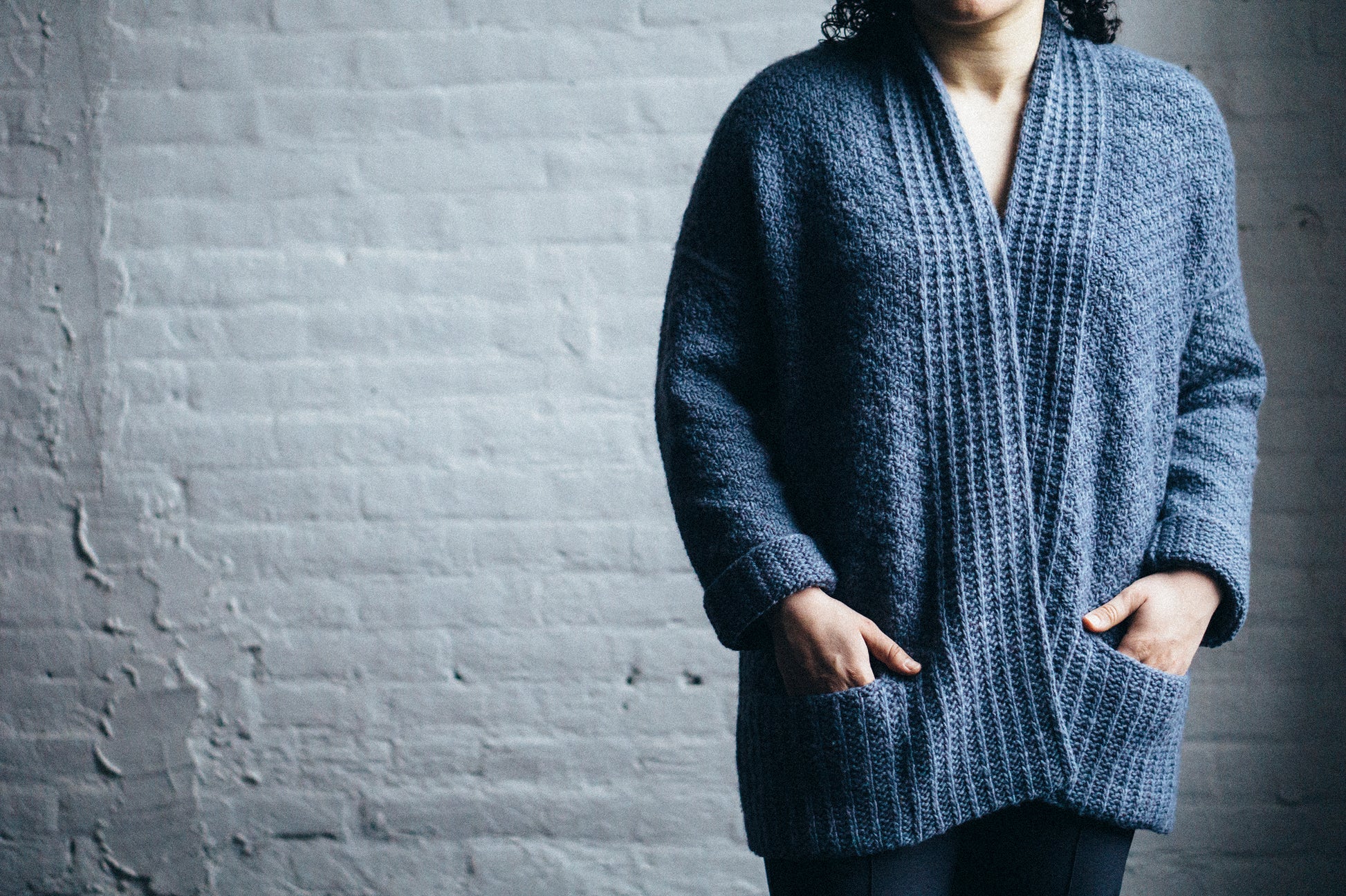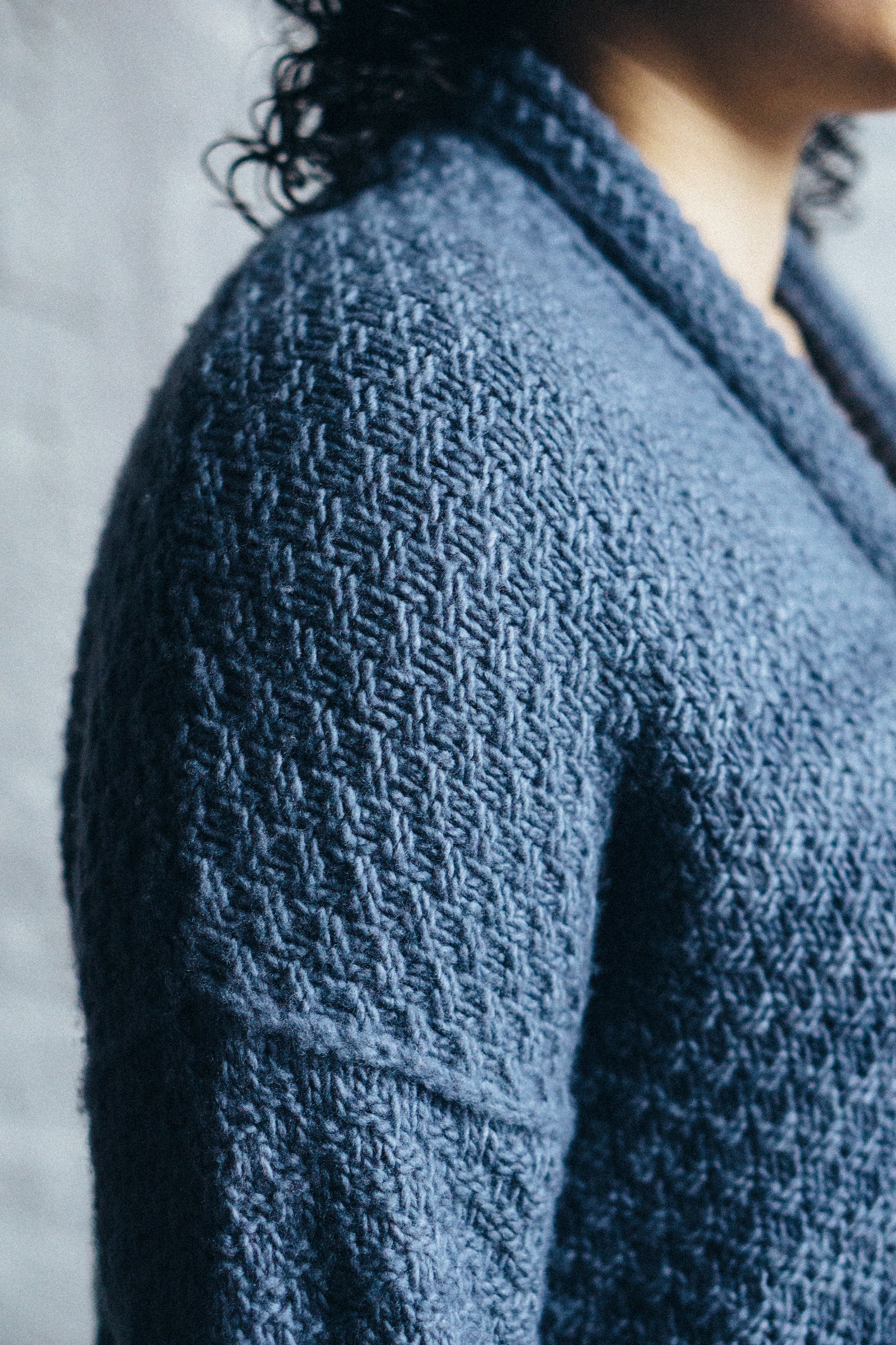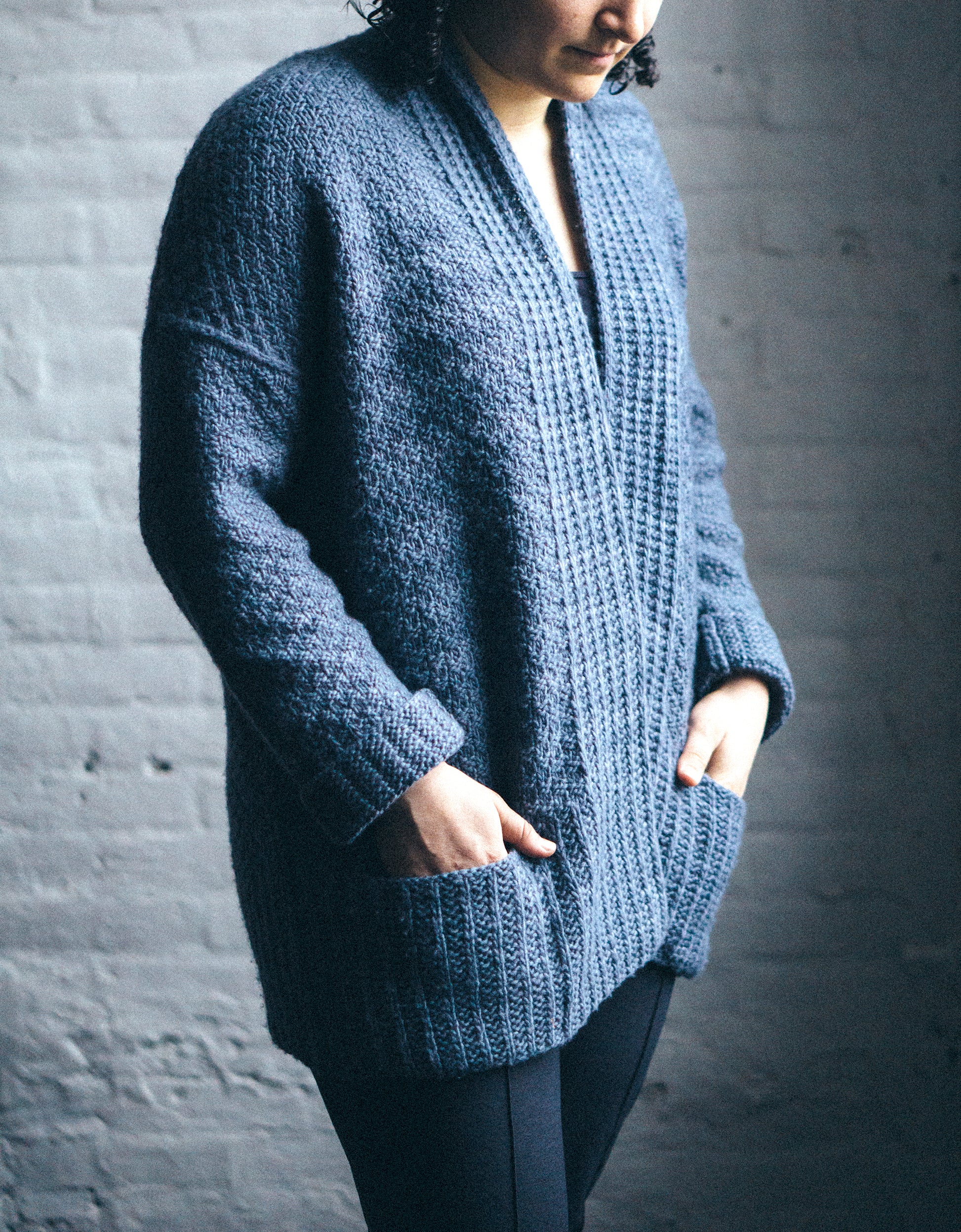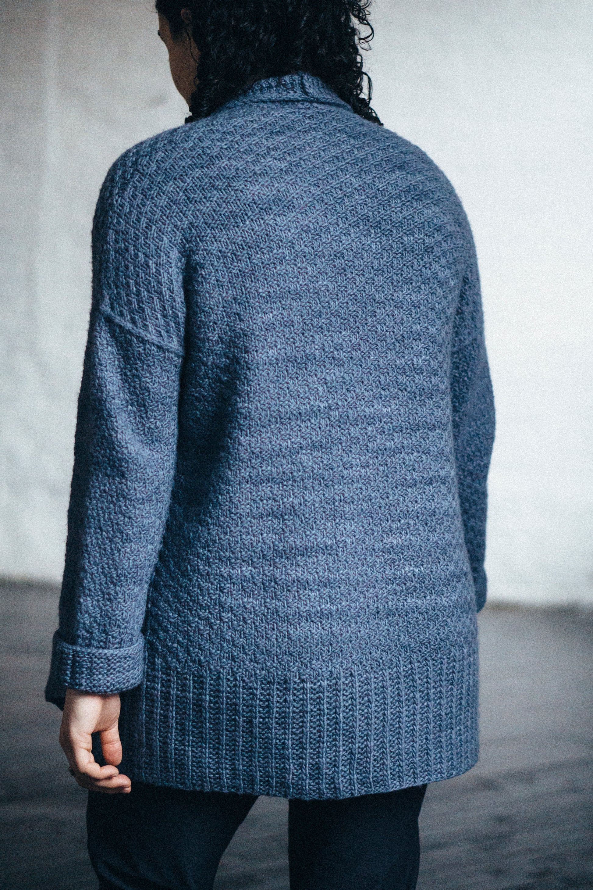 Yarn Requirements: Maxima, shown in M2545 Pewter (7 (7, 8, 9, 11) sks)