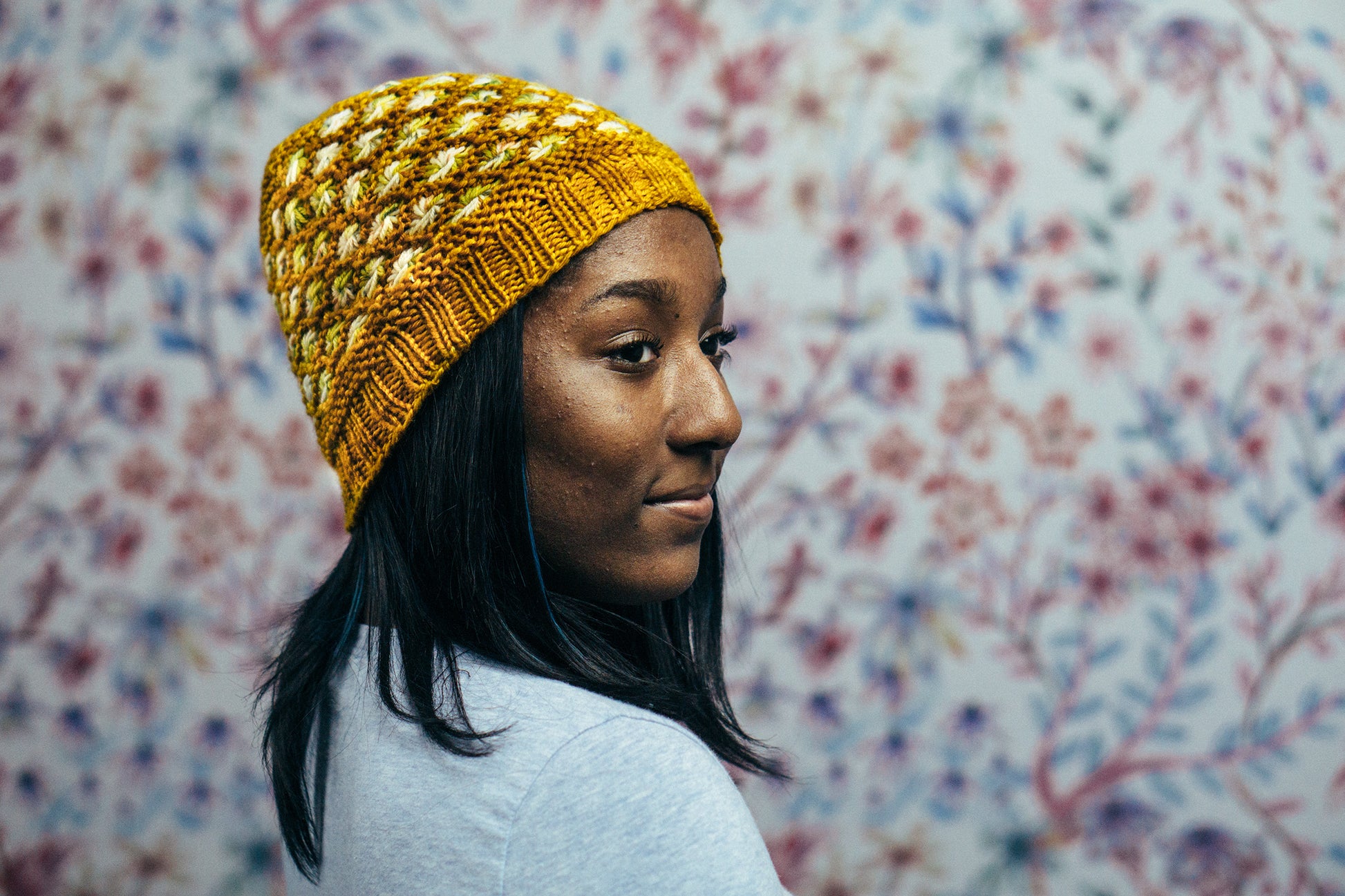 While you're waiting for the flowers that bloom in the Spring, knit a few of your own: the aster motifs in this cheery hat pop in a space-dyed color against a semi-solid background.