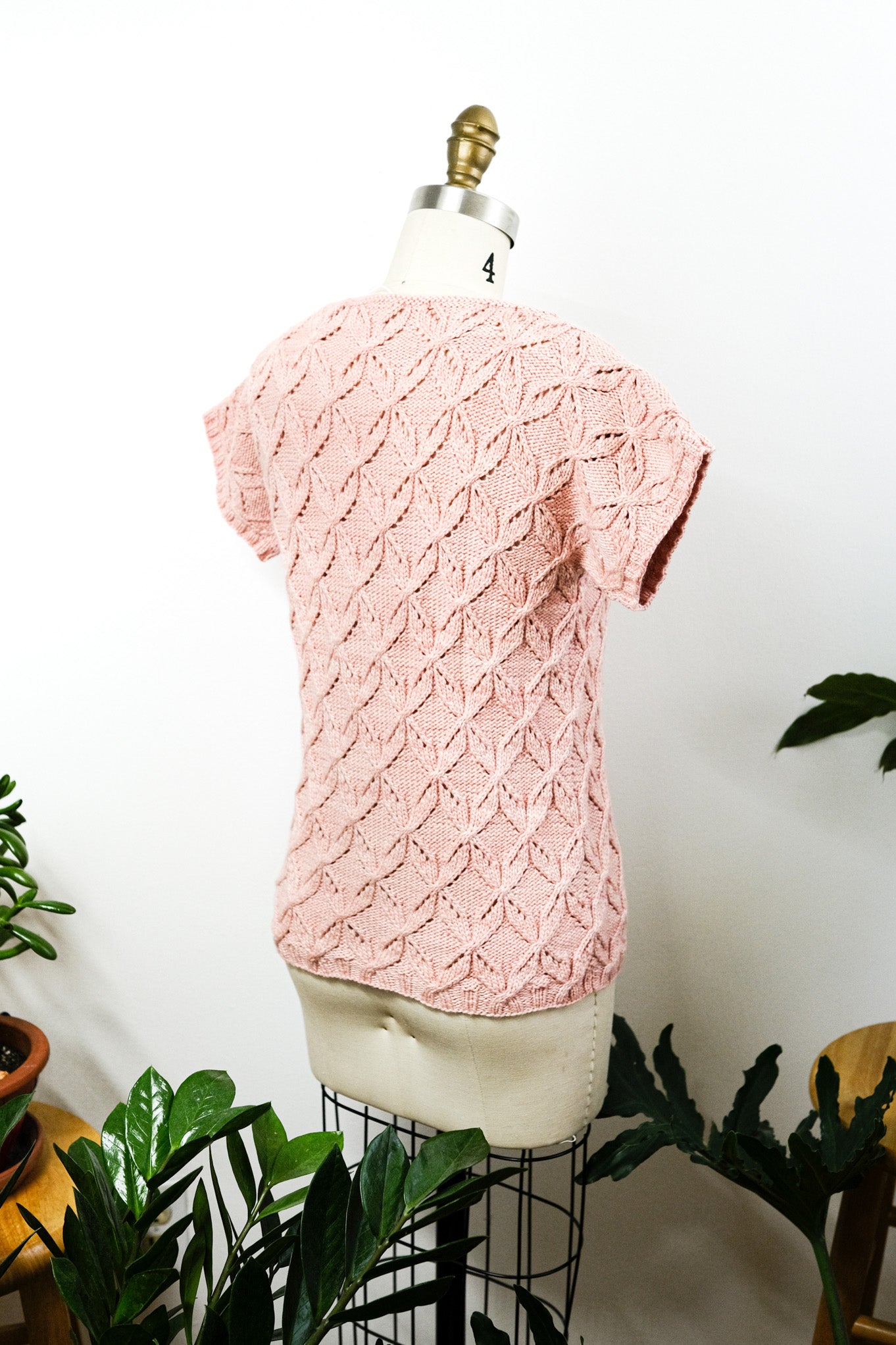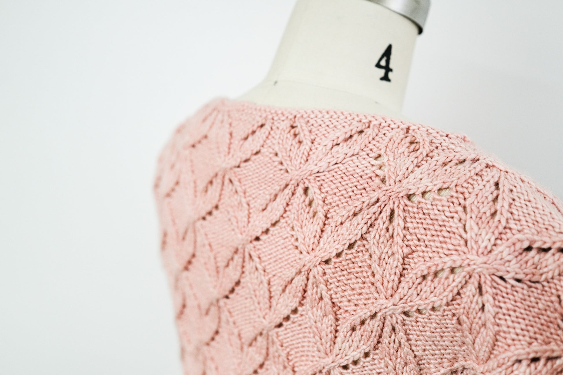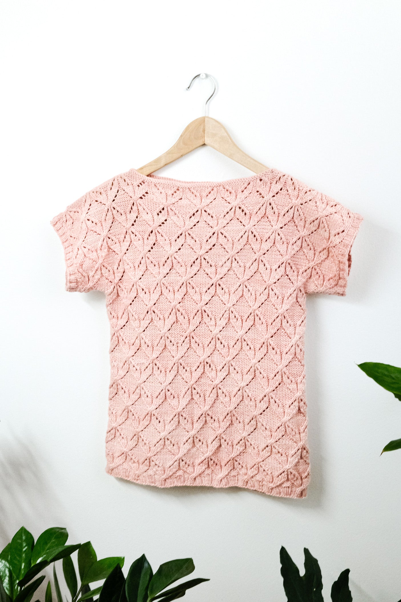 Knit all in one piece, this tee is beautifully designed with minimal shaping to keep the focus on the fascinating stitch pattern - which flows seamlessly around body and sleeves without interruption.