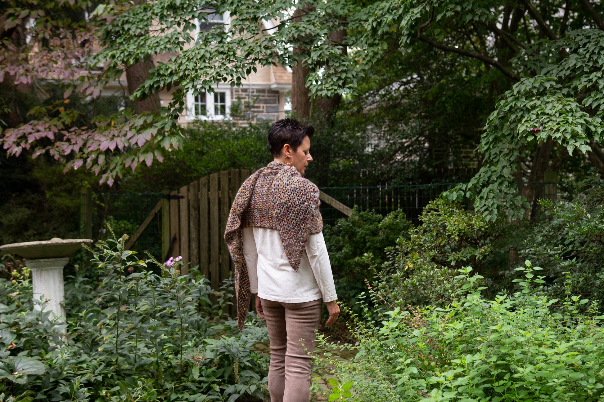 The luxury of silk, merino, and kid mohair combine in a wrap that looks dressy and elegant and feels comfy and cozy. A simple eyelet pattern gives the knitting interest, and the overall length is easily customized.