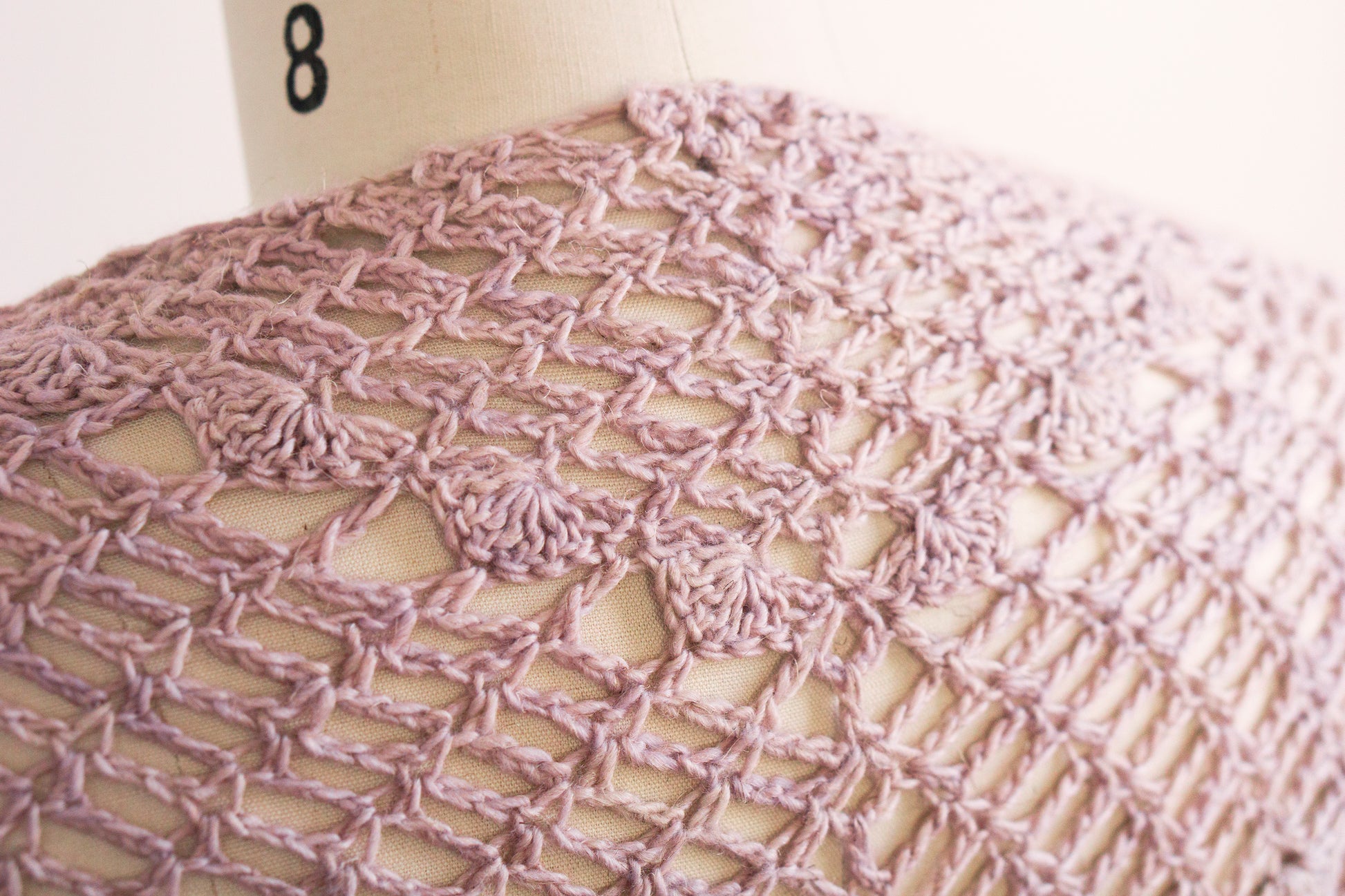 Gauge: Five [sc, ch 3] units and 10 rows = 4”/10cm