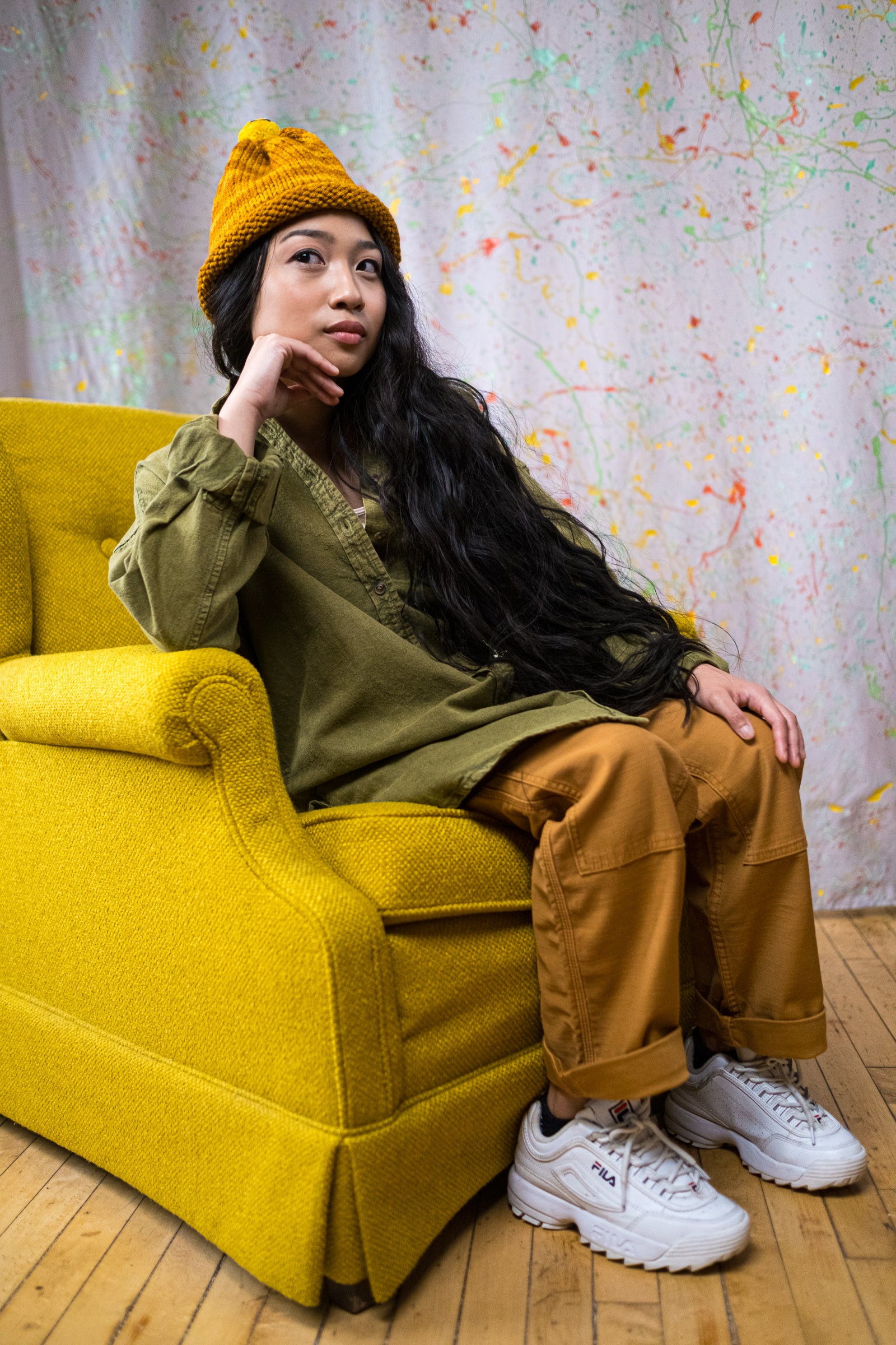 (Optional) For pompom, shown in Maxima, 12 to 15 yds of Daffodil and 12” of Black.