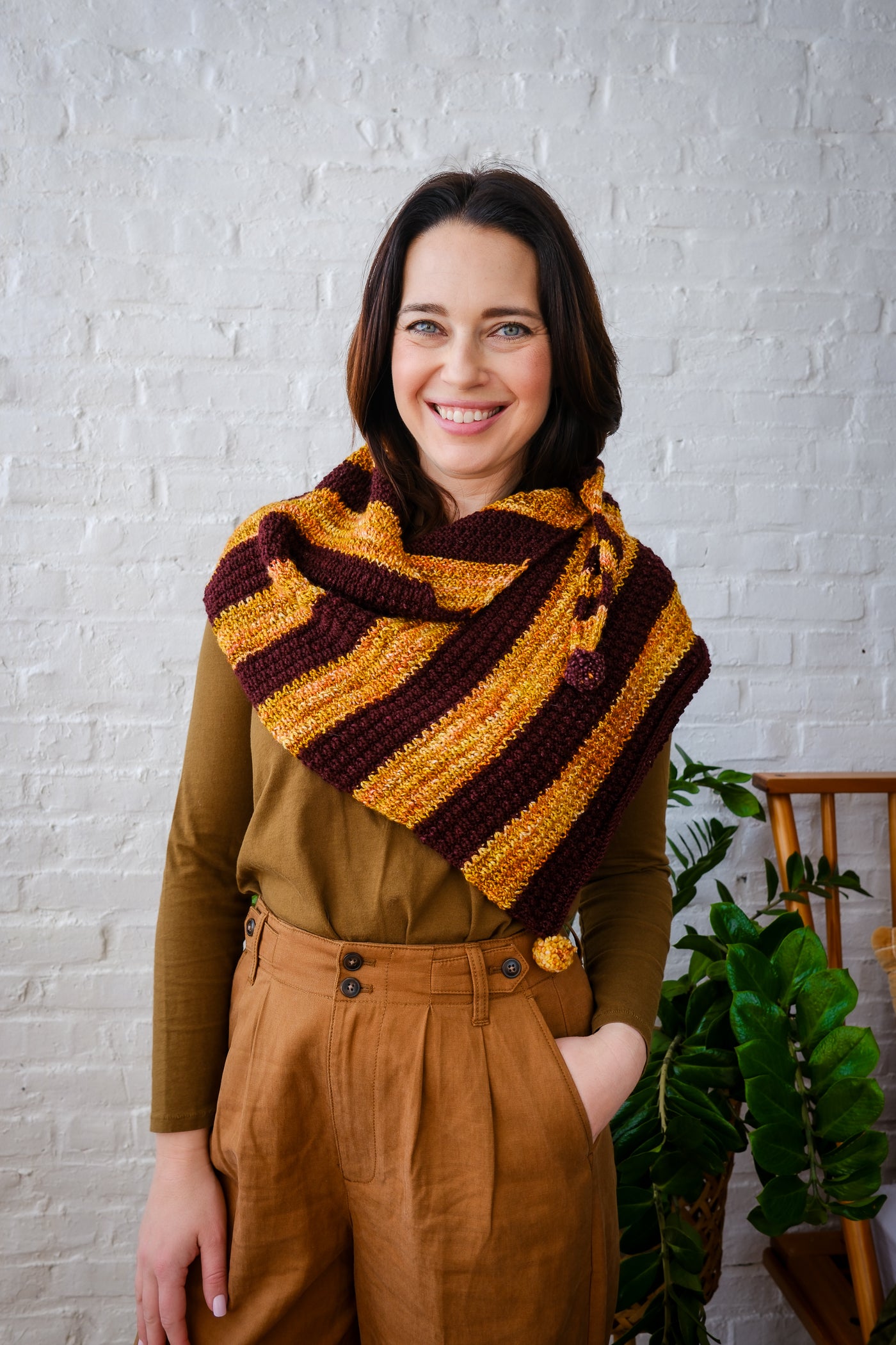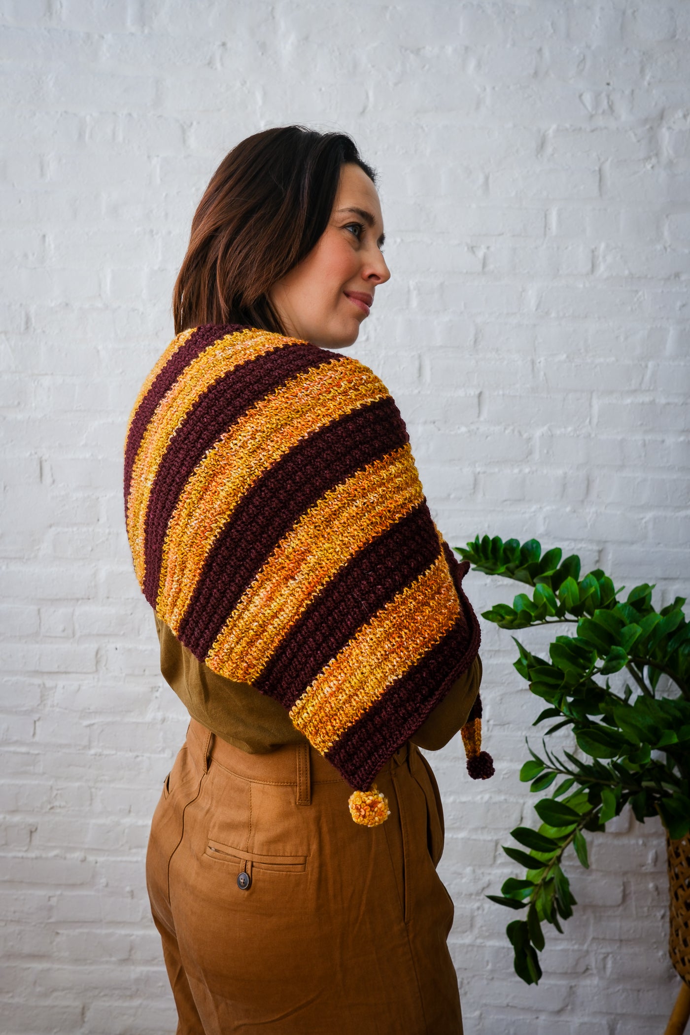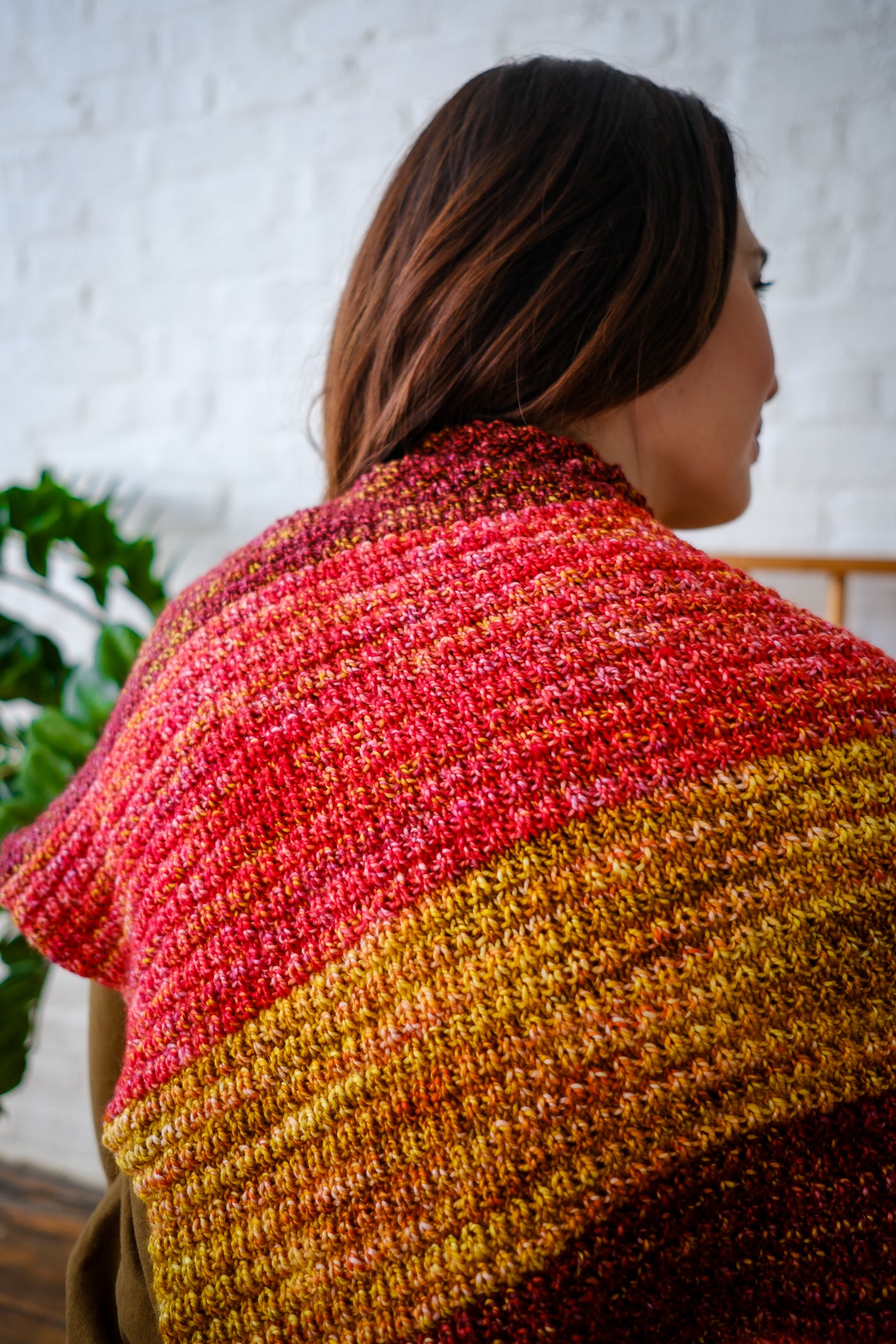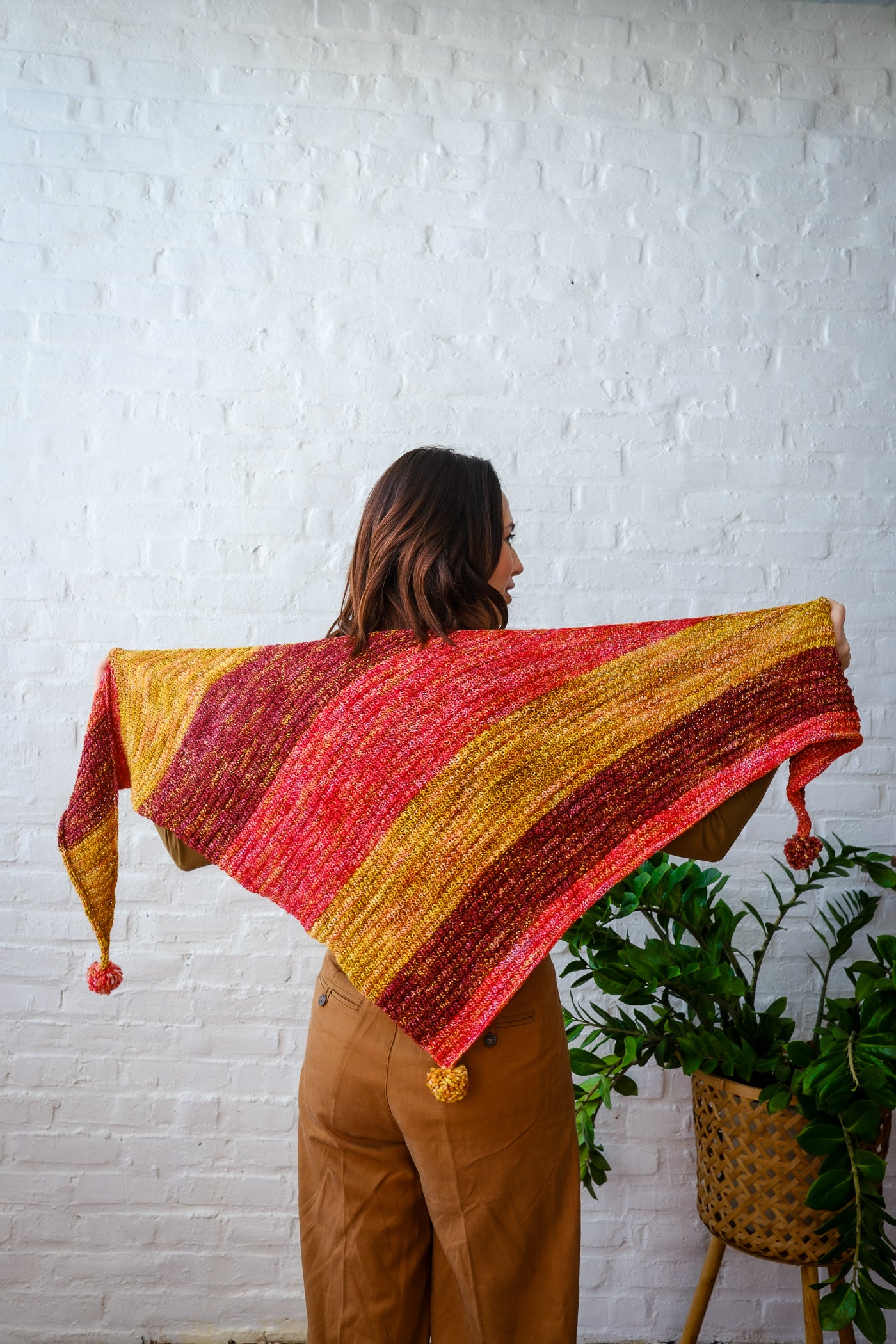Three-skein shawl: 1 sk each of colors A, B, and C Shown in K001 Gold (Marla, A), K101 Spices (Marla, B), and K100 Chili (Marla, C)