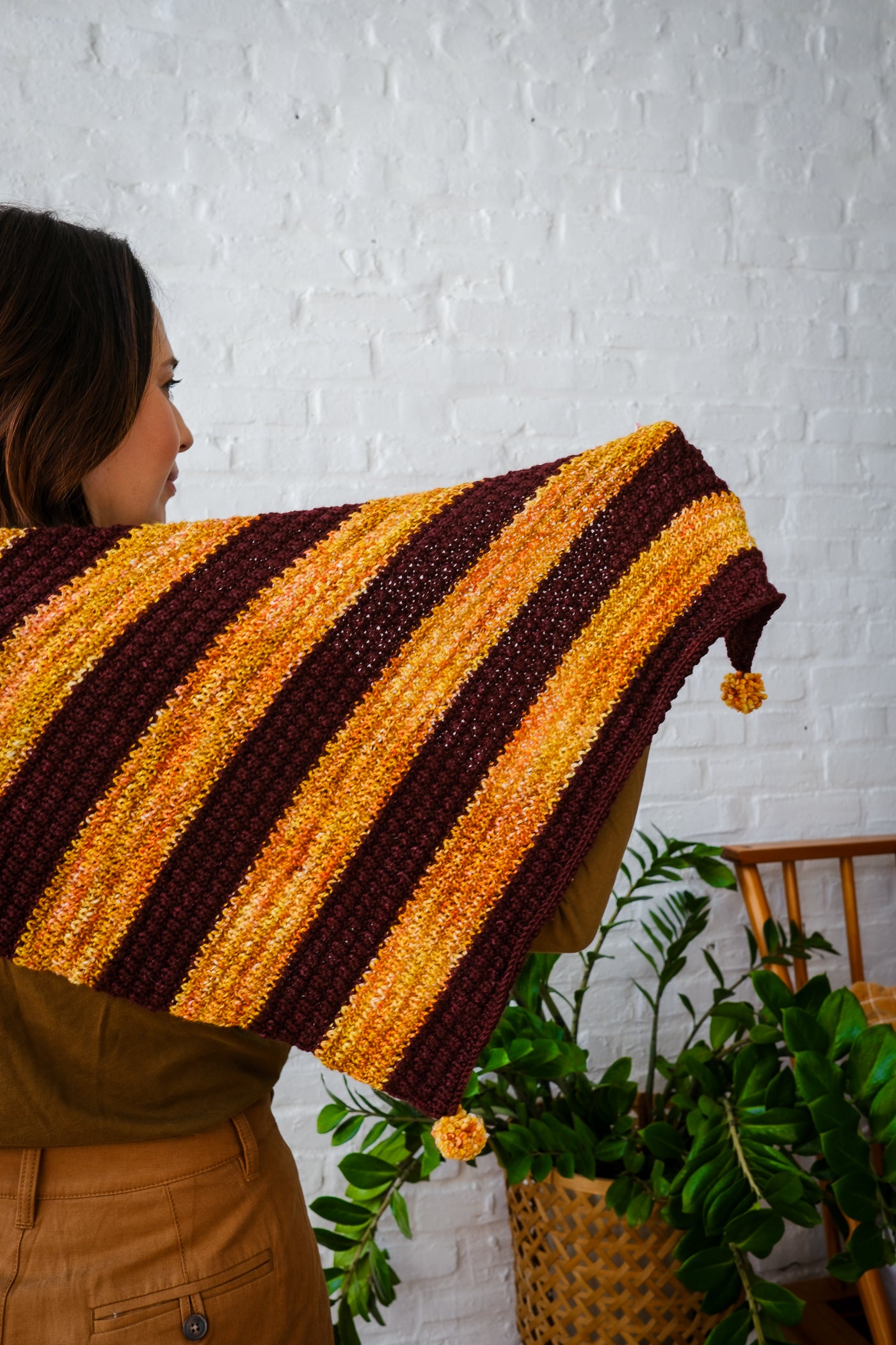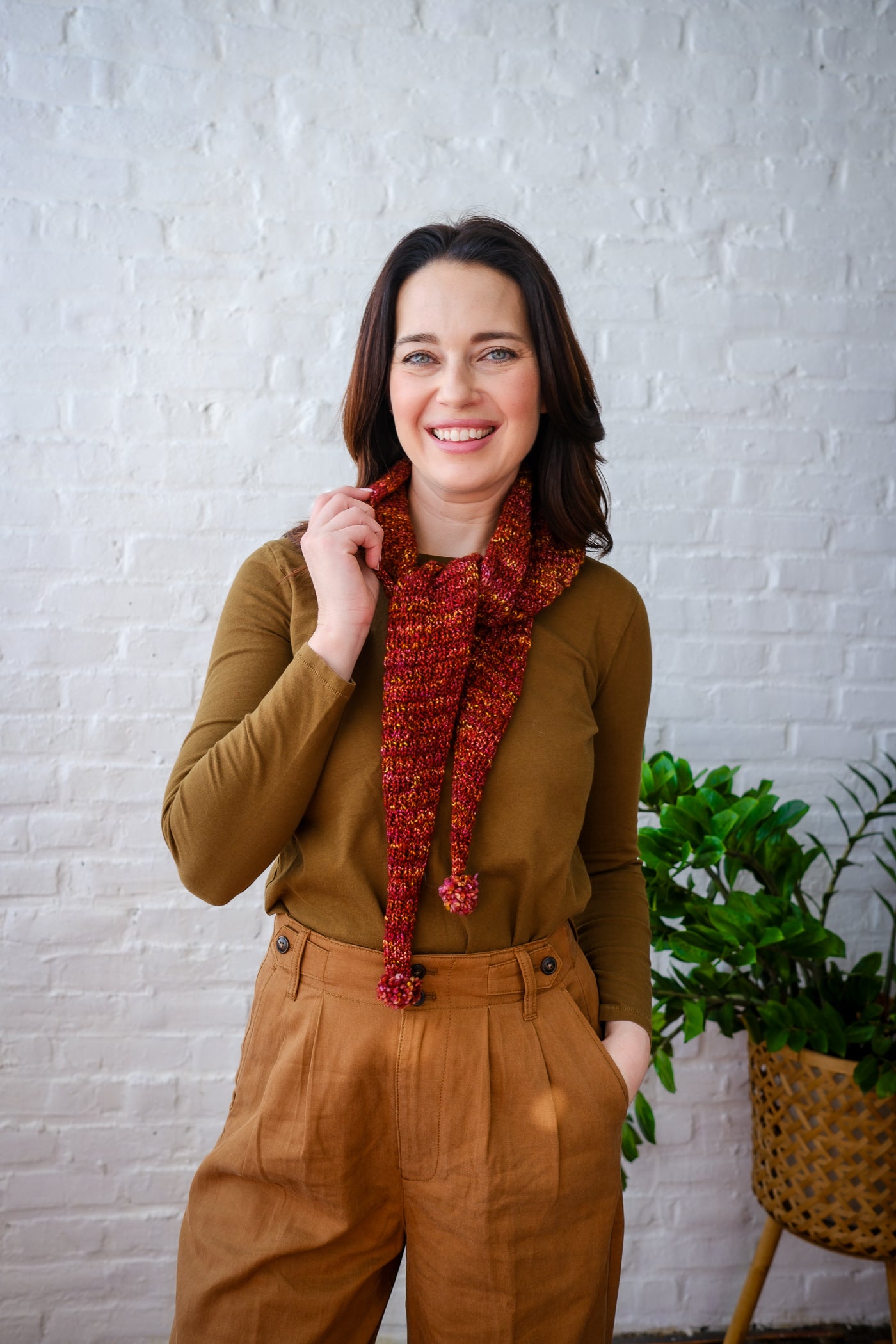This simple neckwear is knit corner-to-corner with self-finished edges and easy texture. Choose 1-, 2-, or 3-skein version in a single color or a combination in Marla and Sami!