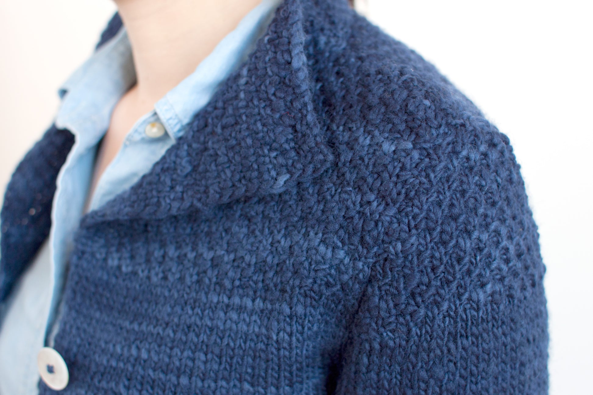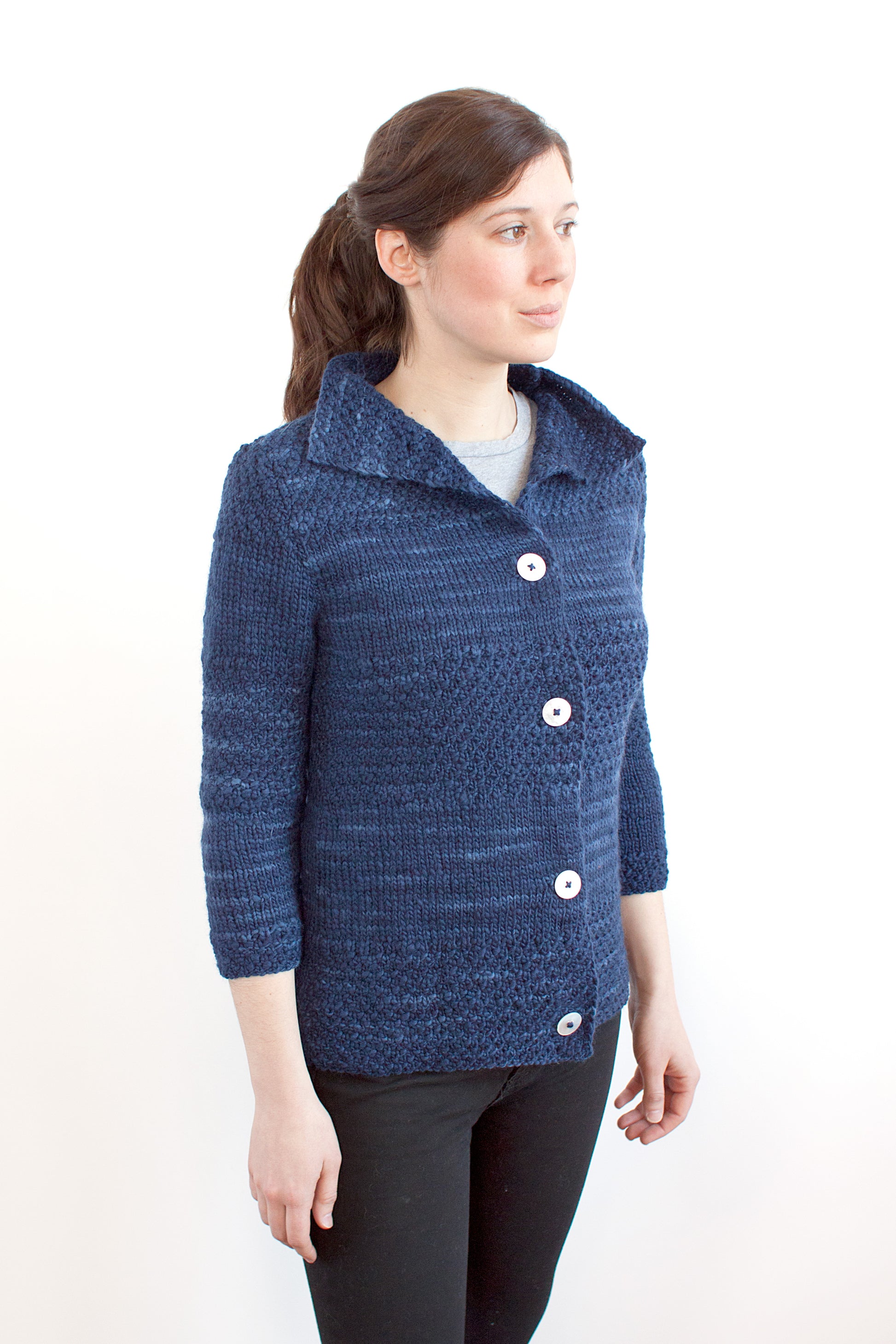 Yarn Requirements: Wool Clásica, shown in 11 Navy (7 (7, 8, 8, 9) sks)