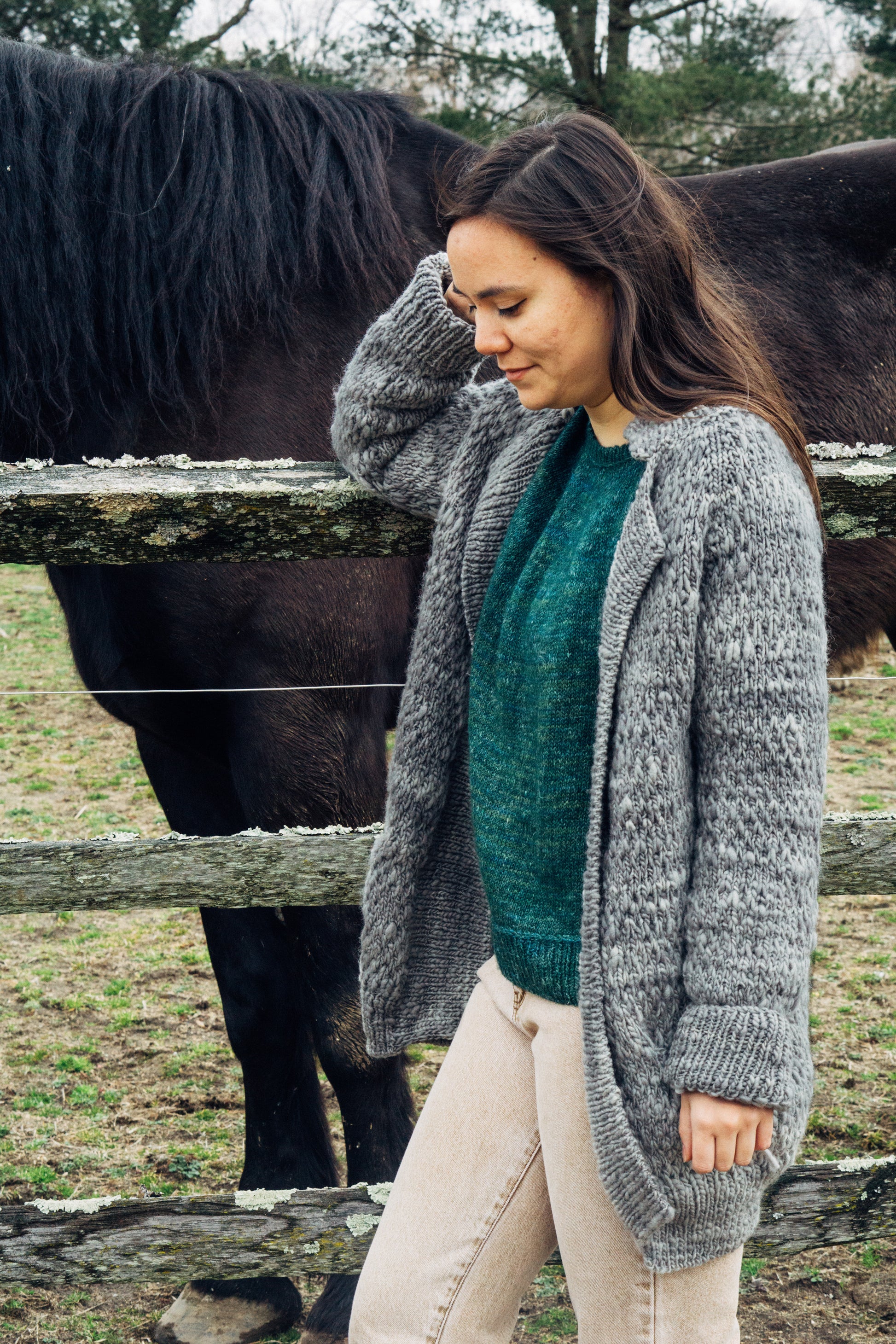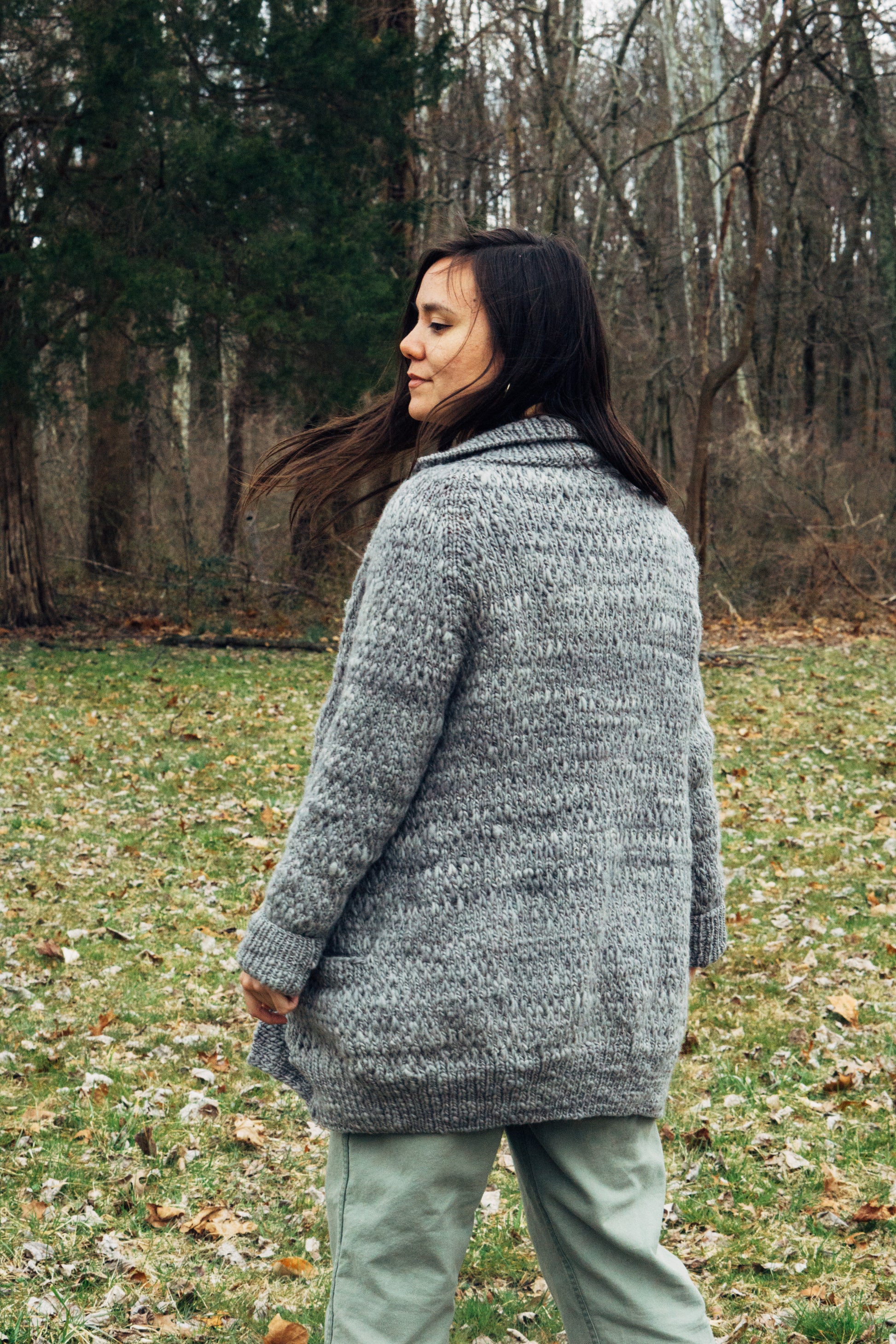 Softness and texture! The Yésica Coat is knitted top-down with raglan sleeves, an open-front construction, and large cozy pockets. An interesting twist, the lapels gives the coat a polished look. The Coat has an easy-to-memorize stitch pattern that creates a beautiful textured fabric, which is enhanced by the handspun thick-and-thin nature of Manos Wool Clásica!