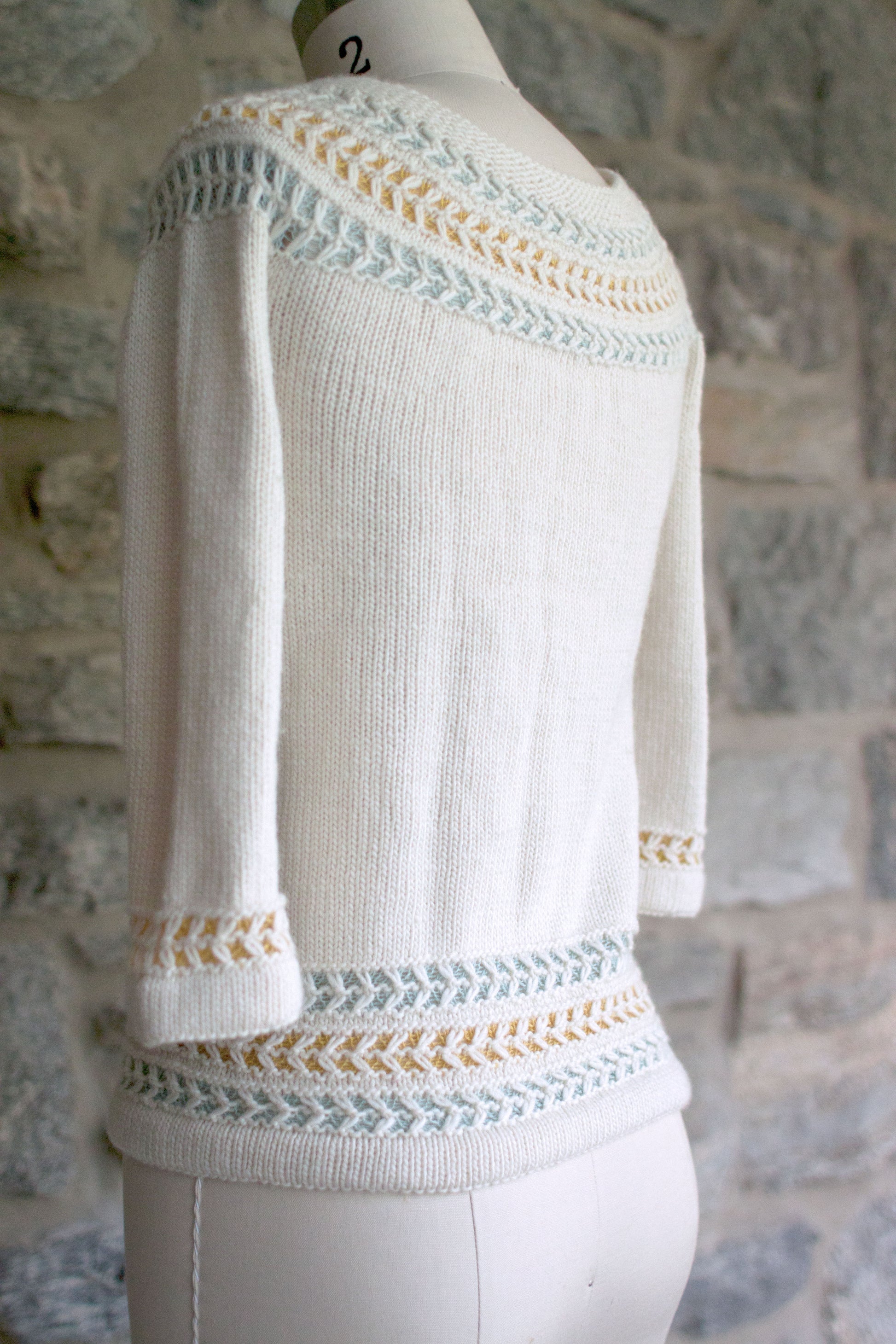 Finished Size: Finished bust circumference: 31¾ (35½, 39¼, 43, 46¼, 50¼)”