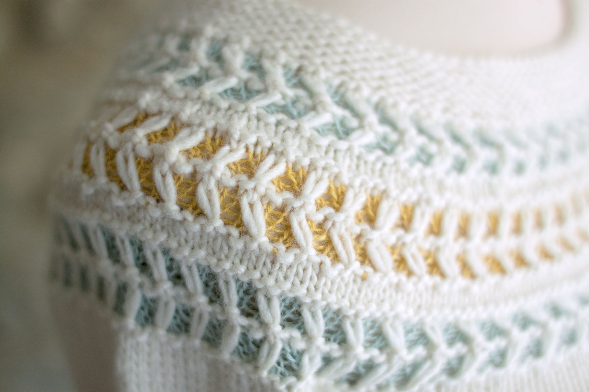 Yarn Requirements: Silk Blend, shown in 3014 Natural (6 (7, 8, 9, 9, 10) sk)