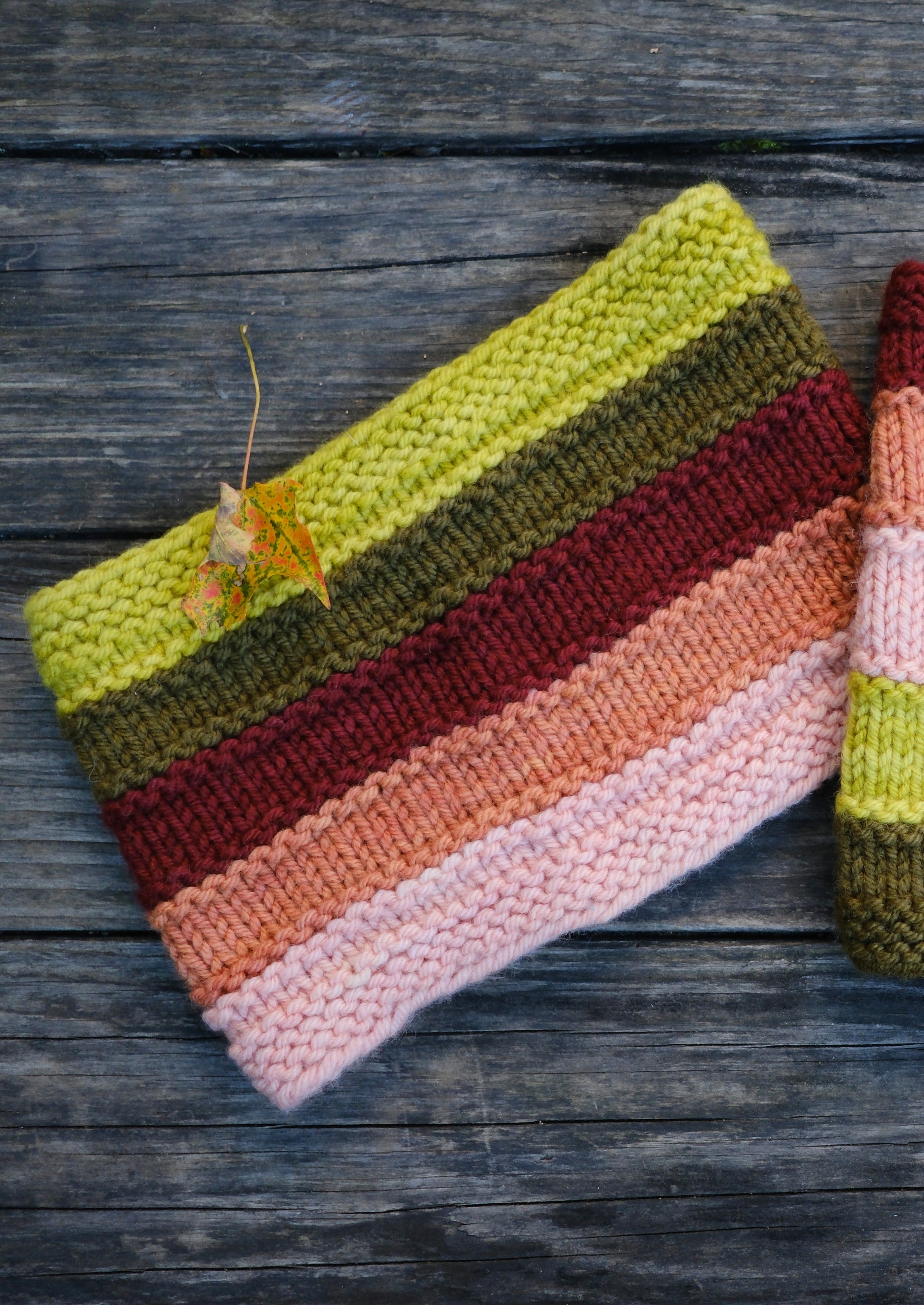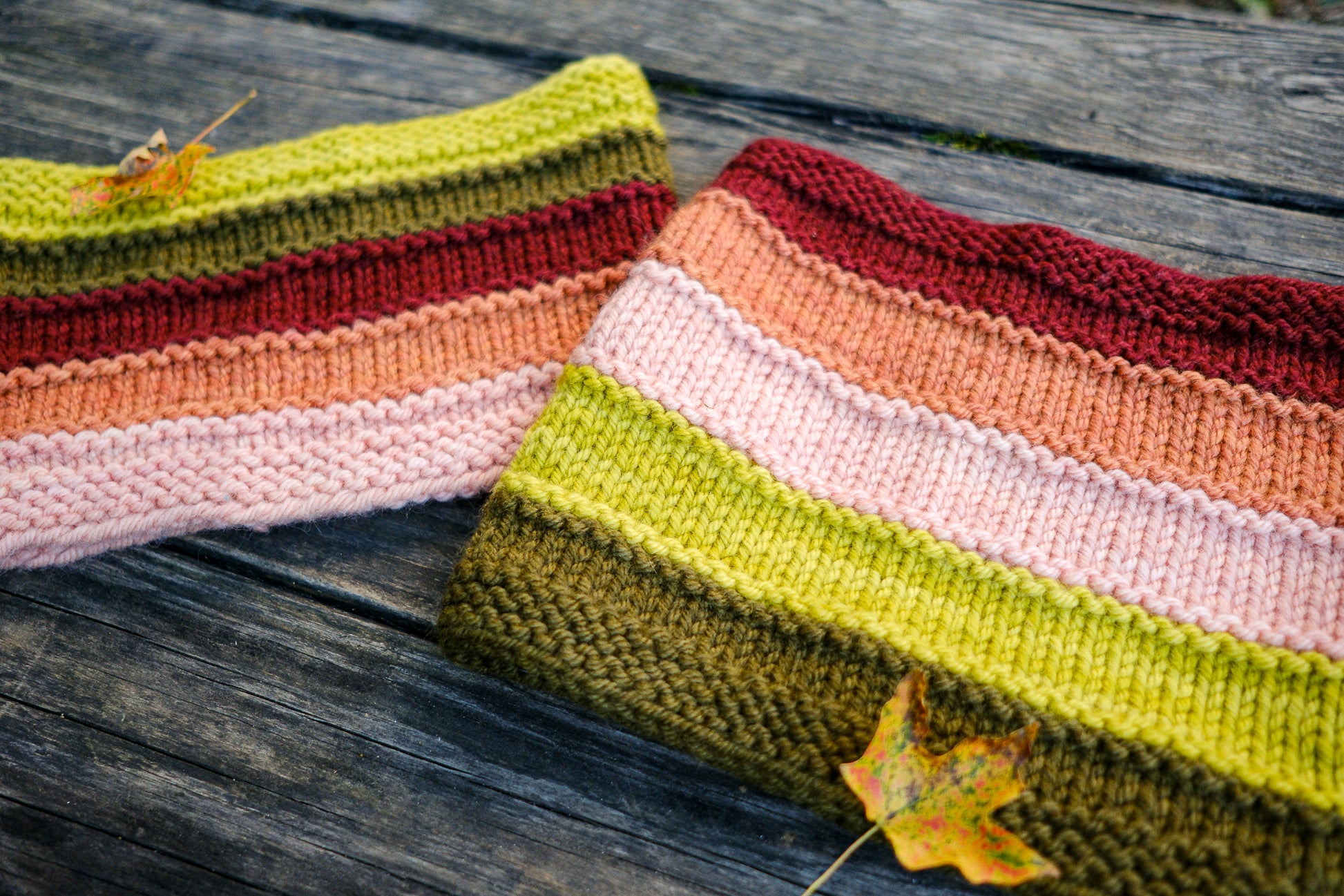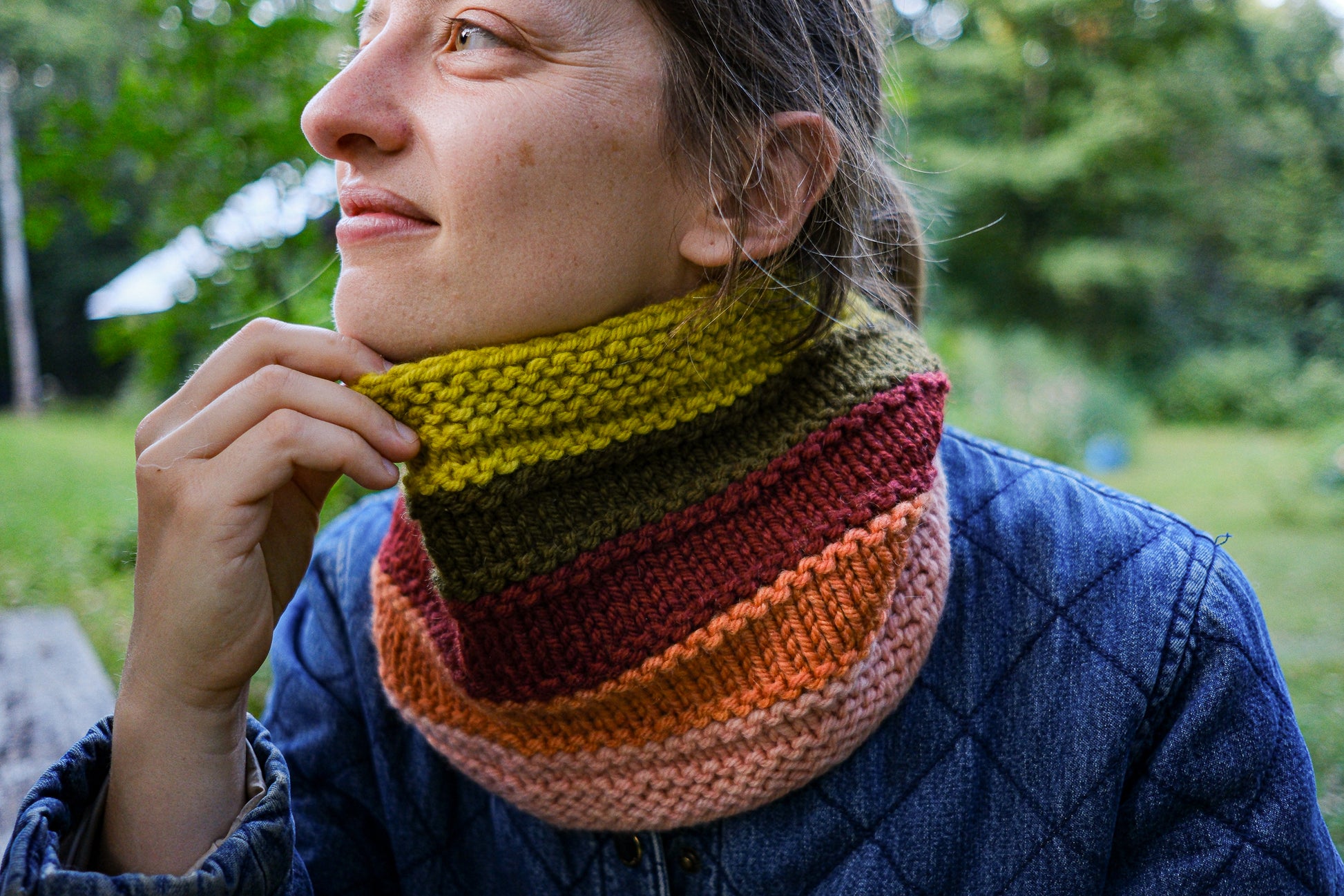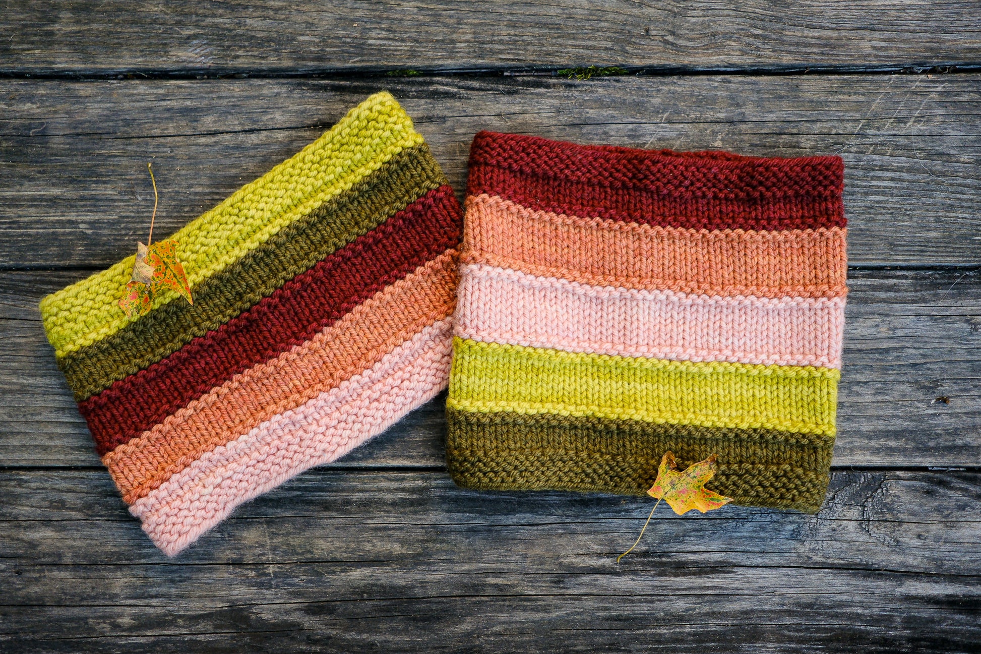 The Clems Run Cowl: a chance to knit 2 cowls from 5 beautiful colors of Cardo! It comes in two different sizes (one is shorter and wider, the other is taller and narrower); and, you can make both while playing with color sequence.