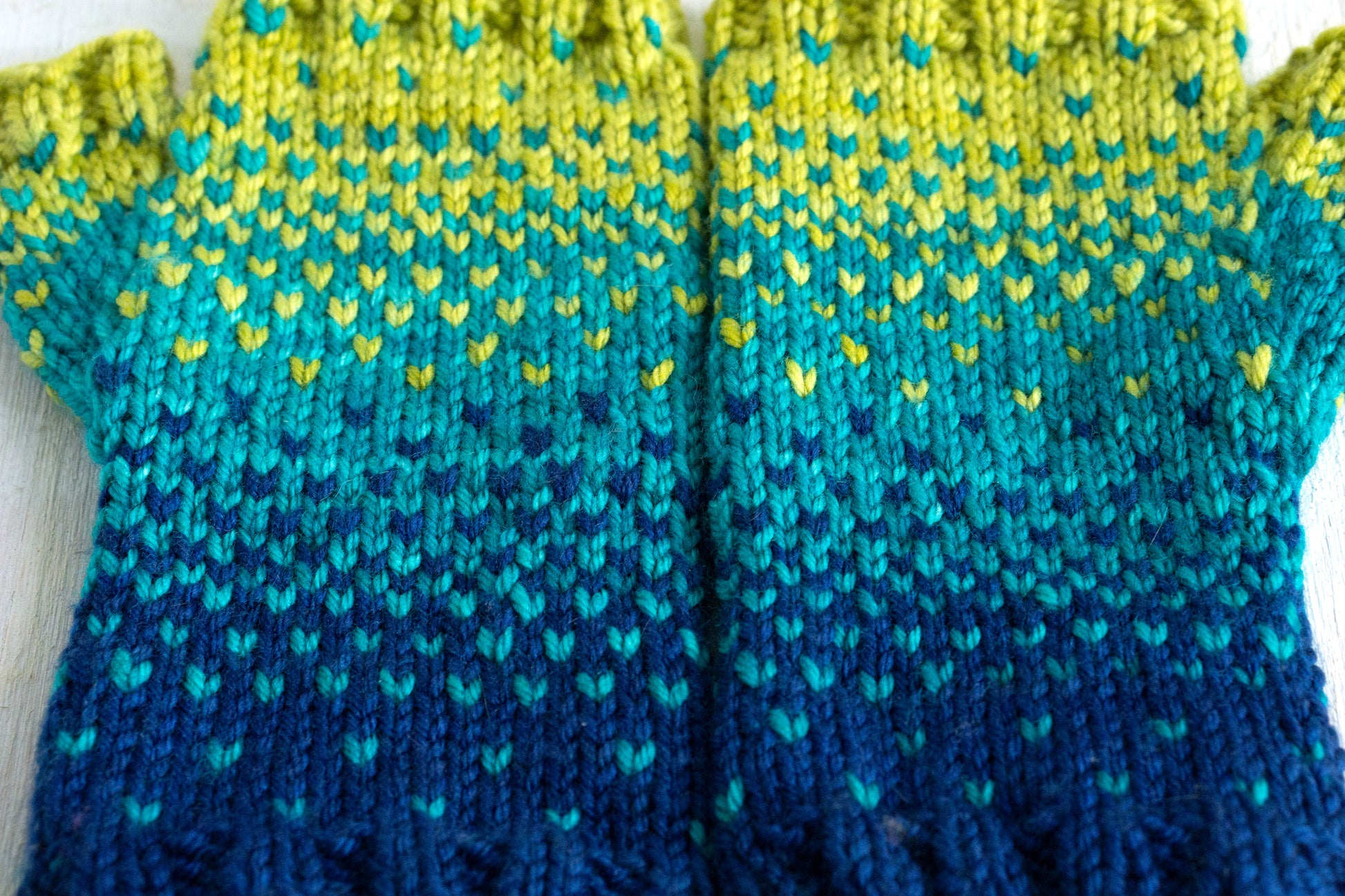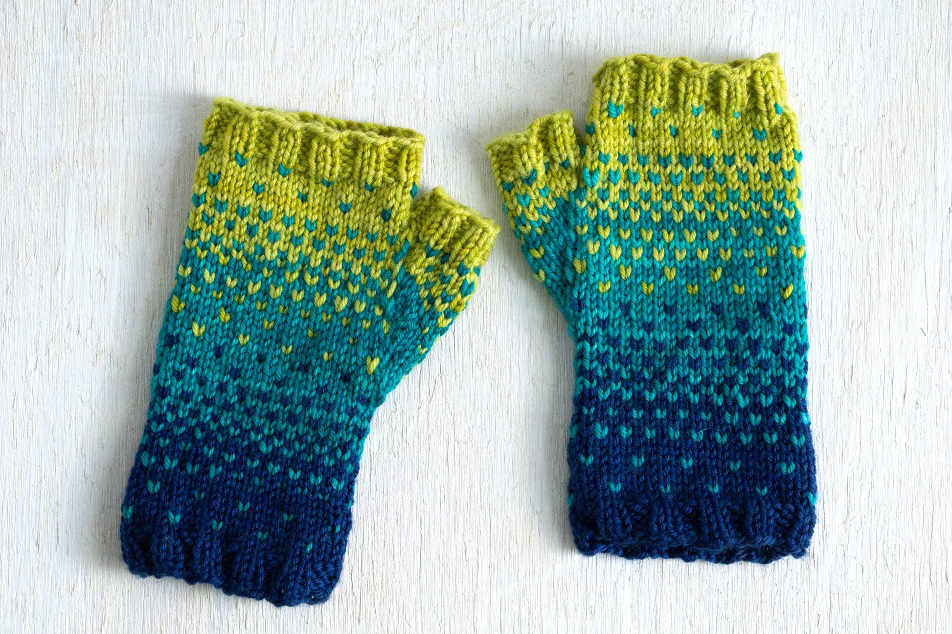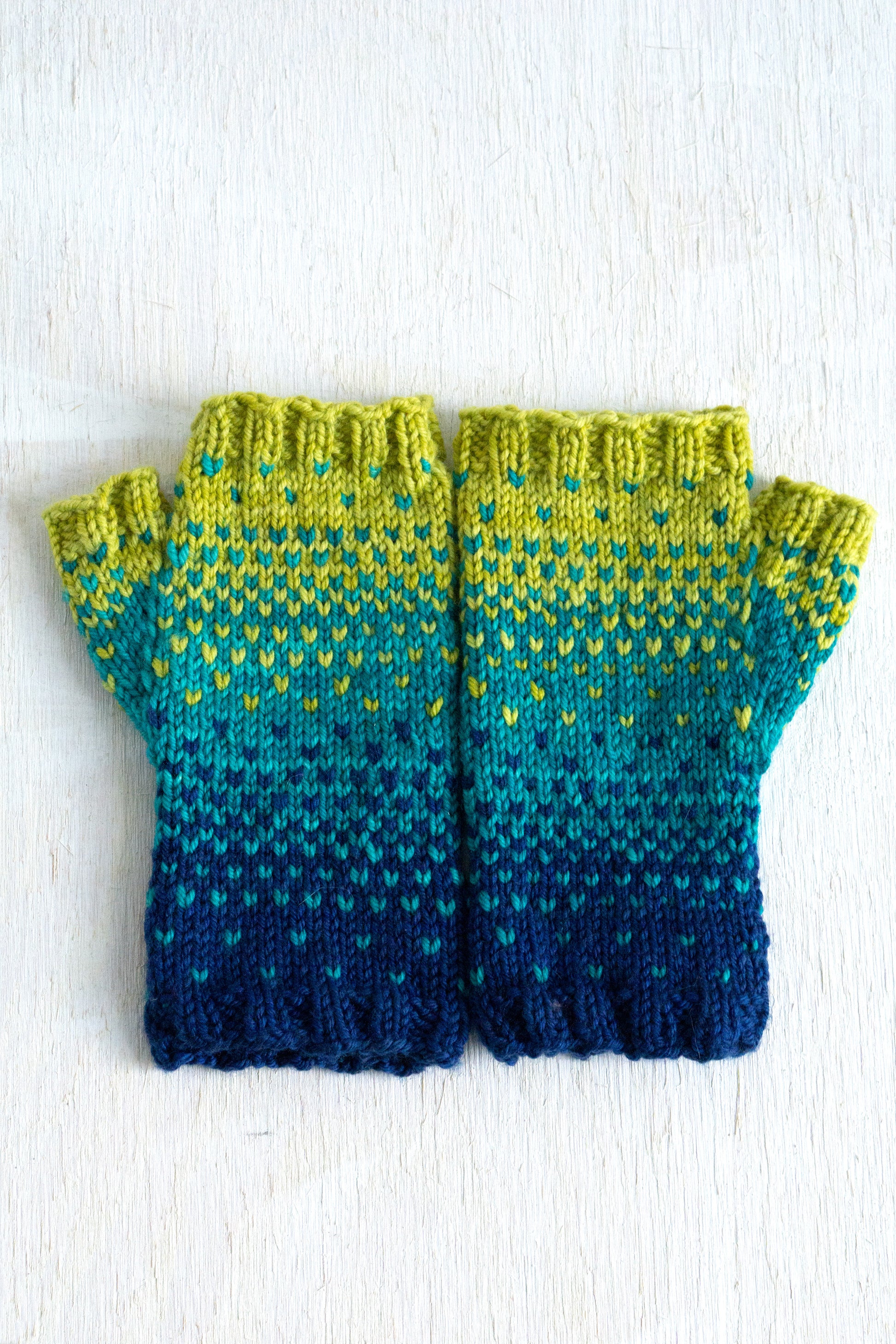 When your heart says "Spring" but the thermometer says "ugh", turn to these cute little mitts. They knit up quickly with 3 Alegria Grande Bocados, with frequent color changes to keep you entertained. When they're done, you'll have warm hands and a cheerful reminder of warmer days ahead.