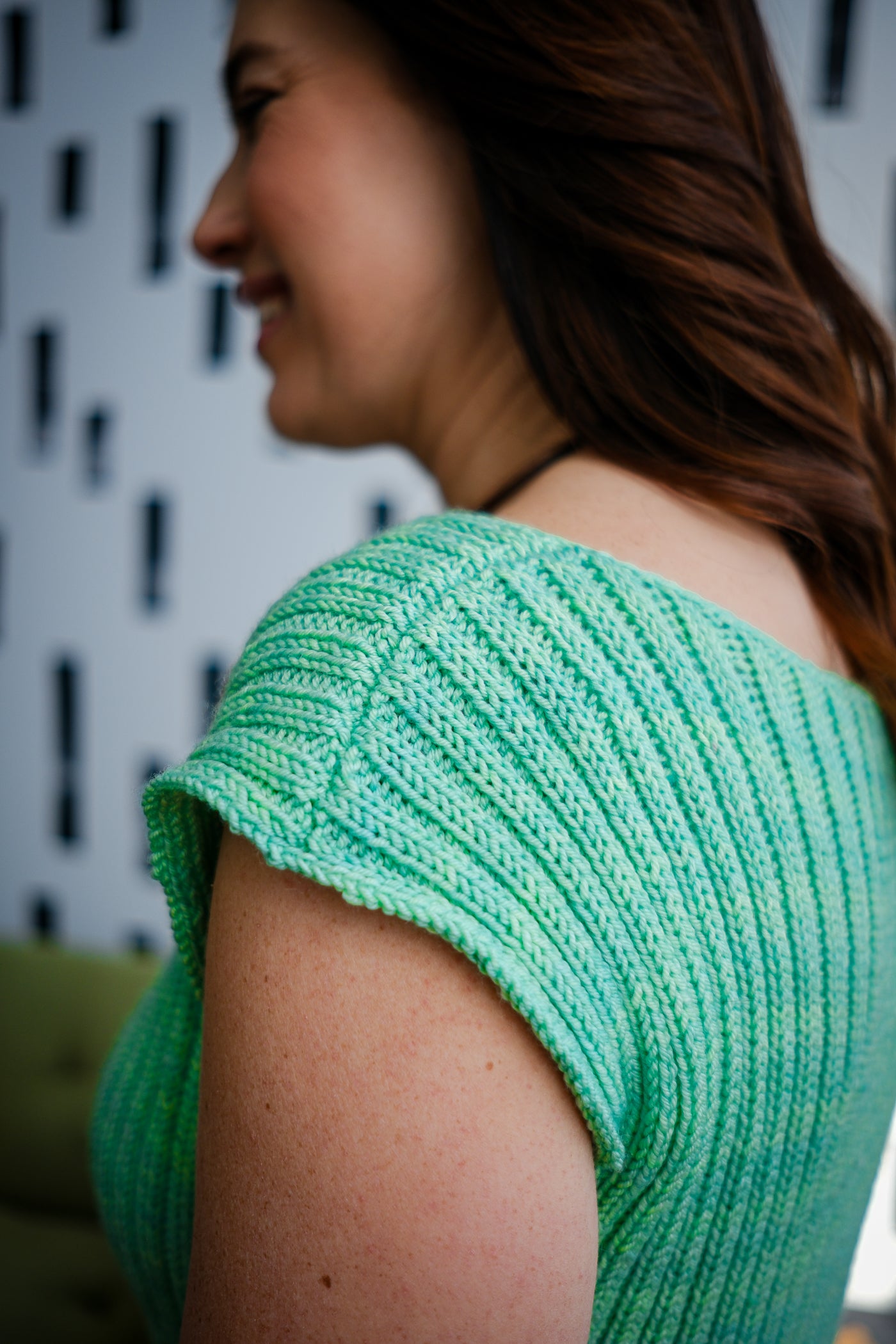 Knit at a looser gauge, the Feliz Popover is a relaxed, ribbed tee in our sportweight merino-modal blend, Feliz! The Feliz Popover is knit in one of our of new-for-Spring colors: Pistaccio.