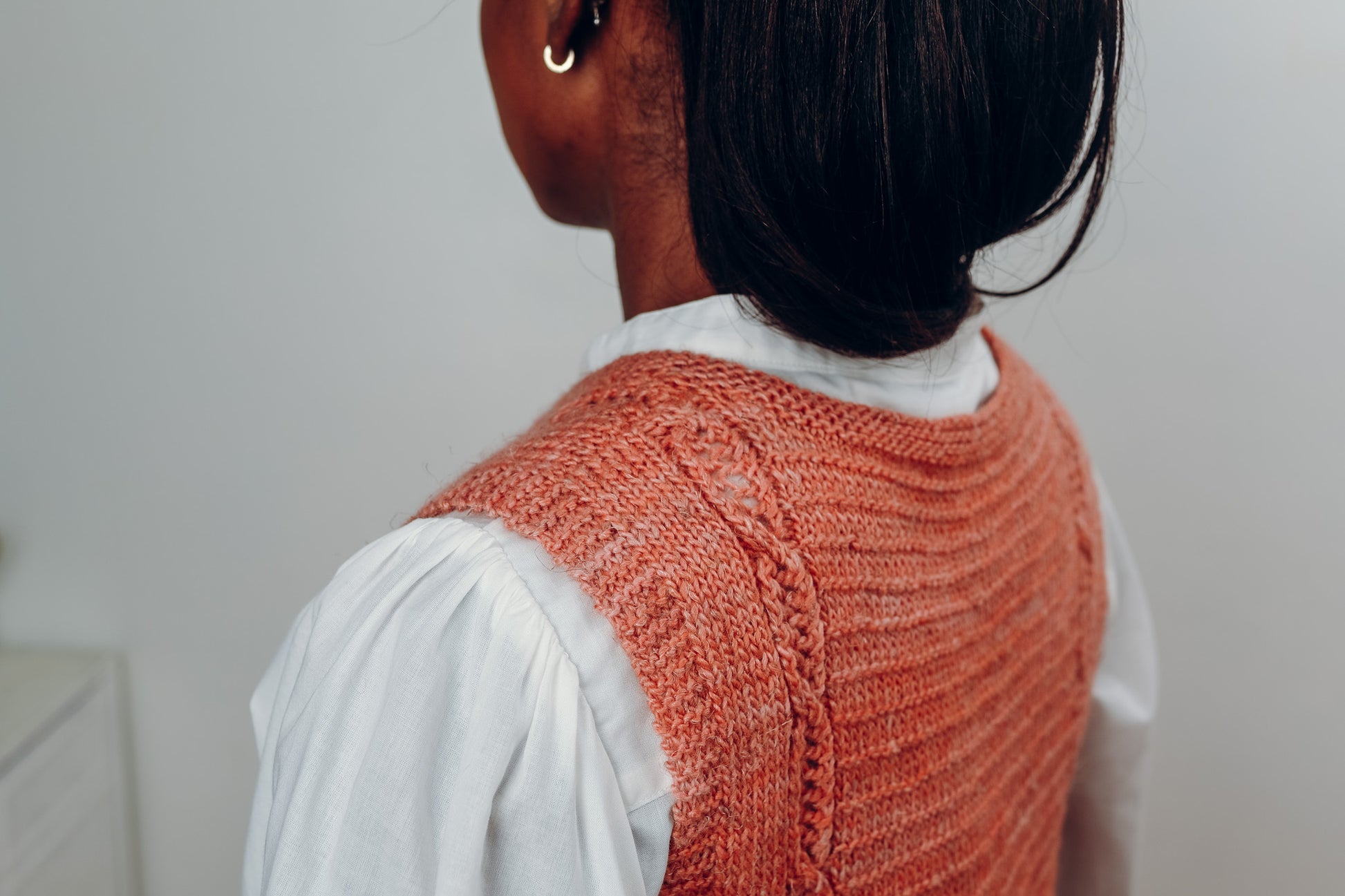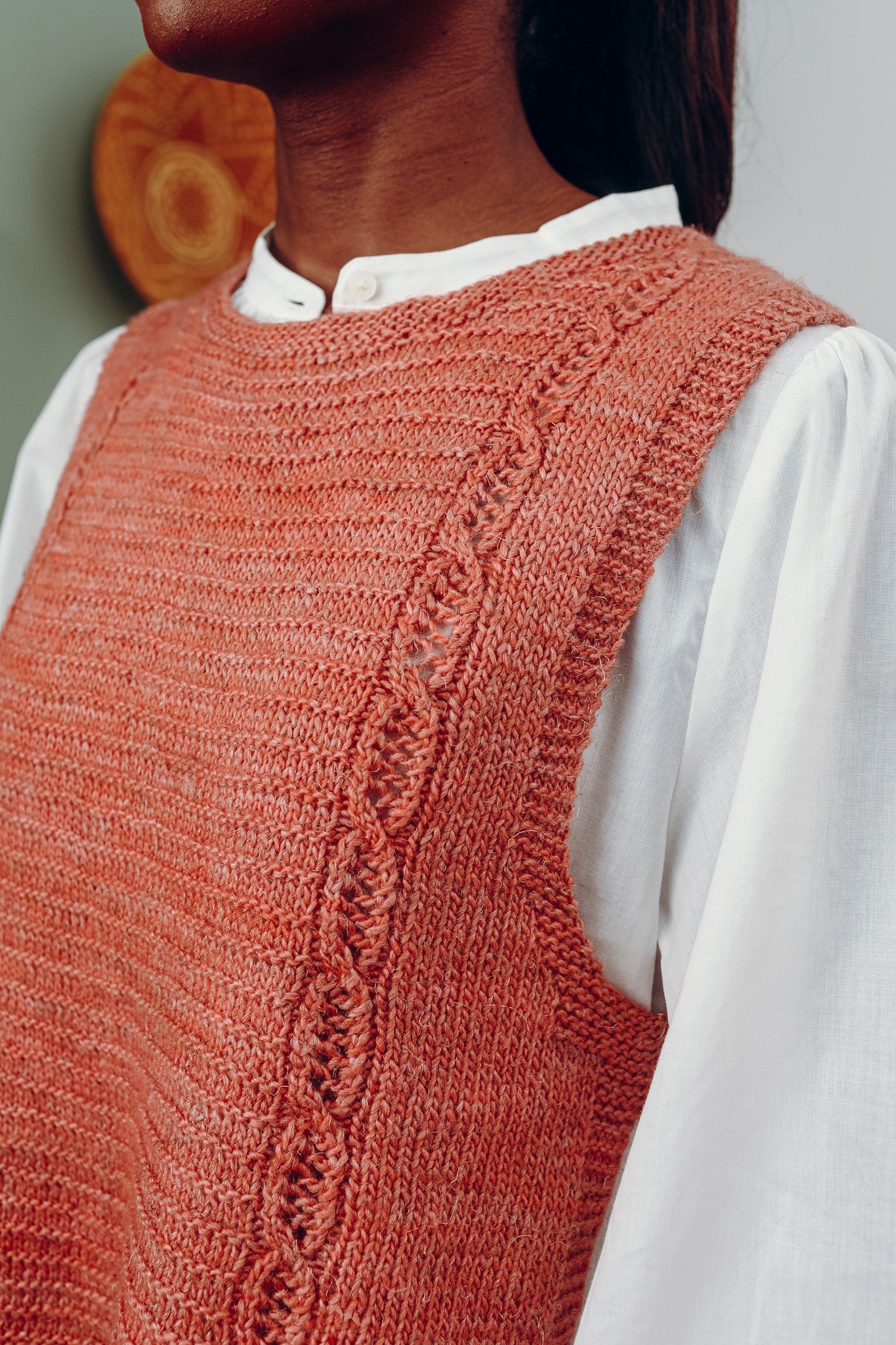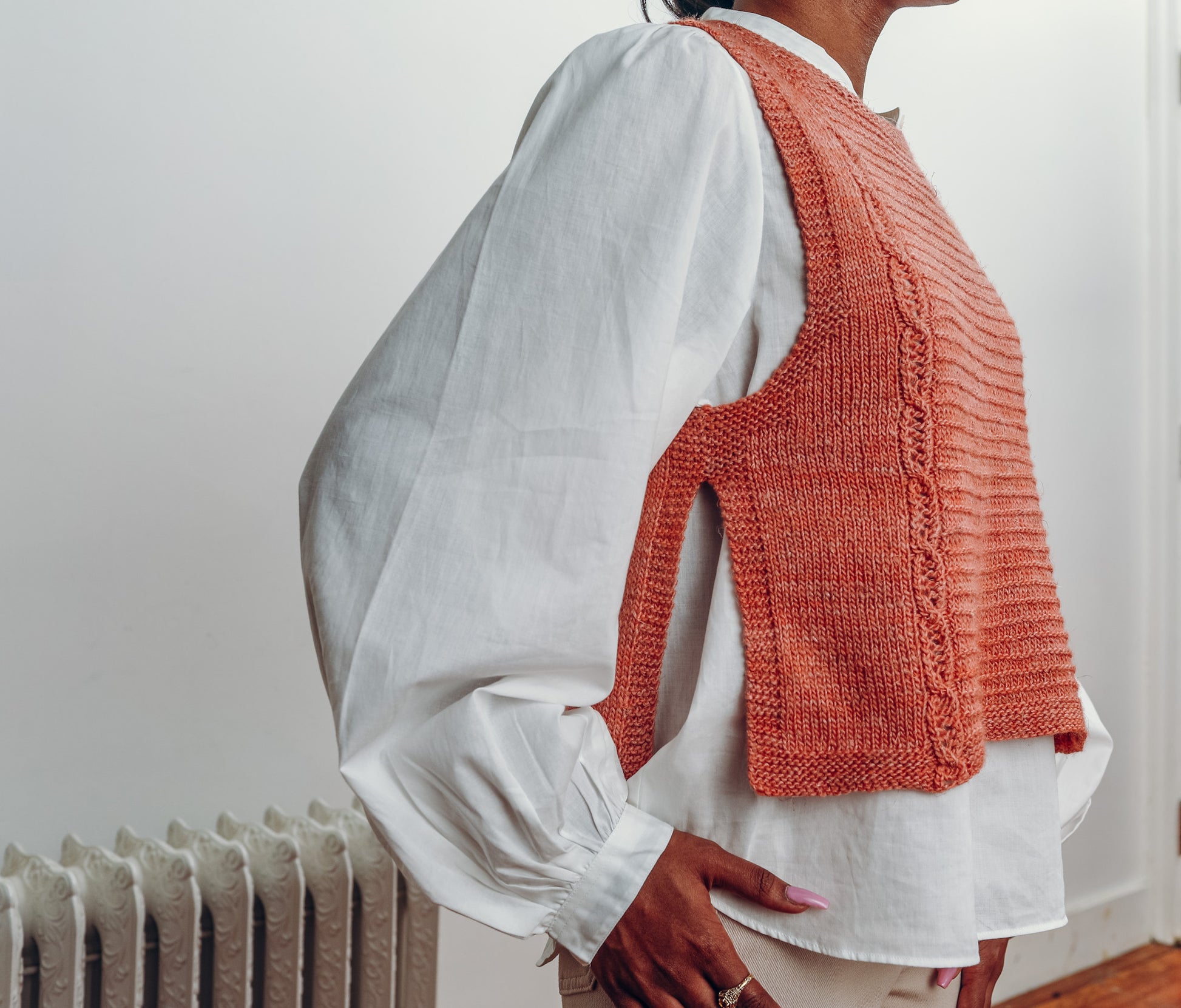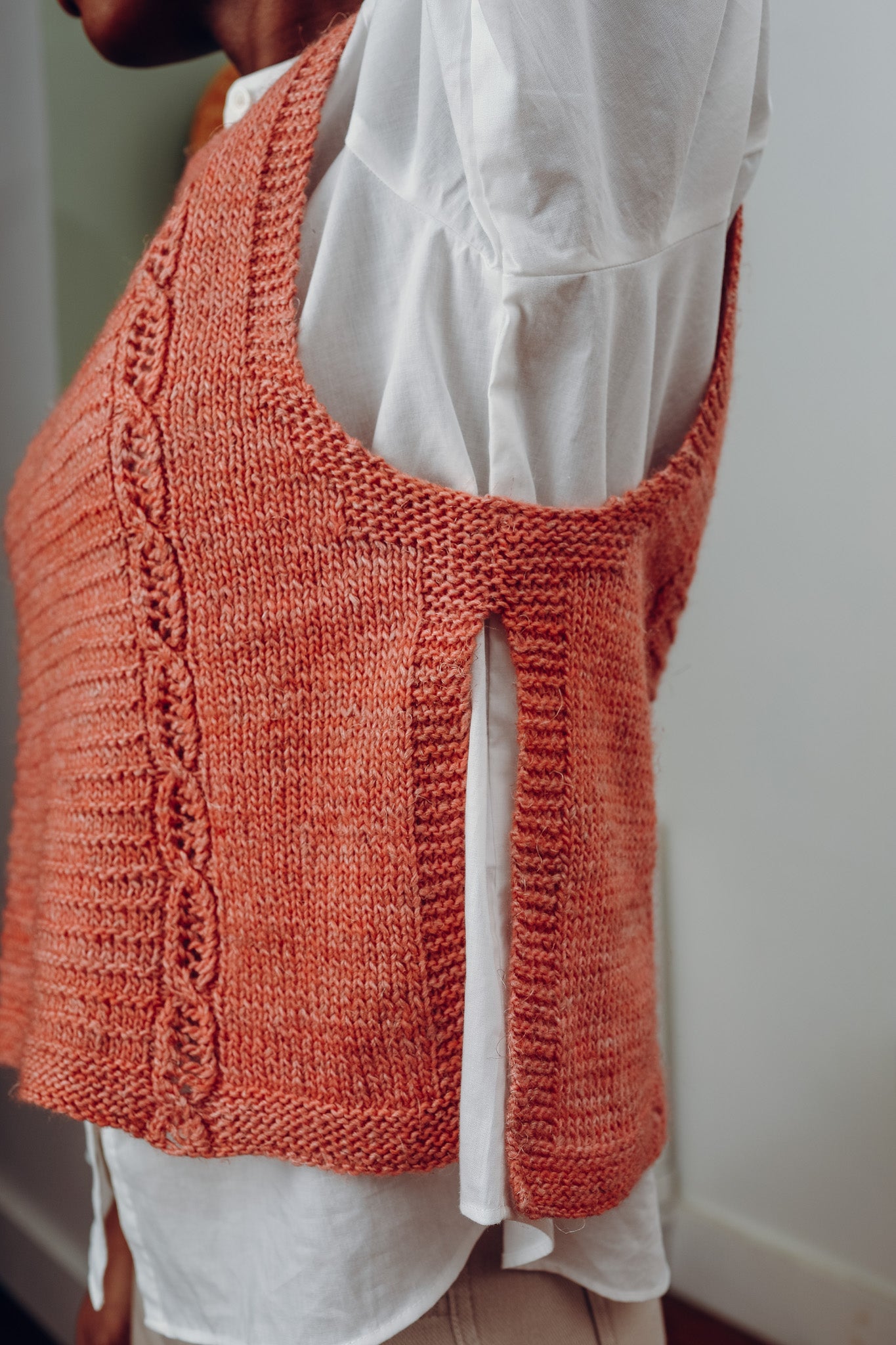 A versatile vest adapts to your wardrobe. Leave the side seams open for transitional layering over of-the-moment full blouses and dresses or close them up for a more traditional garment.
