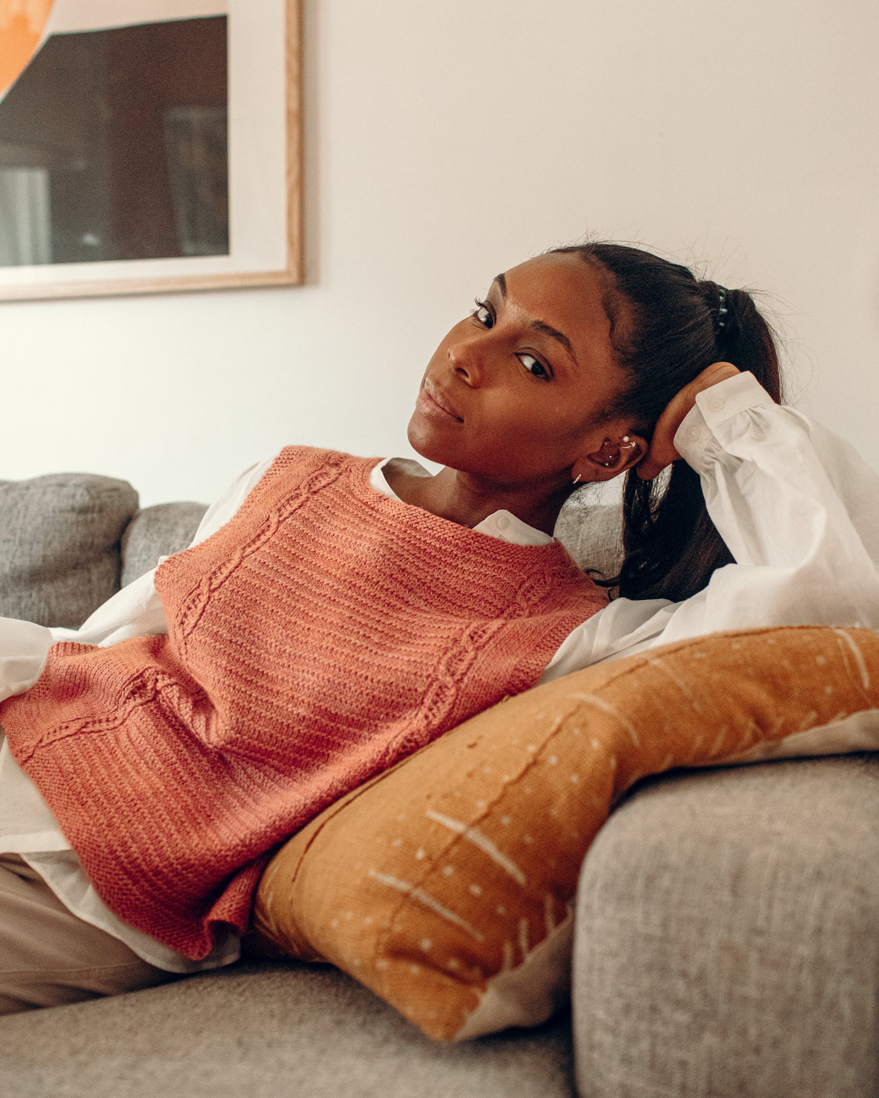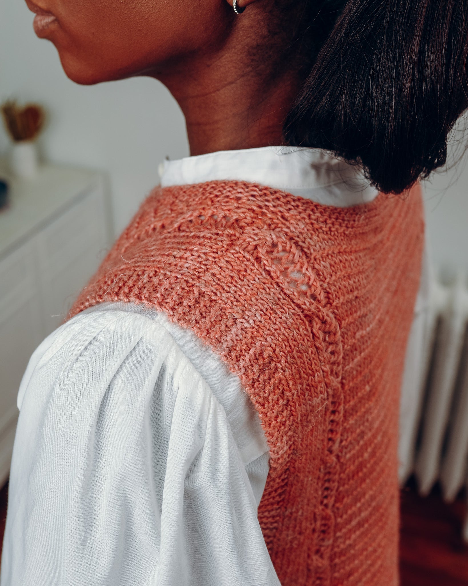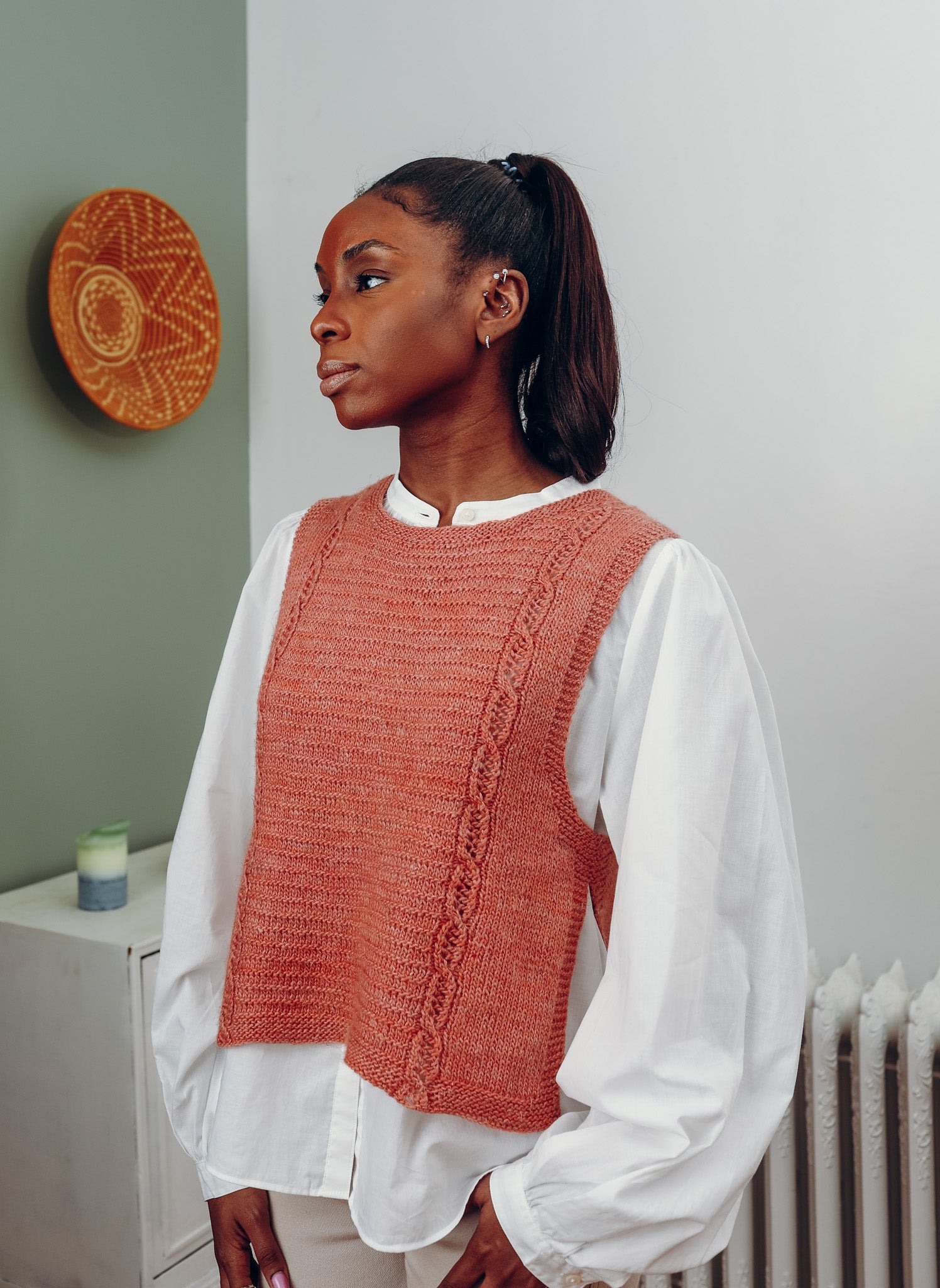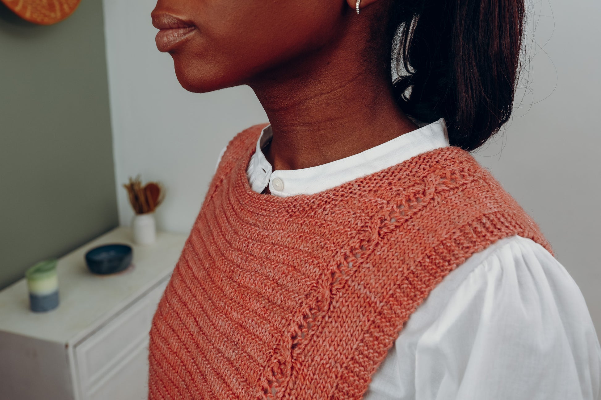 A versatile vest adapts to your wardrobe. Leave the side seams open for transitional layering over of-the-moment full blouses and dresses or close them up for a more traditional garment.