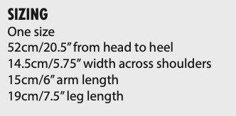 Lucy’s head, body and limbs are knit in one piece from the top down. Her hair and two small pony tails are knitted separately and sewn on. The use of raglan shaping makes Lucy’s arms slightly lifted and open, as though she’s always offering a hug.