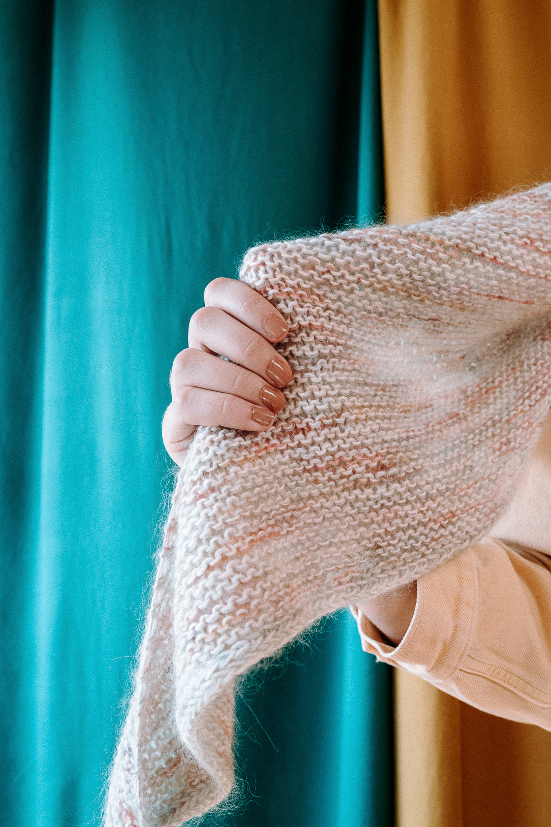 Meadowgrass is knit in one piece with alternating stripes of Cabrito. Striping the Cabrito blends the two colors to get a gorgeous watercolor effect. It's a stunning look that you'll want explore by knitting more than one Meadowgrass!