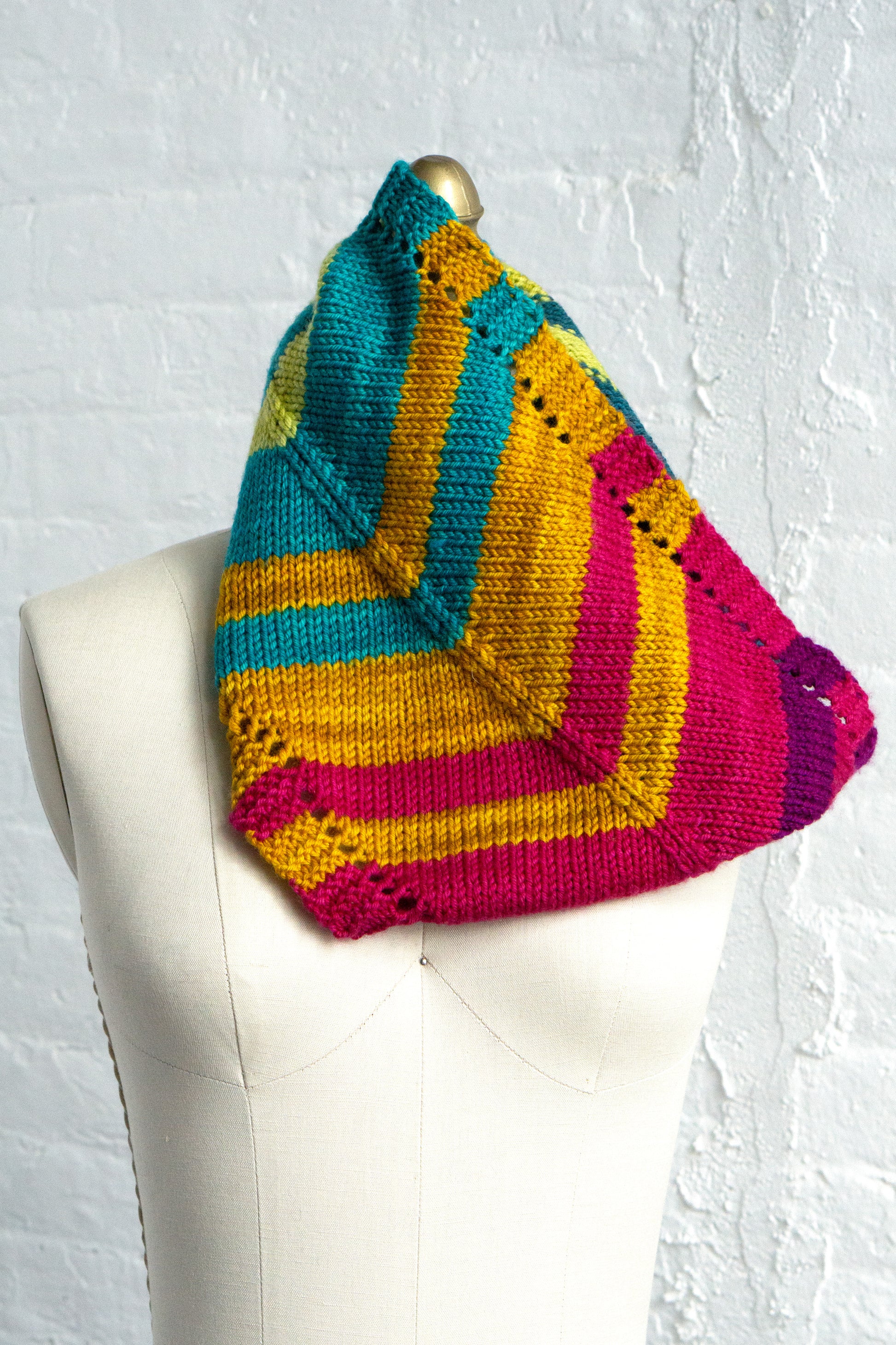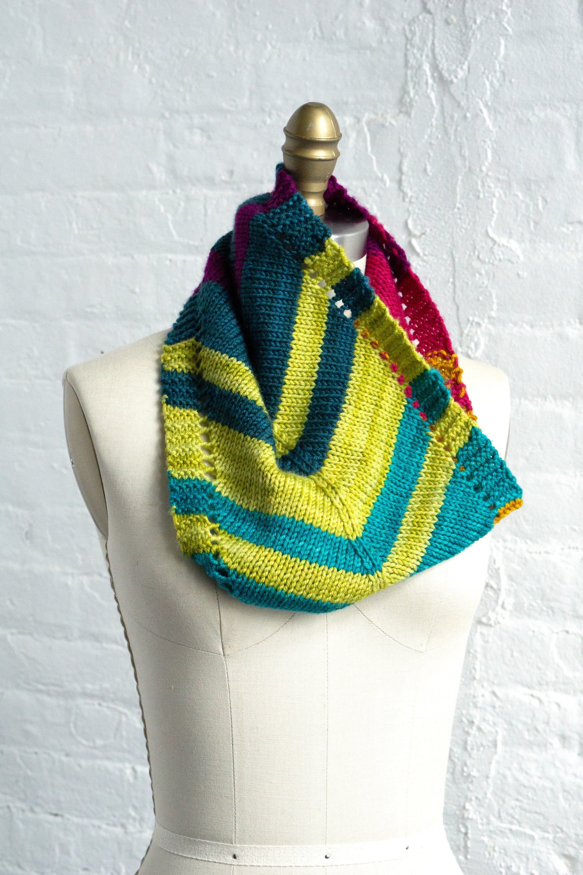 Everyone knows the Road of Life is neither a straight line nor a simple arc. It zigs and zags, it swerves and meanders. Sometimes all that keeps us going is wanting to see the next color coming around the bend. For times like that (or anytime you need a quick and cheerful project), we recommend this Rainbow Road cowl.