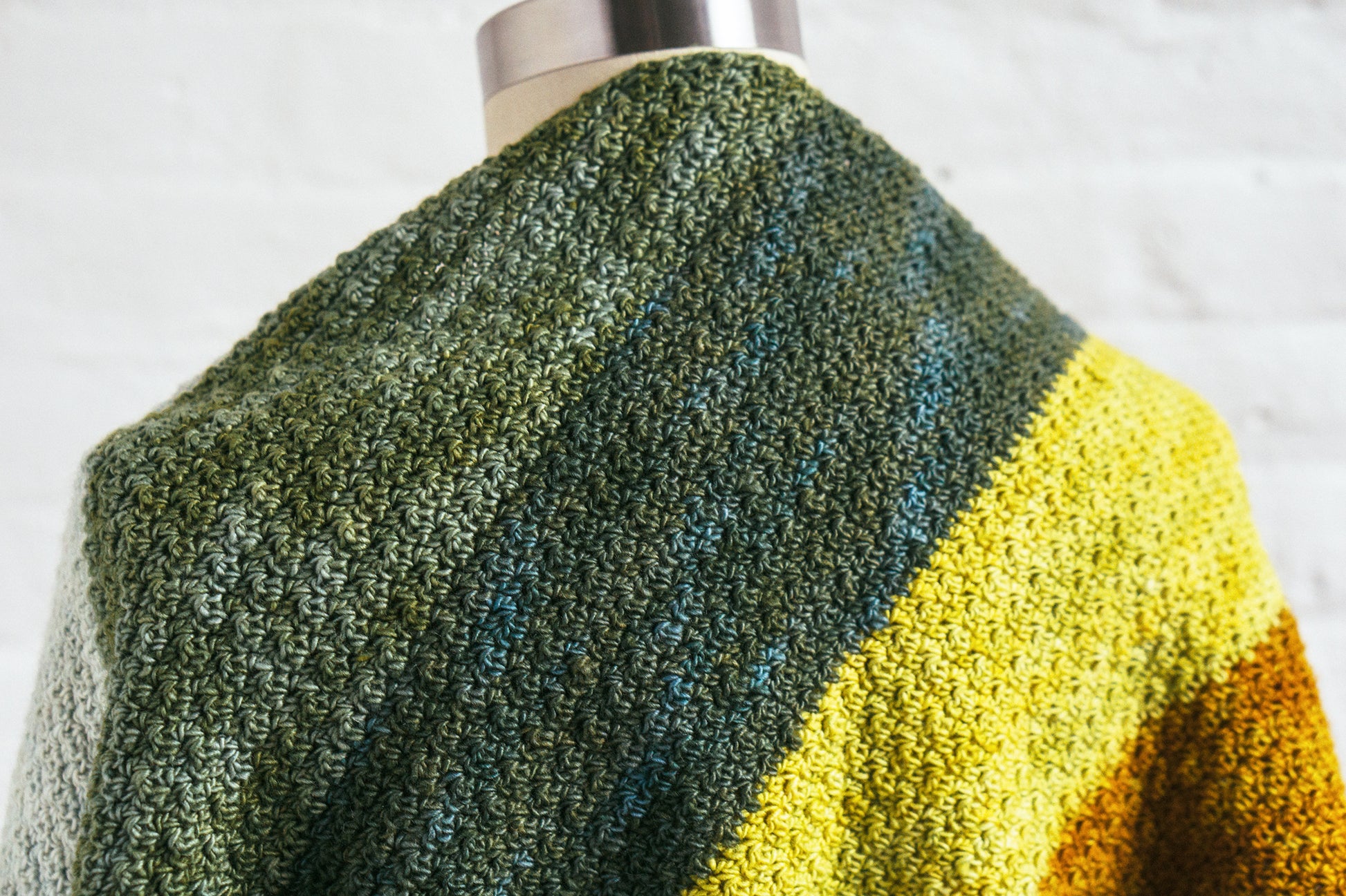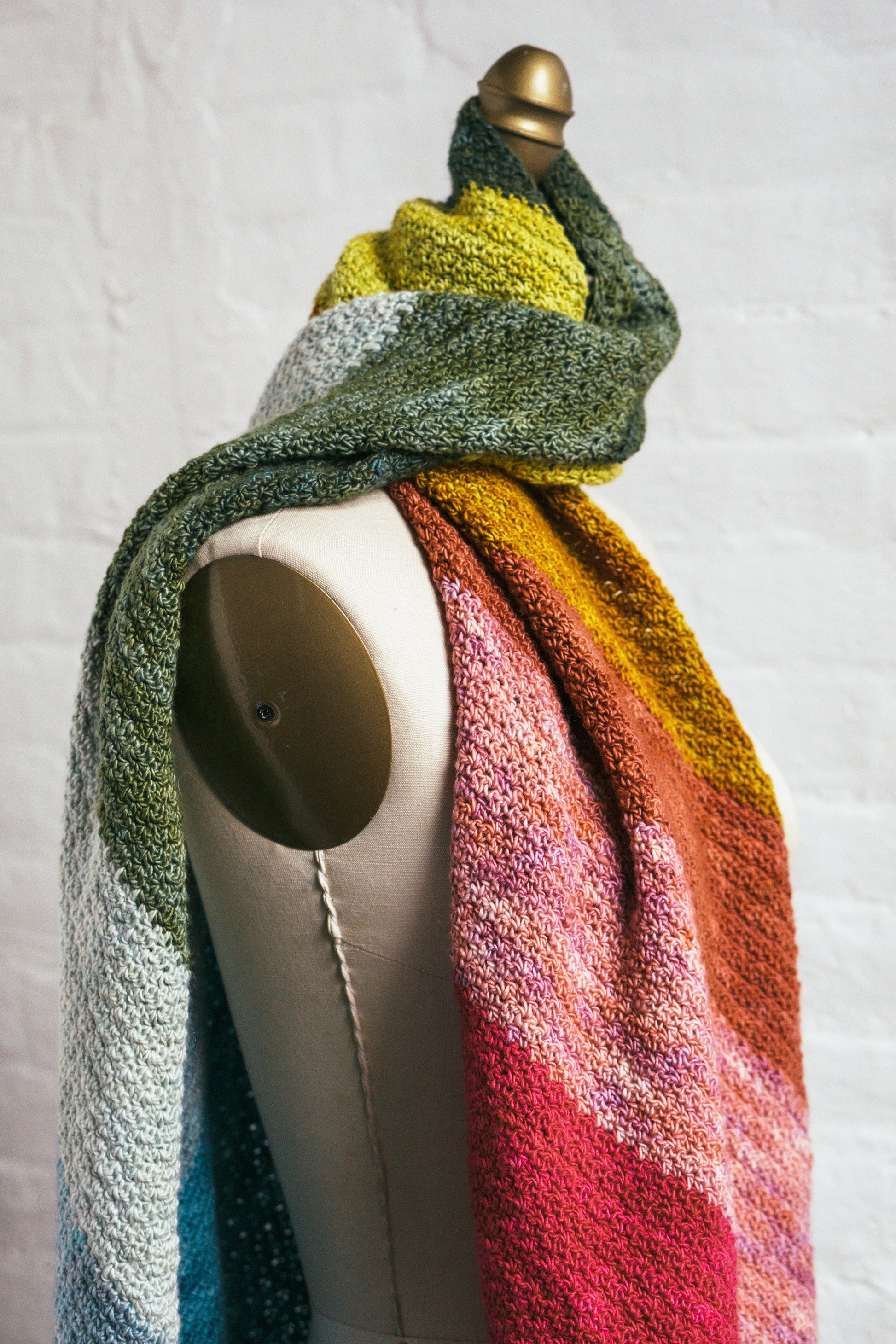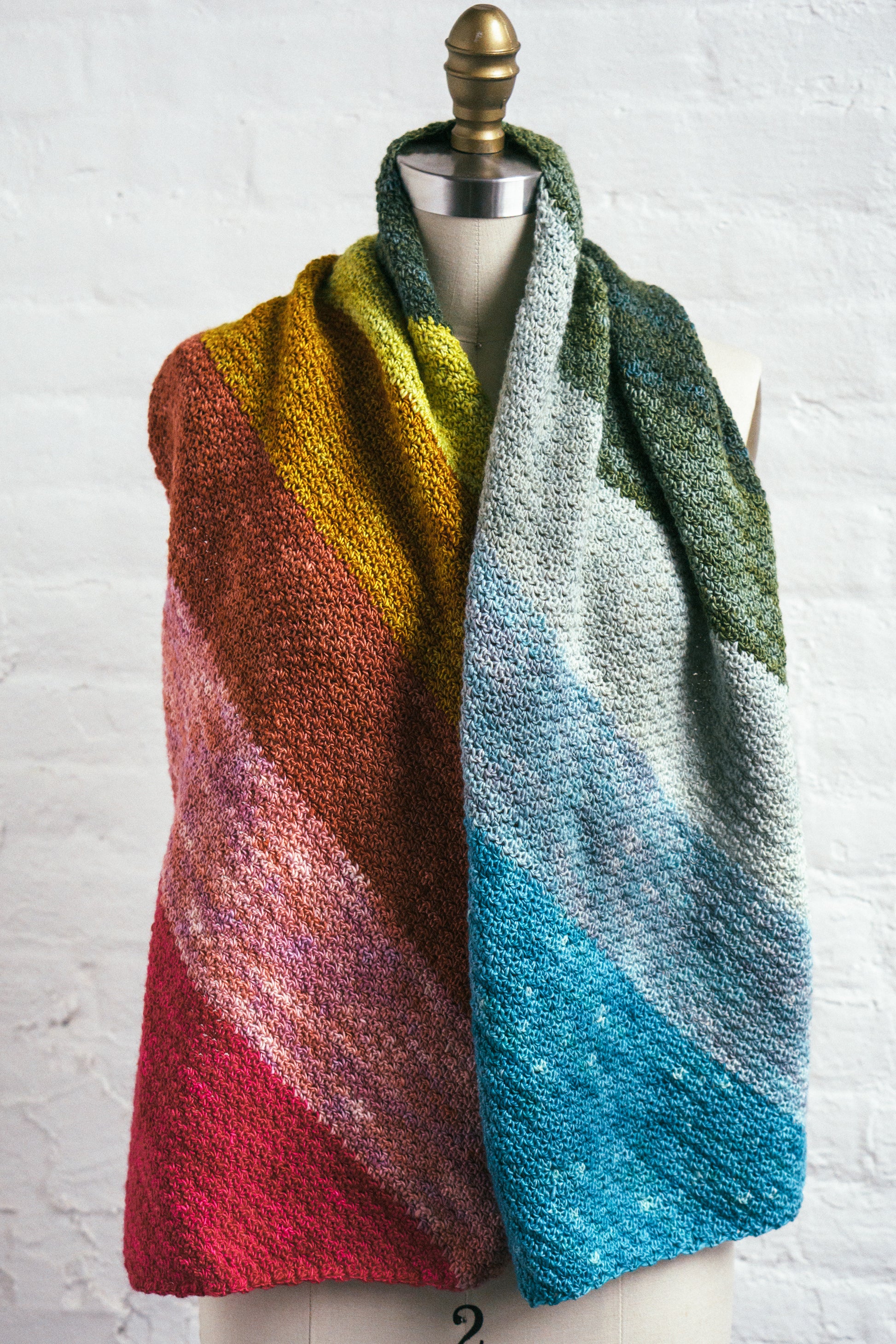 Fun crocheted colorplay in 2 Fino Mini-Skein Kits, shown here in #16 Sybil + #6 Flora.