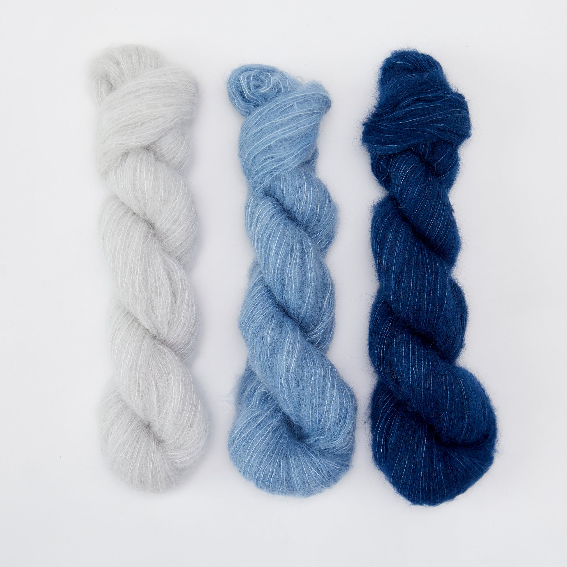 54% Baby Alpaca, 22% Super Kid Mohair, and 24% Mulberry Silk, Naturally Dyed