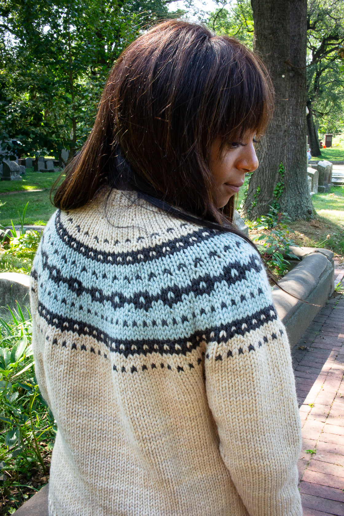 The Tinamou pullover takes advantage of Cardo's crisp stitch definition for a yoke composed of easy patterns that yield graphic impact. Worked from the top down, both body and sleeve length are easily customizable to make this your favorite walk-in-the-woods sweater.